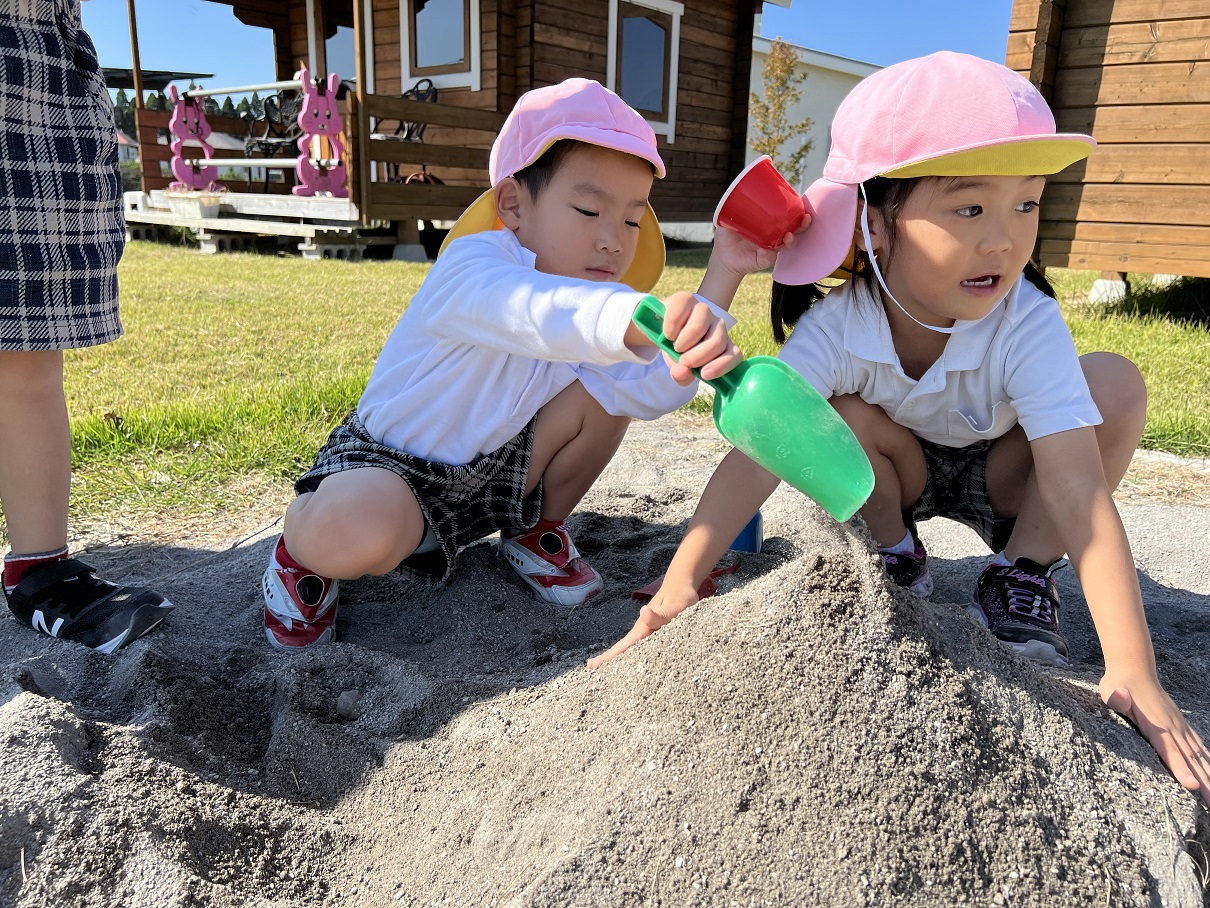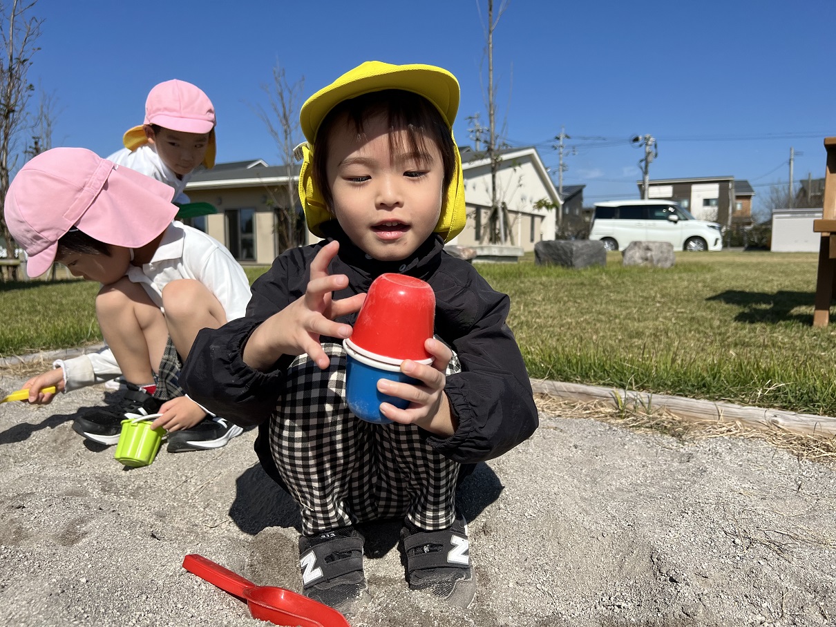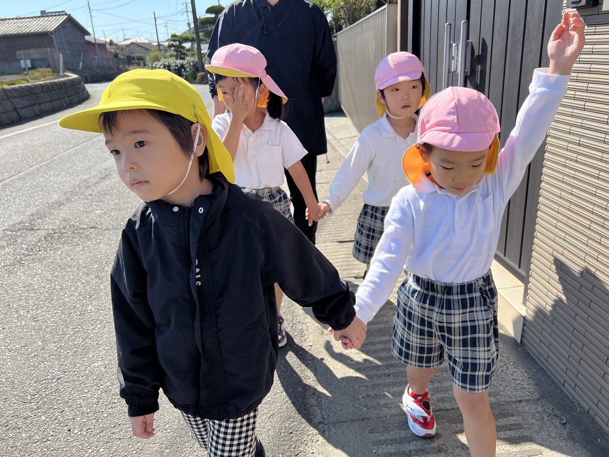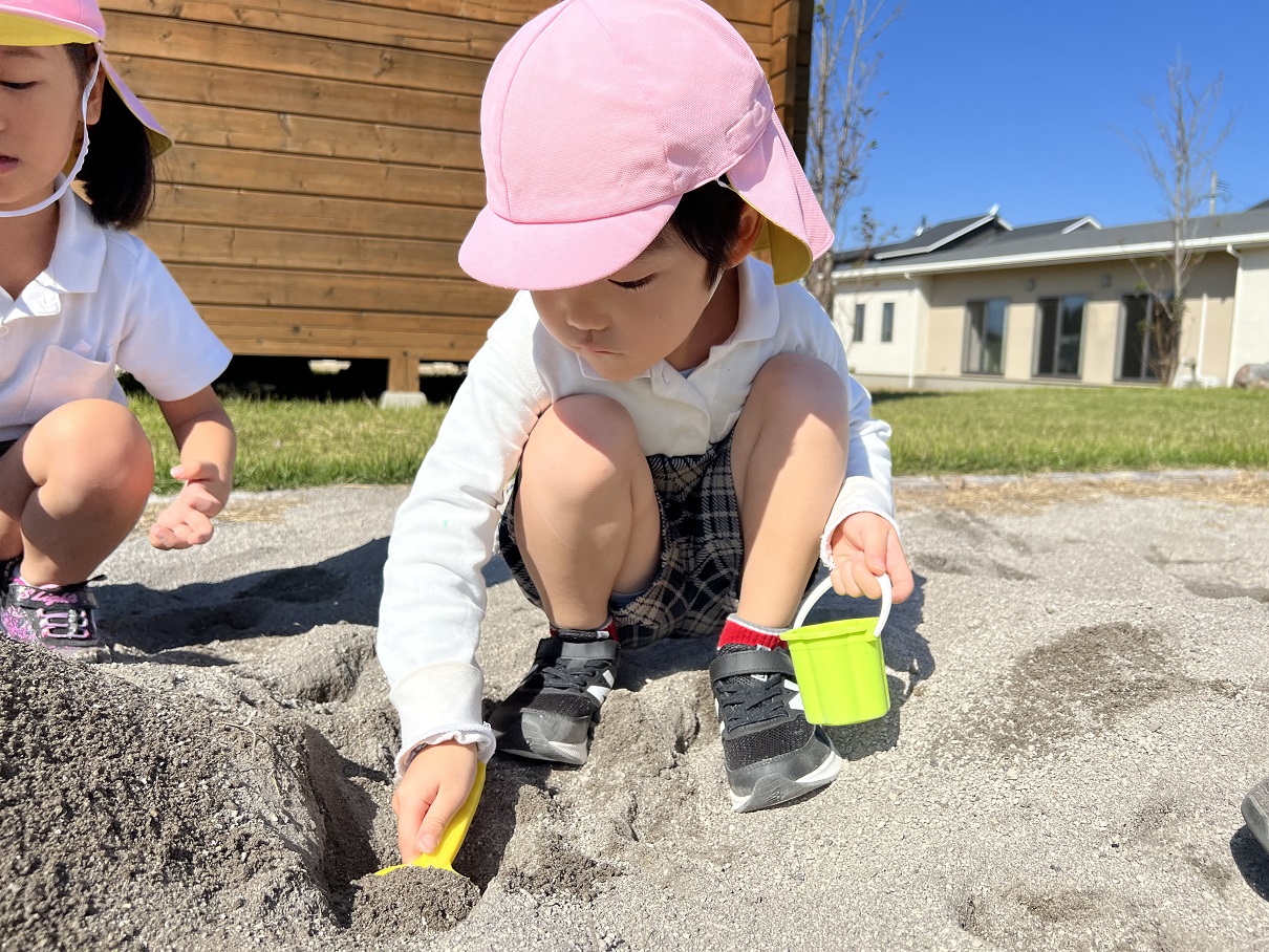 戸外活動を行いました。 お友だちと手を繋いで歩くことと体力向上を目的としてウェルガーデンに出発です。 以前より、体力が付いてきている子どもたち! ウェルガーデンに到着すると、先日活動で行ったはないちもんめを行ったり、砂場で作りたい物をイメージしながら作ったりして遊んでいましたよ♪ いっぱい身体を動かして遊び、「今日のご飯はなに~?」と給食を楽しみにしている声も聞かれましたよ☆
