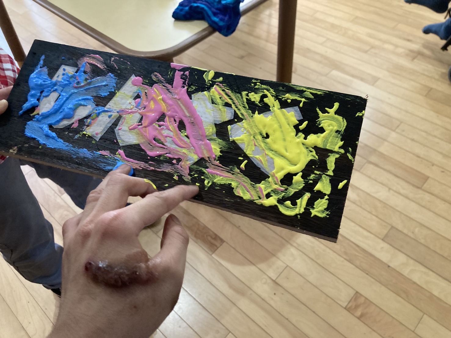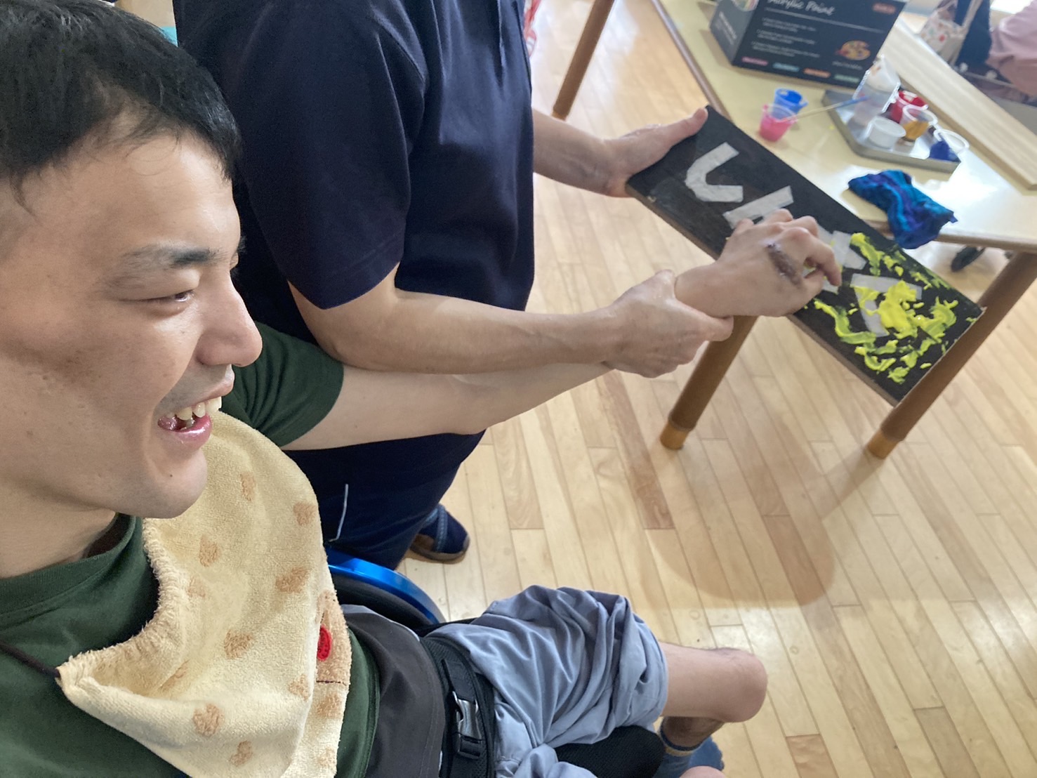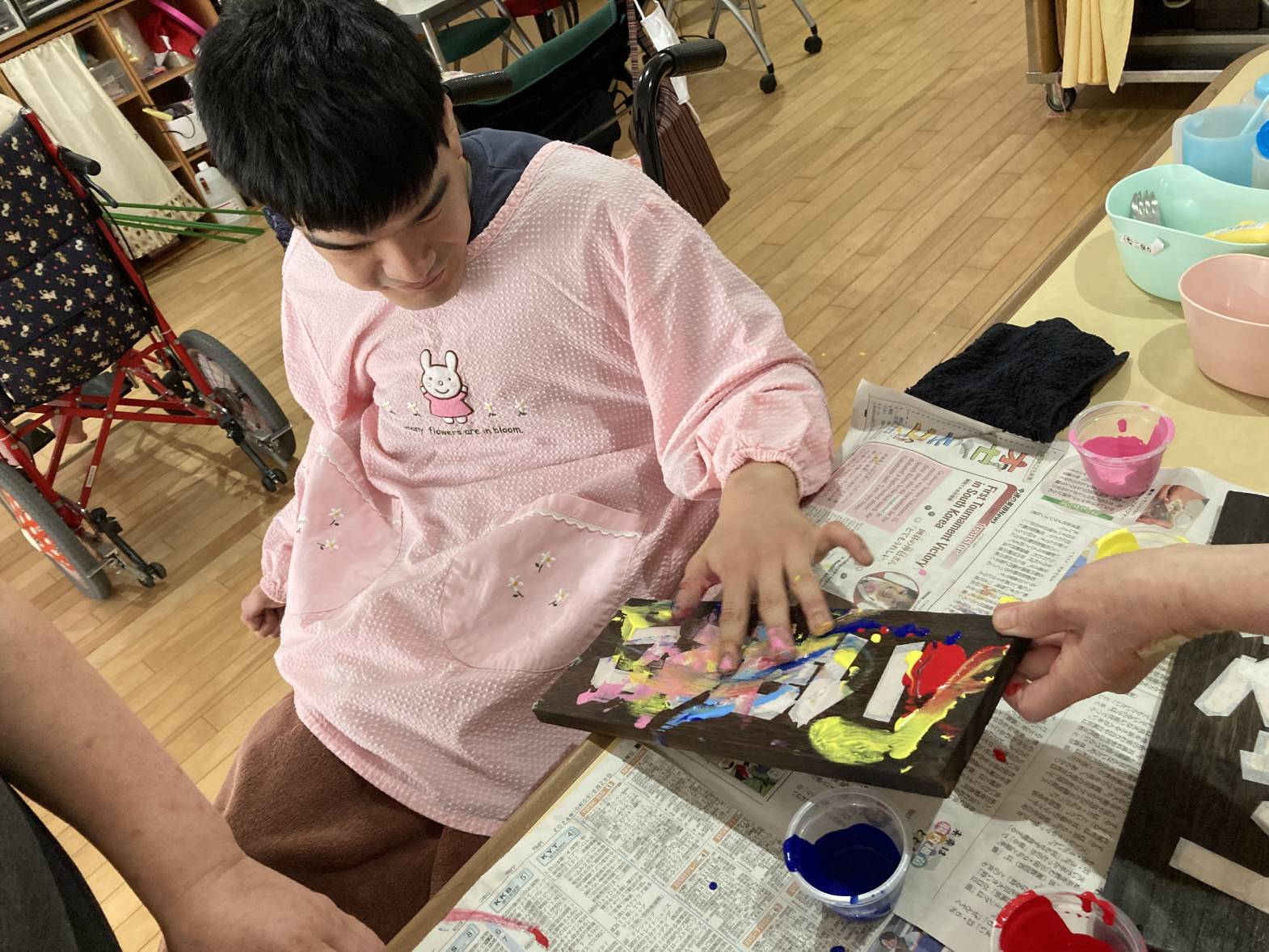 7月から8月にかけて、ひなたの利用者の皆さんと一緒に焼き板体験を行いました。 板に名前をのりで書き、板を焼いた後に好きな絵で模様を描きます。 上手に焼けたかな? 板が焼けたら、たわしでゴシゴシ! どんな焼き上がりなっているのか、楽しみですね! 焼きあがった後に、仕上げのペイントを行いました。 一人ひとり、個性が出ておりとってもいいですね! とっても素敵な焼き板が完成しました! 次回の活動も楽しみにしておいてくださいね!