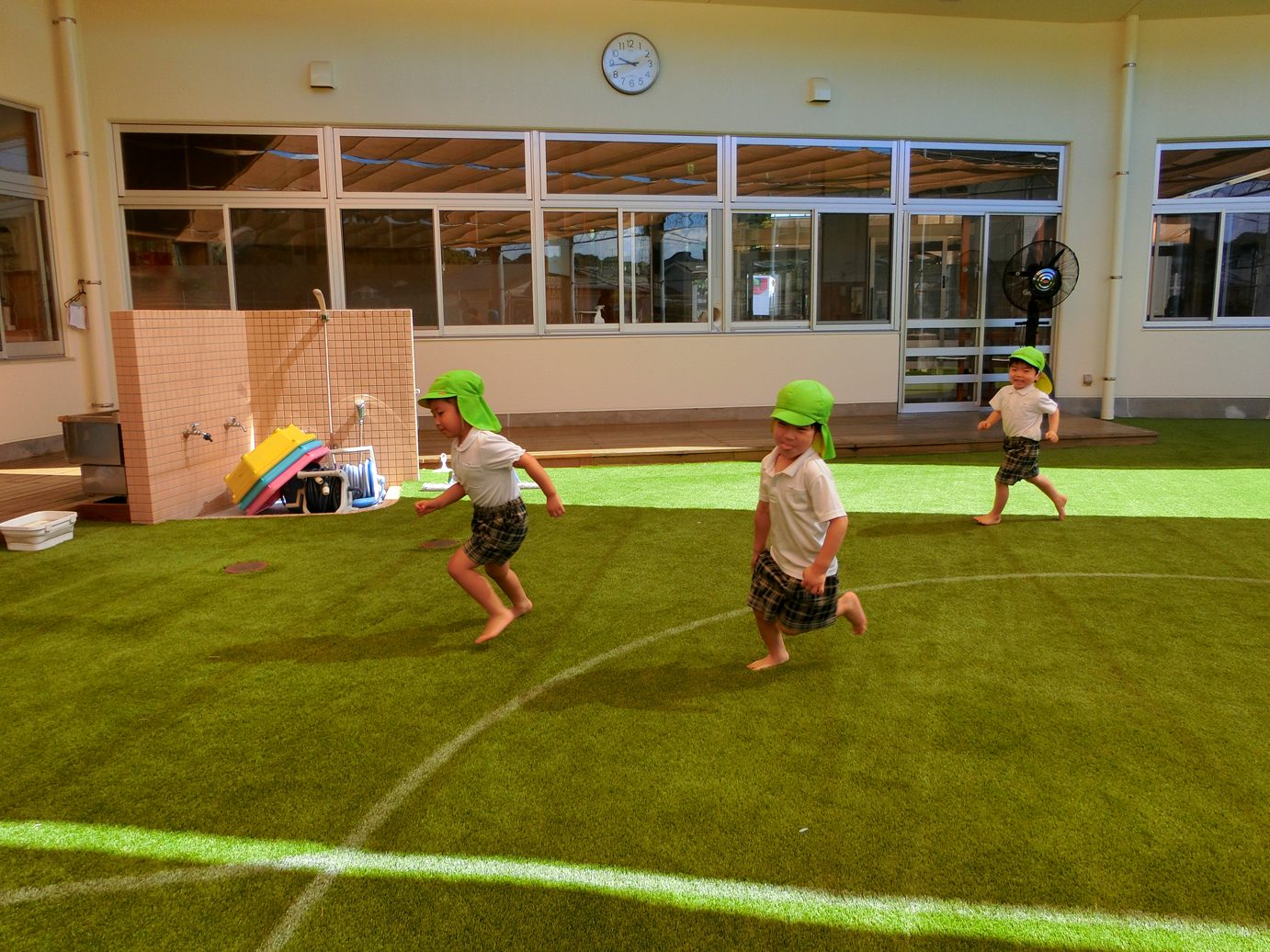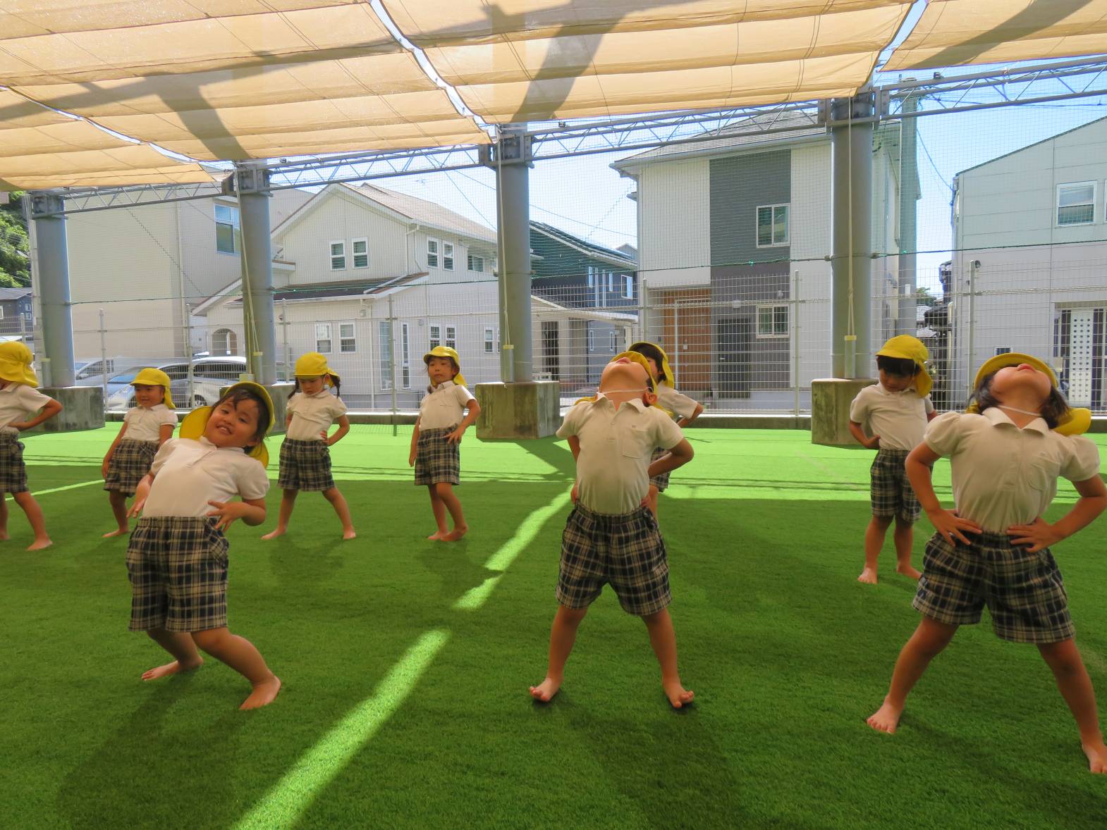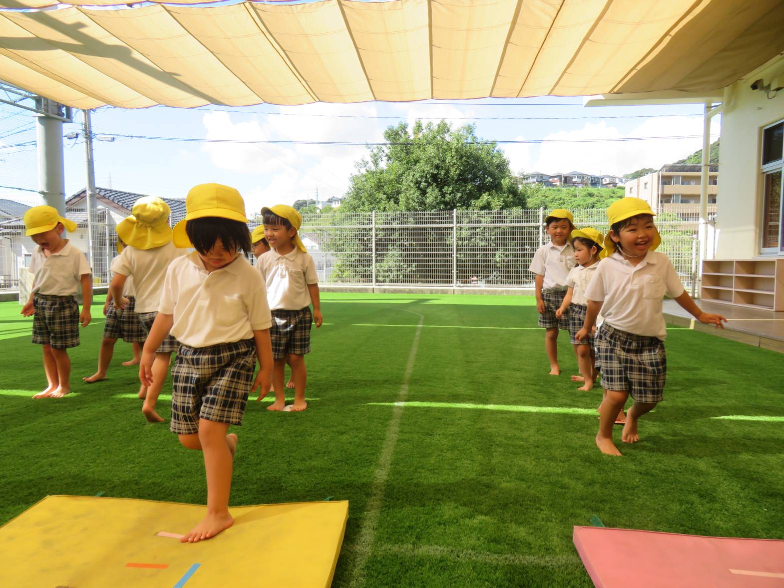 汗をいっぱいかき、運動遊びを楽しんだりす組さん。