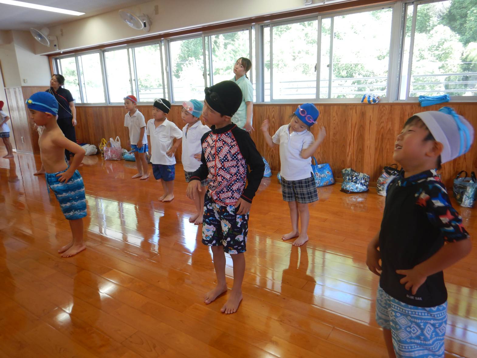 「早くプール行きたいね!」とウキウキな子どもたち。