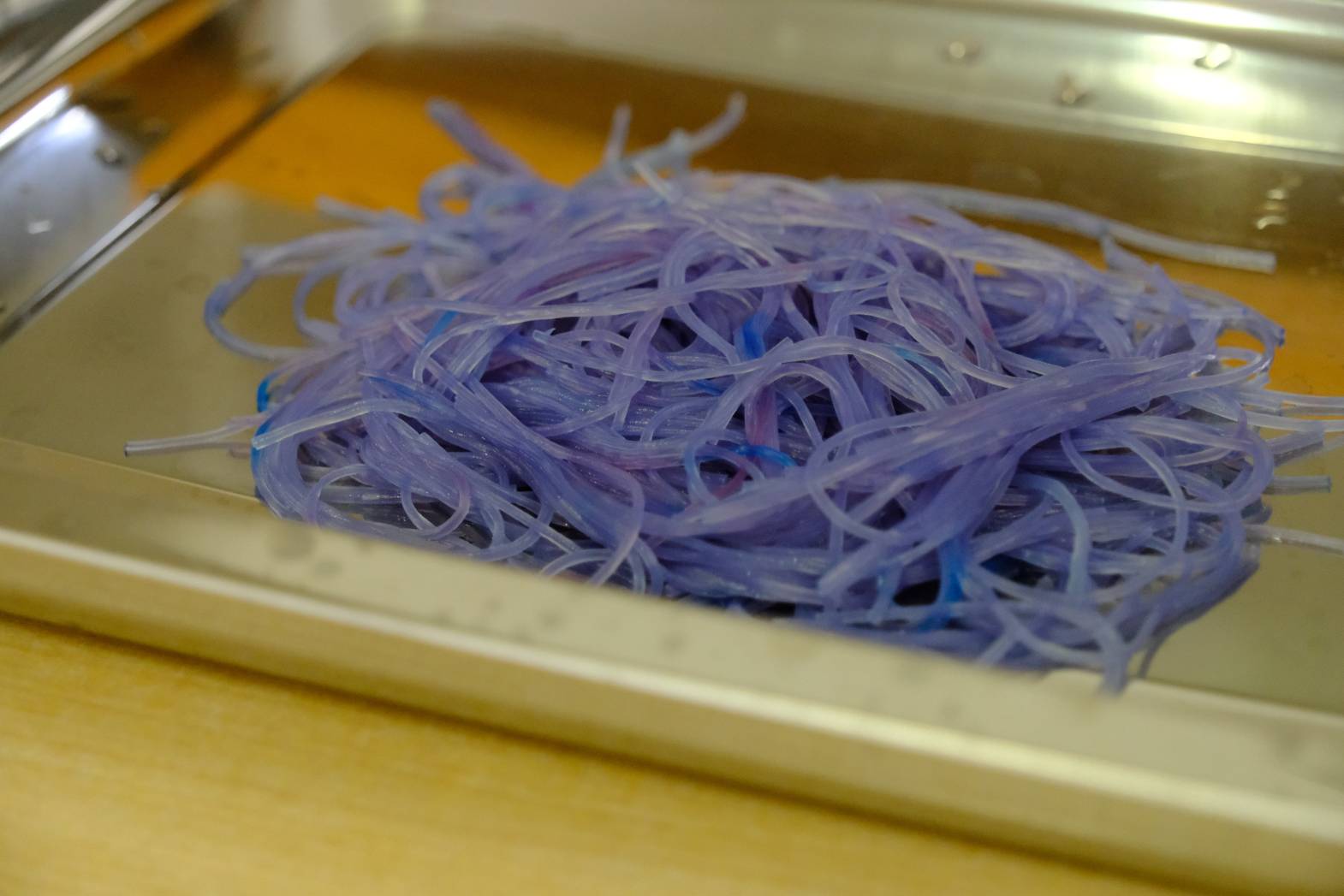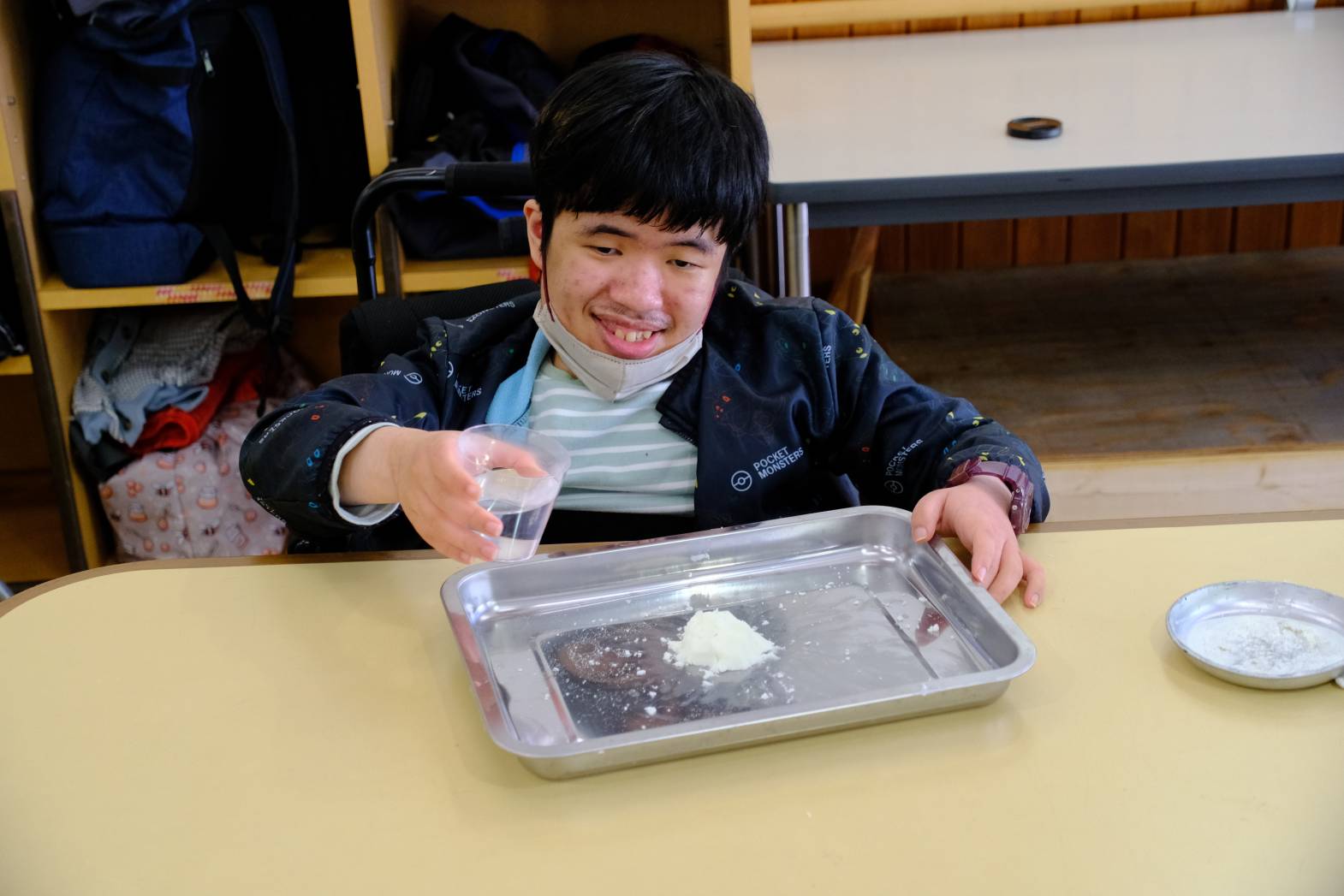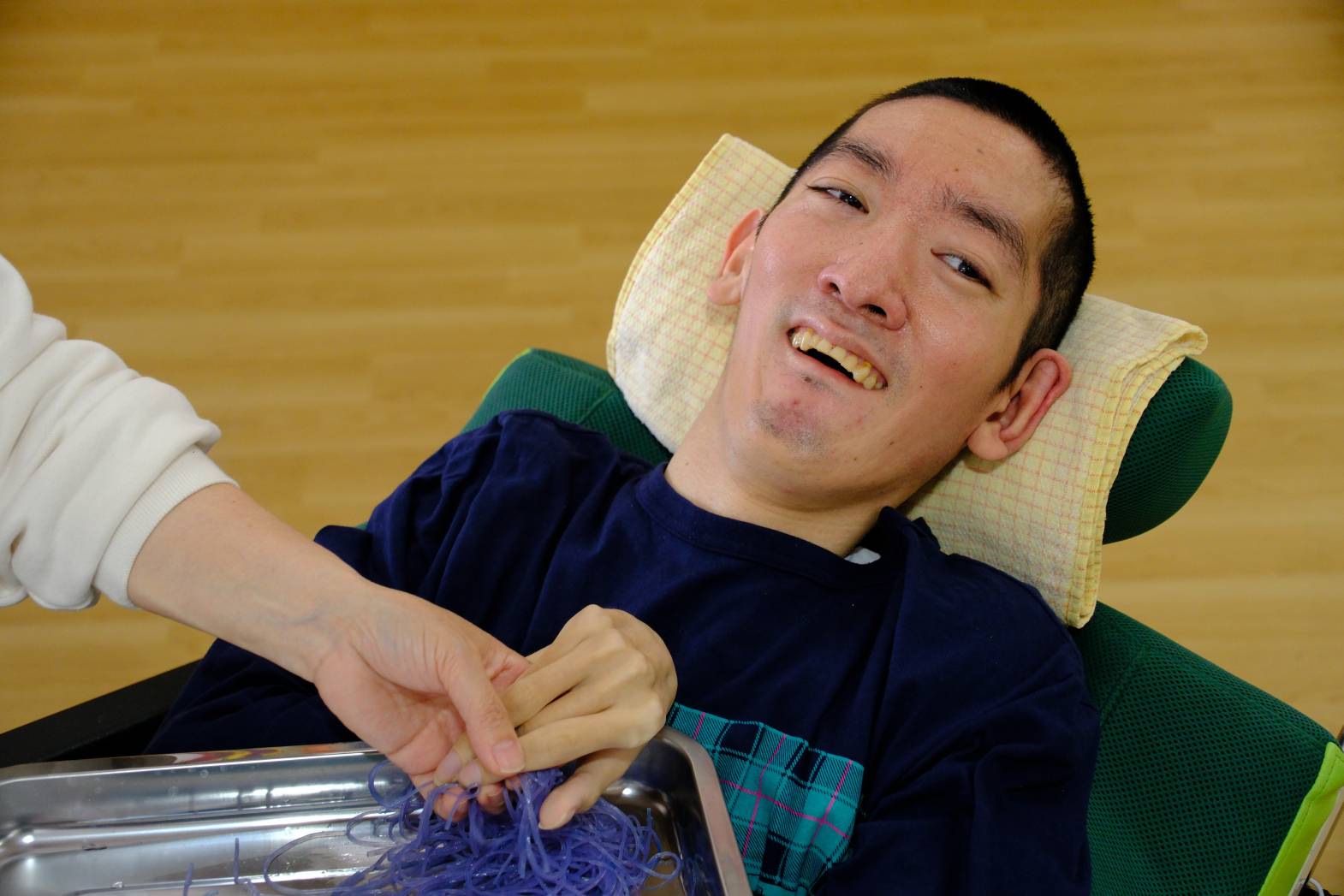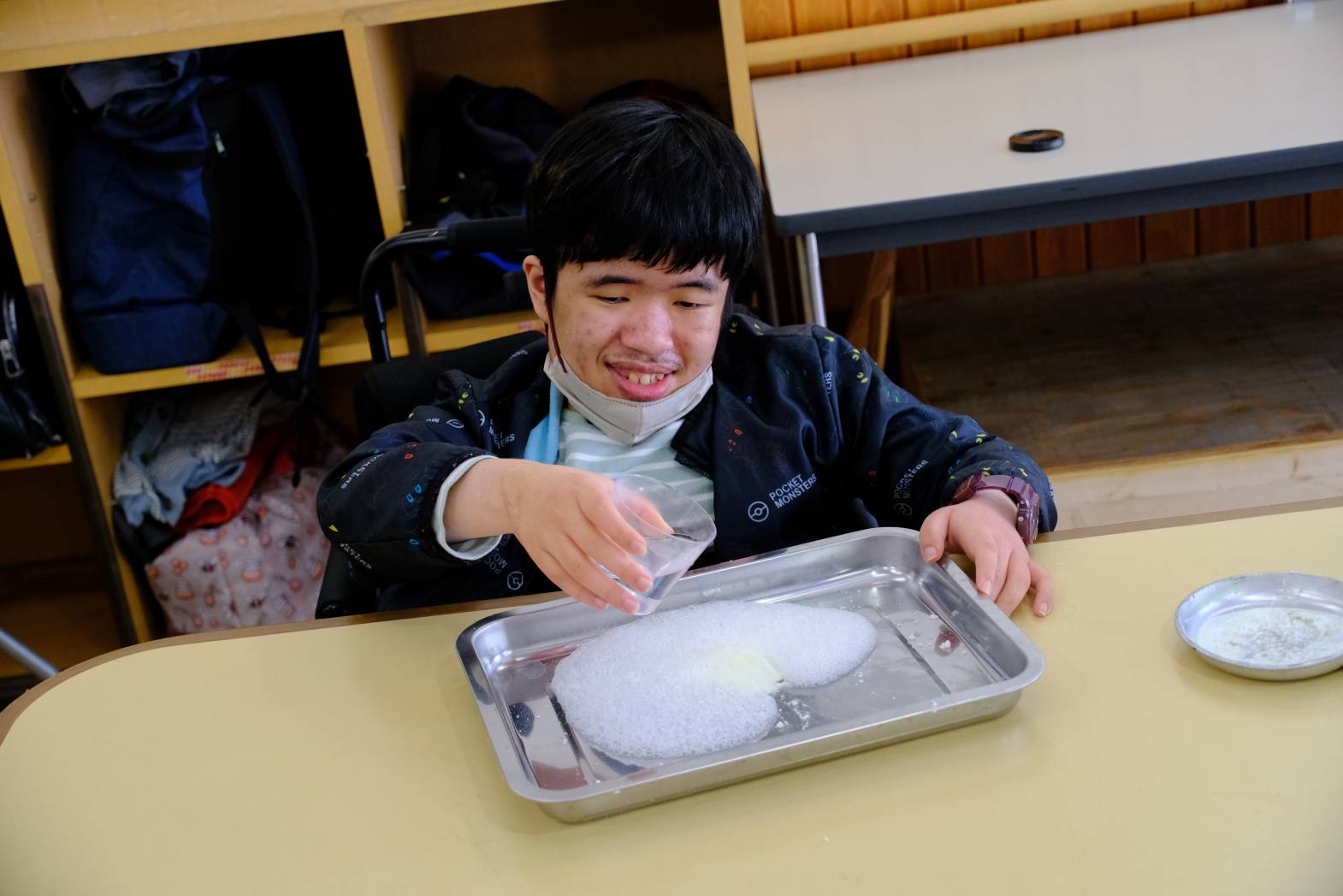 本日は、春雨や重曹を使った感触活動をしました。 春雨は食紅で色をつけた水で戻し、プルプルとした感触や色を楽しみました☺ 重曹はリンスを混ぜることで、雪のようなシャリシャリした感触になります! 固めて形を作ったり、それを崩したり・・・ 最後は重曹にクエン酸水をかけるとモコモコと泡立ち、化学反応も体験することができました☆