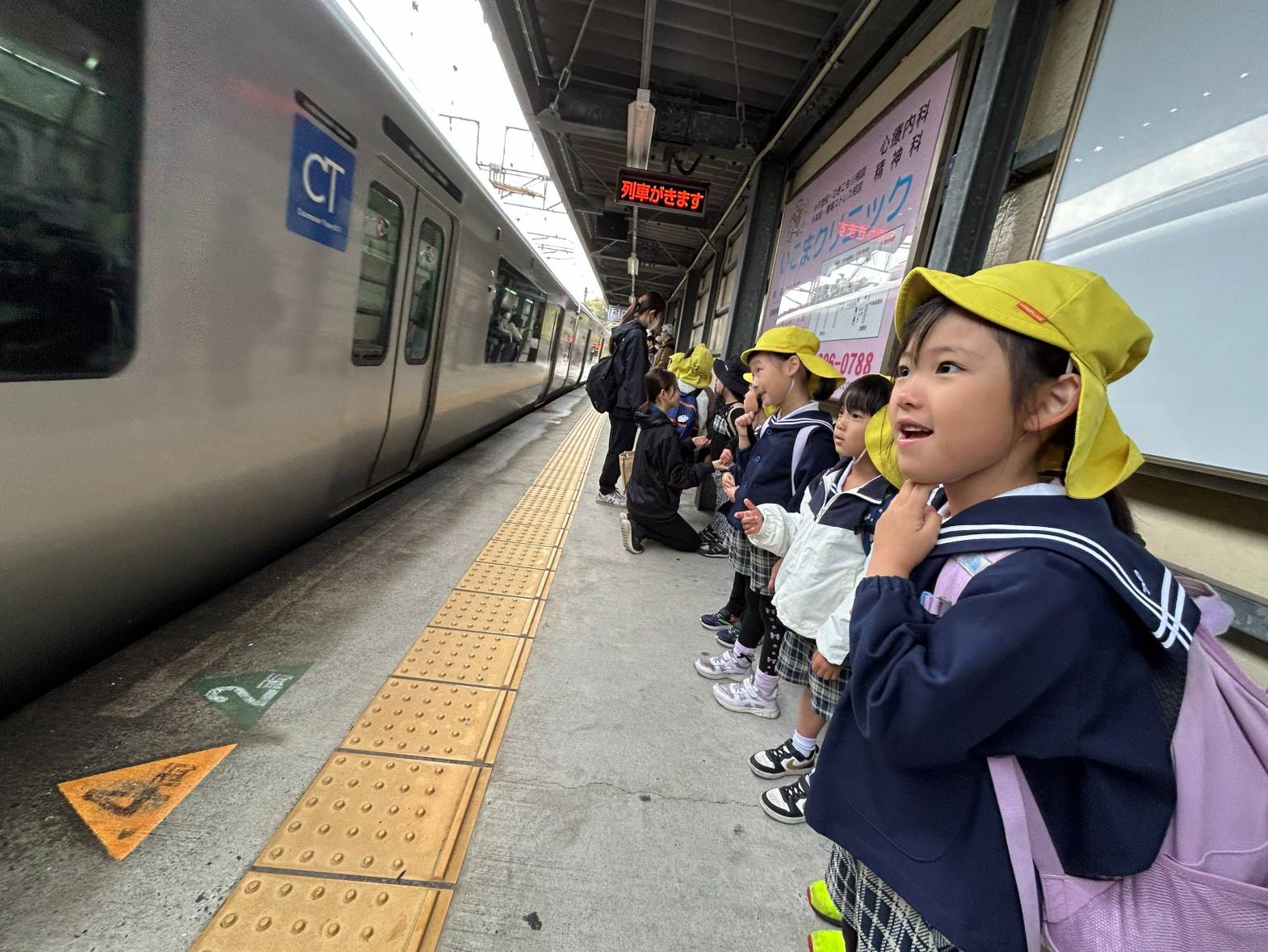電車が来ると、「電車来たよ!」とワクワクした表情を浮かべる子どもたち♪