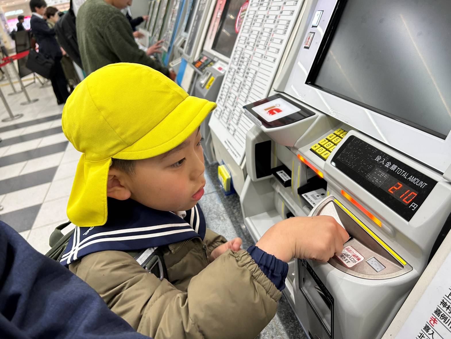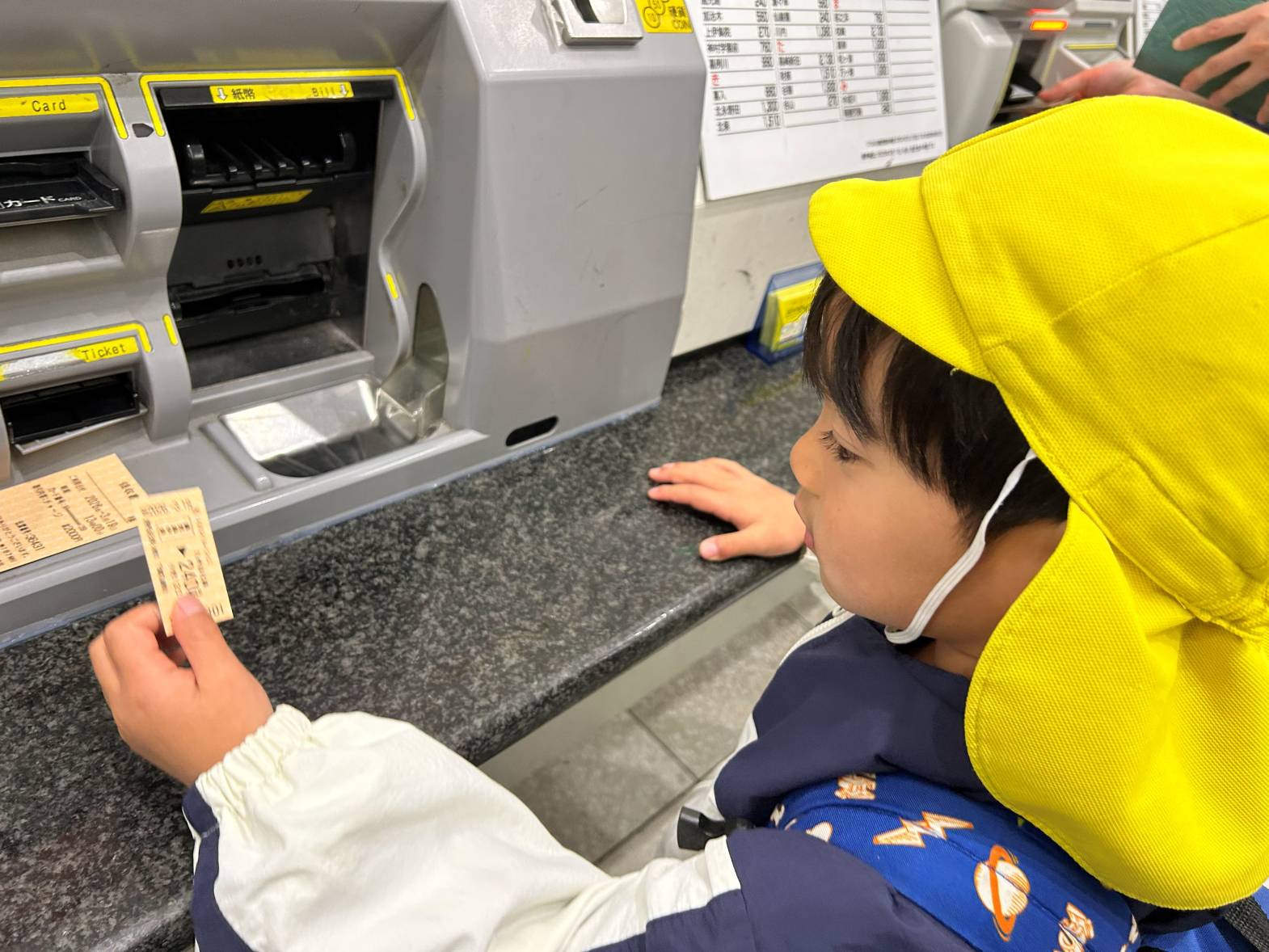 自分でお金を入れて切符を買います。
