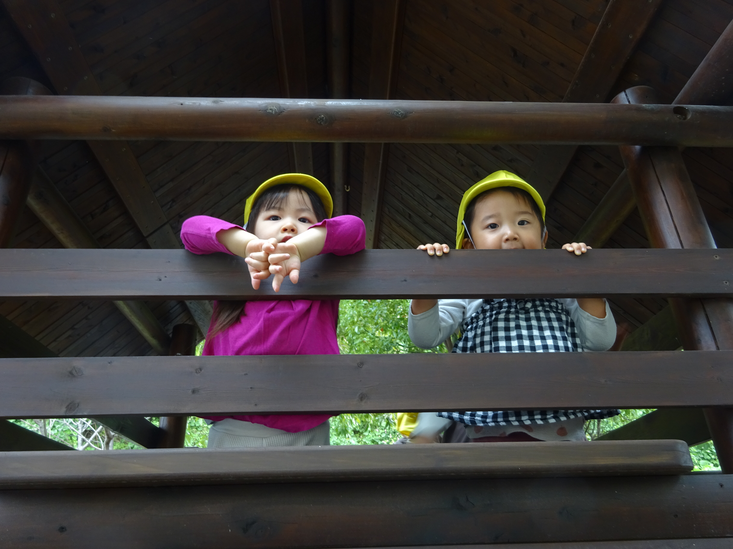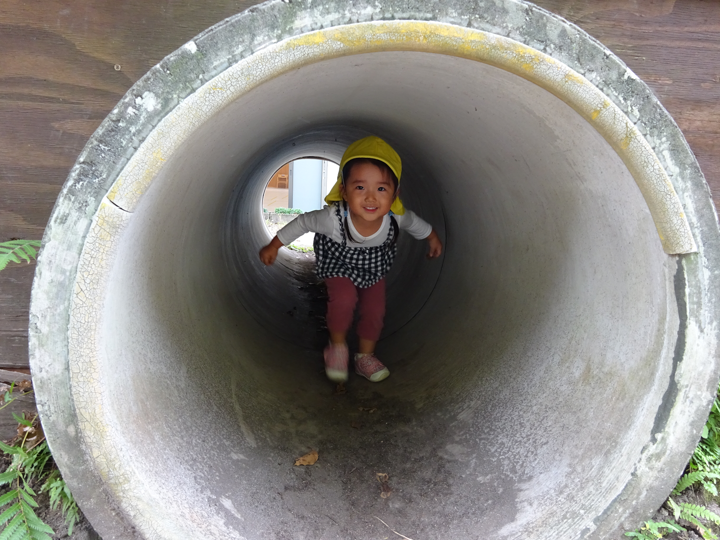 「どうやってするの?」と保育者に尋ねながら、ロッククライミングに挑戦したり、「おいでー。」と友だちを誘いトンネルをくぐったりなど、初めての遊具に大興奮なぱんだ組さんです。