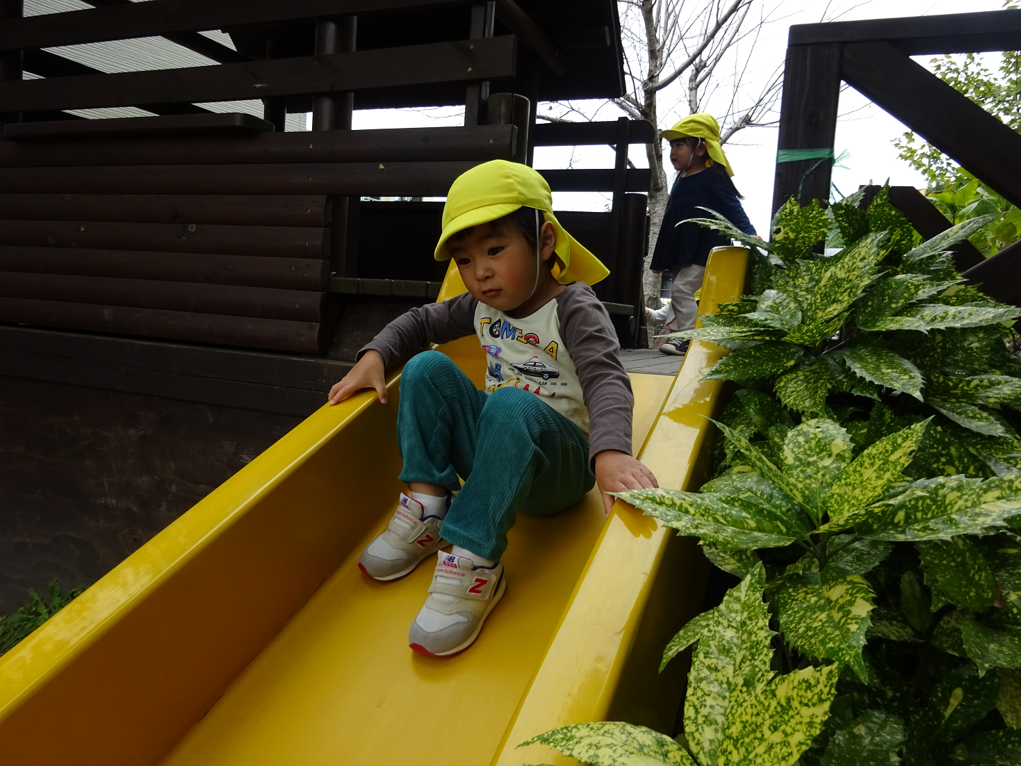 遊具に上ると、「ヤッホー!」と友だちに声を掛けたり、滑り台を楽しんだりなど、思い思いに遊ぶ子どもたち。