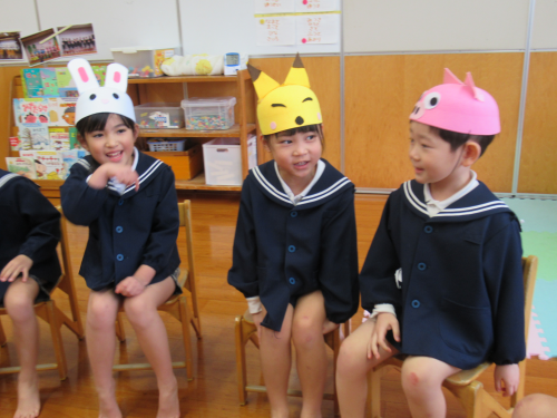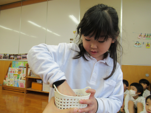 初めてのフルーツバスケットでは、クリスマス会で使用した帽子を使い取り組みました。