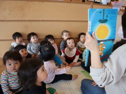 今週も元気いっぱいのこあら組さん。 毎日、1日の最後にはみんなで指遊びや絵本の読み聞かせ、1日の振り返りをする、”お集まり”を行っています。 今日はアンパンマンの指遊びをしたり、野菜が出てくる絵本を見たりしました。 指遊びでは、保育者に合わせて声出したり、体を動かしたりする子どもたち。 絵本の読み聞かせでは、興味津々で絵本にくぎ付けのこあら組さんです。 最後に今日の活動を振り返り、元気よく「さようなら!」と挨拶をします。 ご家庭でも今日のあったことを一緒にお話ししてみてください♪