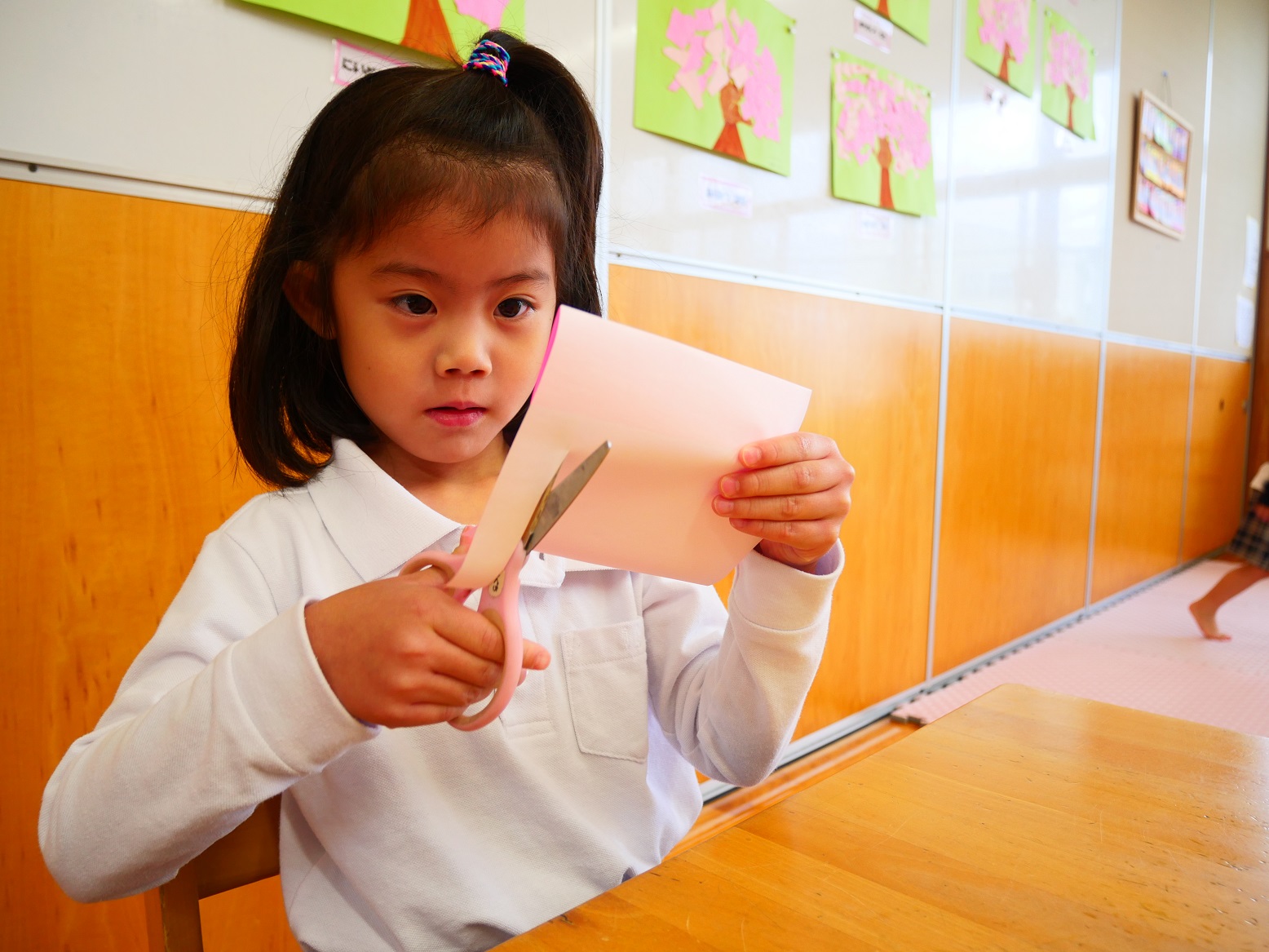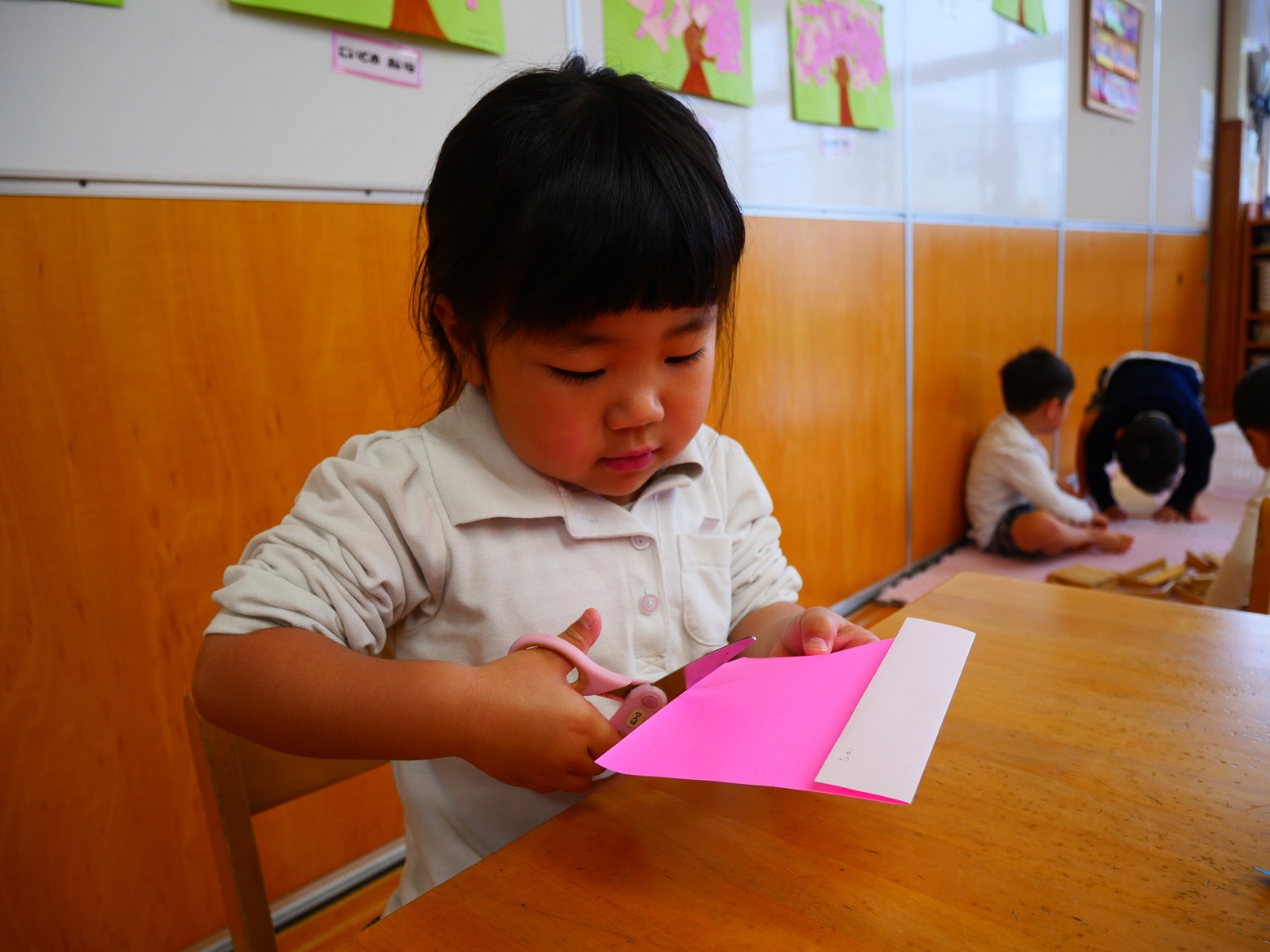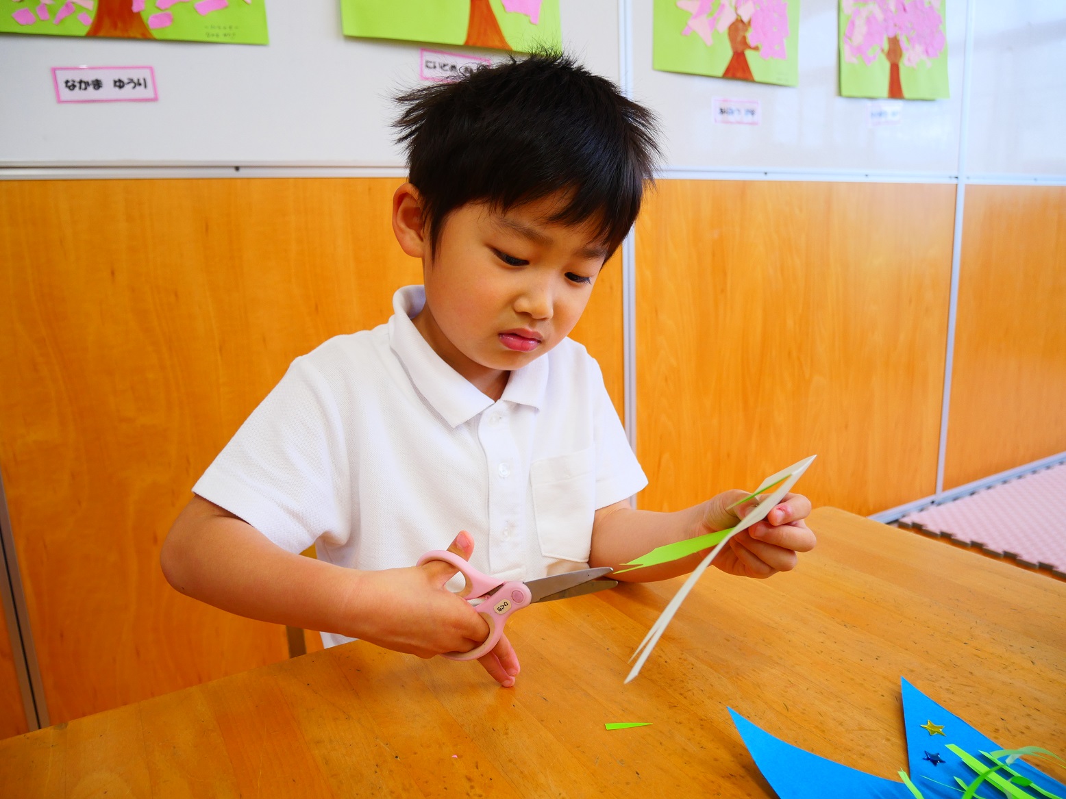 それでもやっぱりハサミを使うことは難しく、「先生できないよ~」「ちょっと怖いかも」という声もいくつか聞こえてきました。