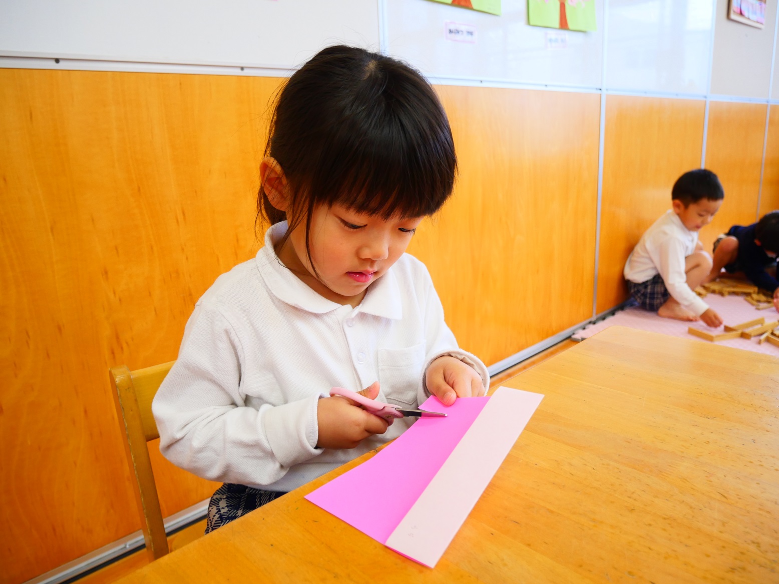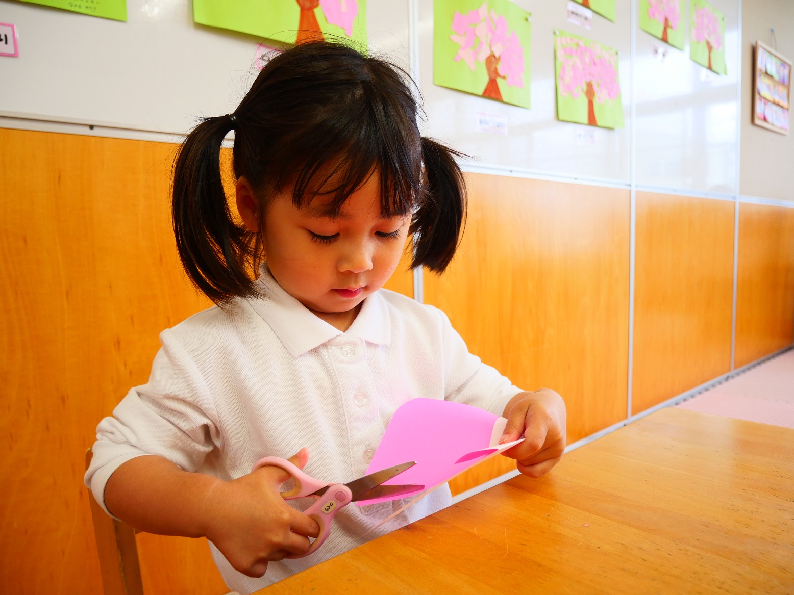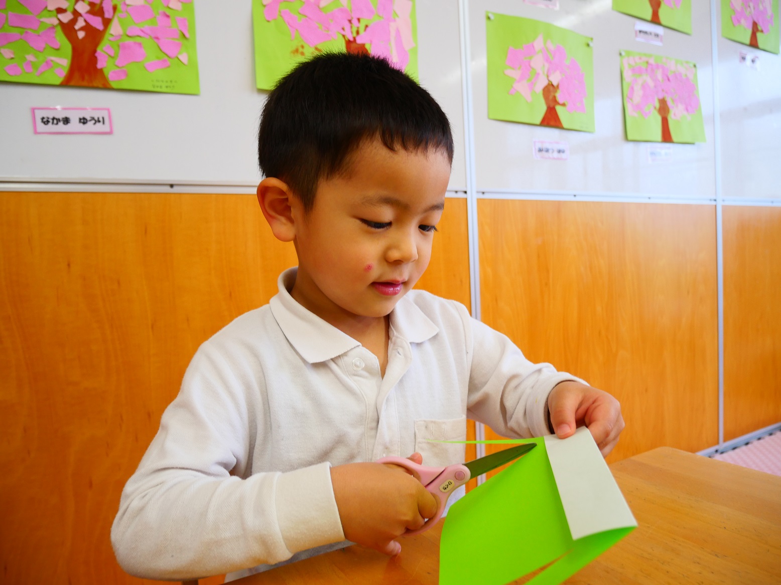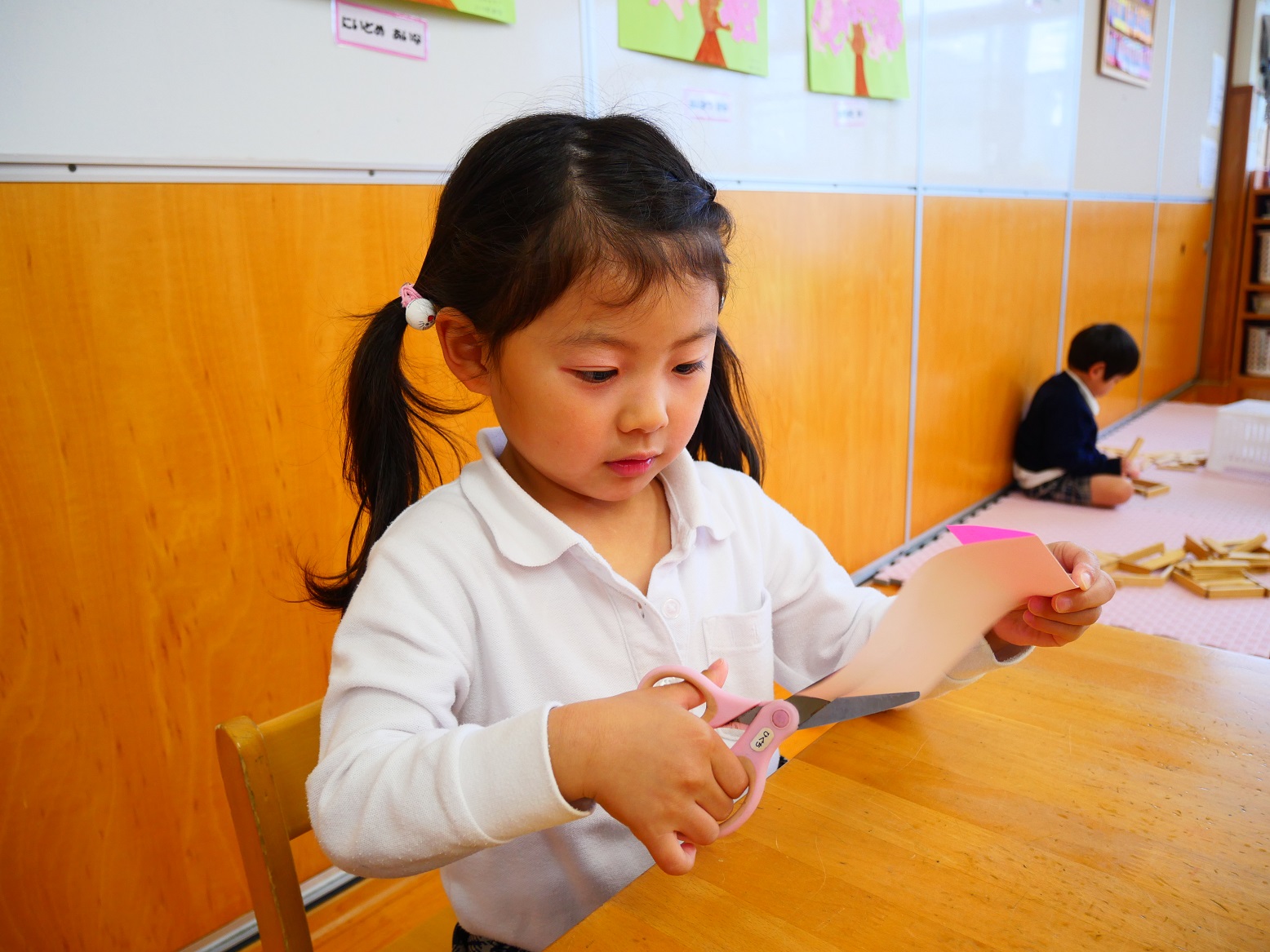 それでもやっぱりハサミを使うことは難しく、「先生できないよ~」「ちょっと怖いかも」という声もいくつか聞こえてきました。