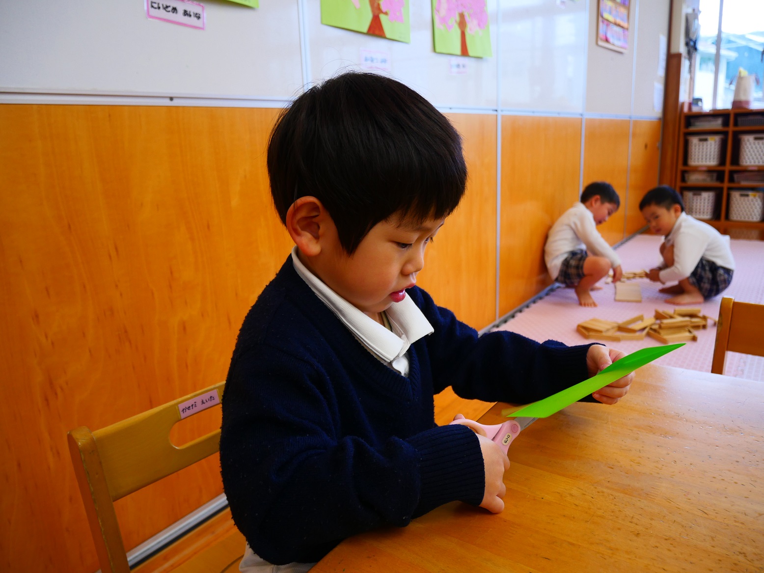 何度かくじけそうになりながらも、一生懸命ハサミを使った子どもたち。どんなこいのぼりになるのか楽しみです。