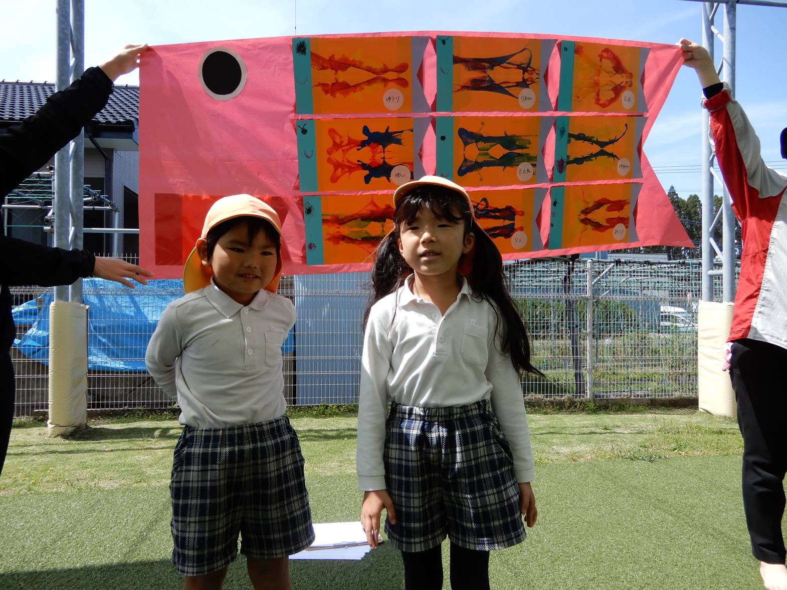各クラスの代表者2名がこいのぼり製作をする中で頑張ったことや楽しかったことなどを発表しました。