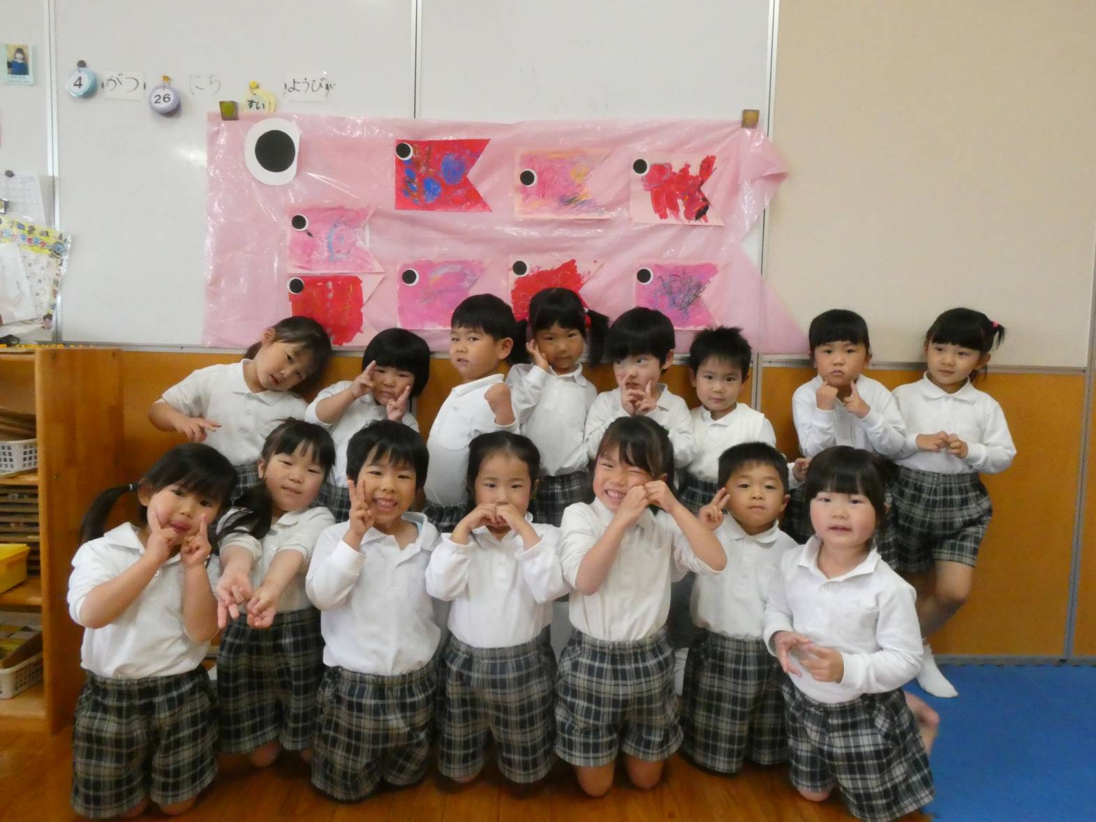 良い天気の中こいのぼり会を楽しむことができた大きい組さんでした。