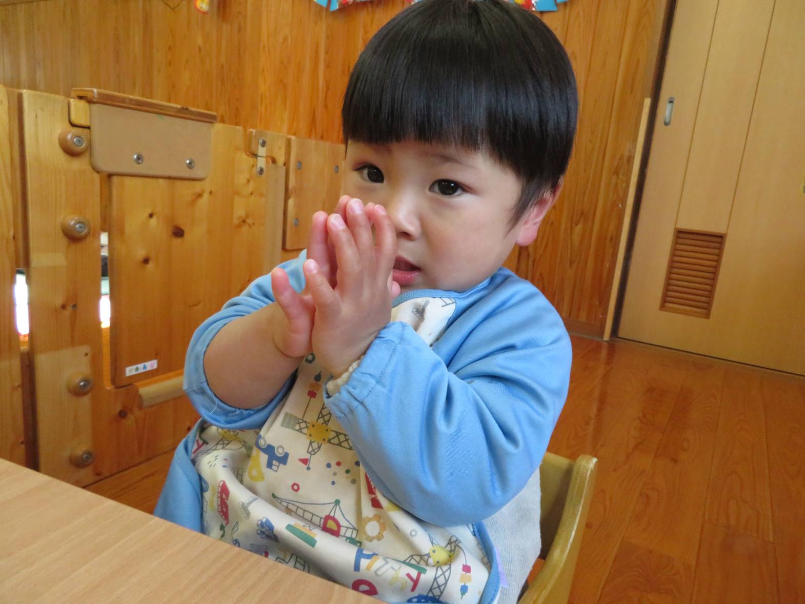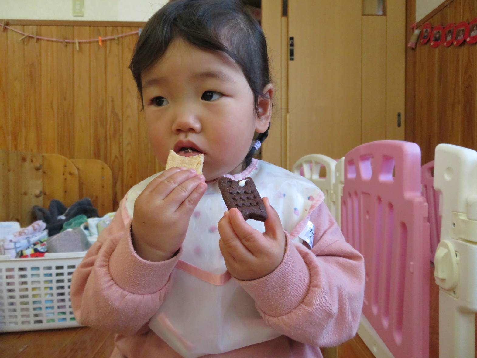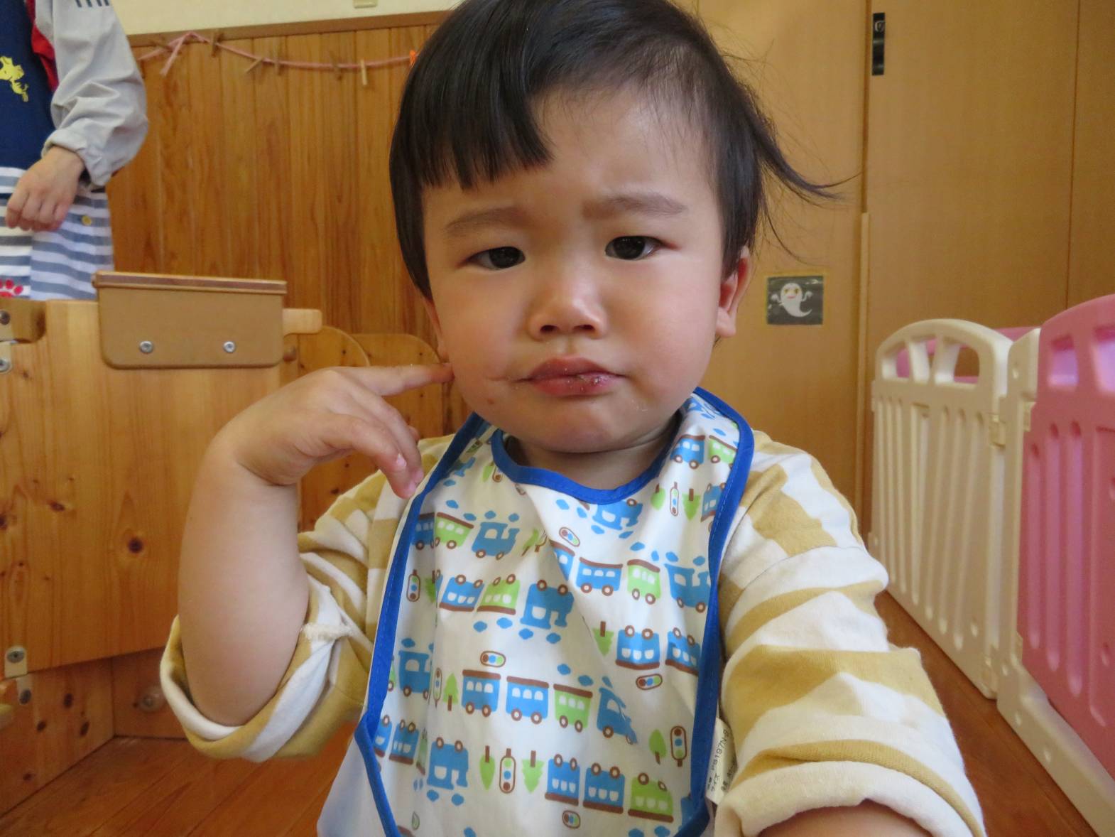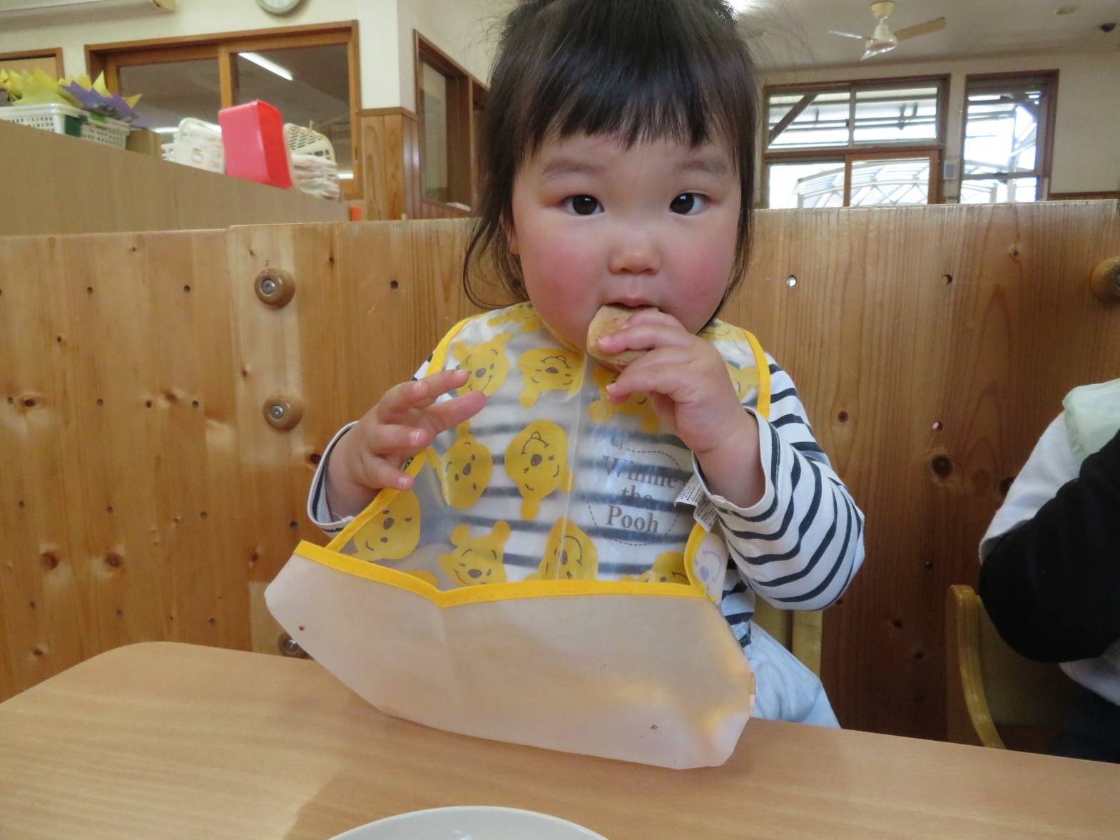 今日のおやつはこいのぼりクッキーでした! こいのぼりへの興味が高まってきている子どもたち。 「何の形かな?」と聞くと、「こいのぼり!」と答えたり、「おいしい?」と聞くと手をほっぺたに持っていき、おいしいポーズをするこあら組さん! また、外遊びでは園庭のこいのぼりを見たり、歌の時間にはこいのぼりの歌を歌ったりと、季節の行事を楽しみました♪