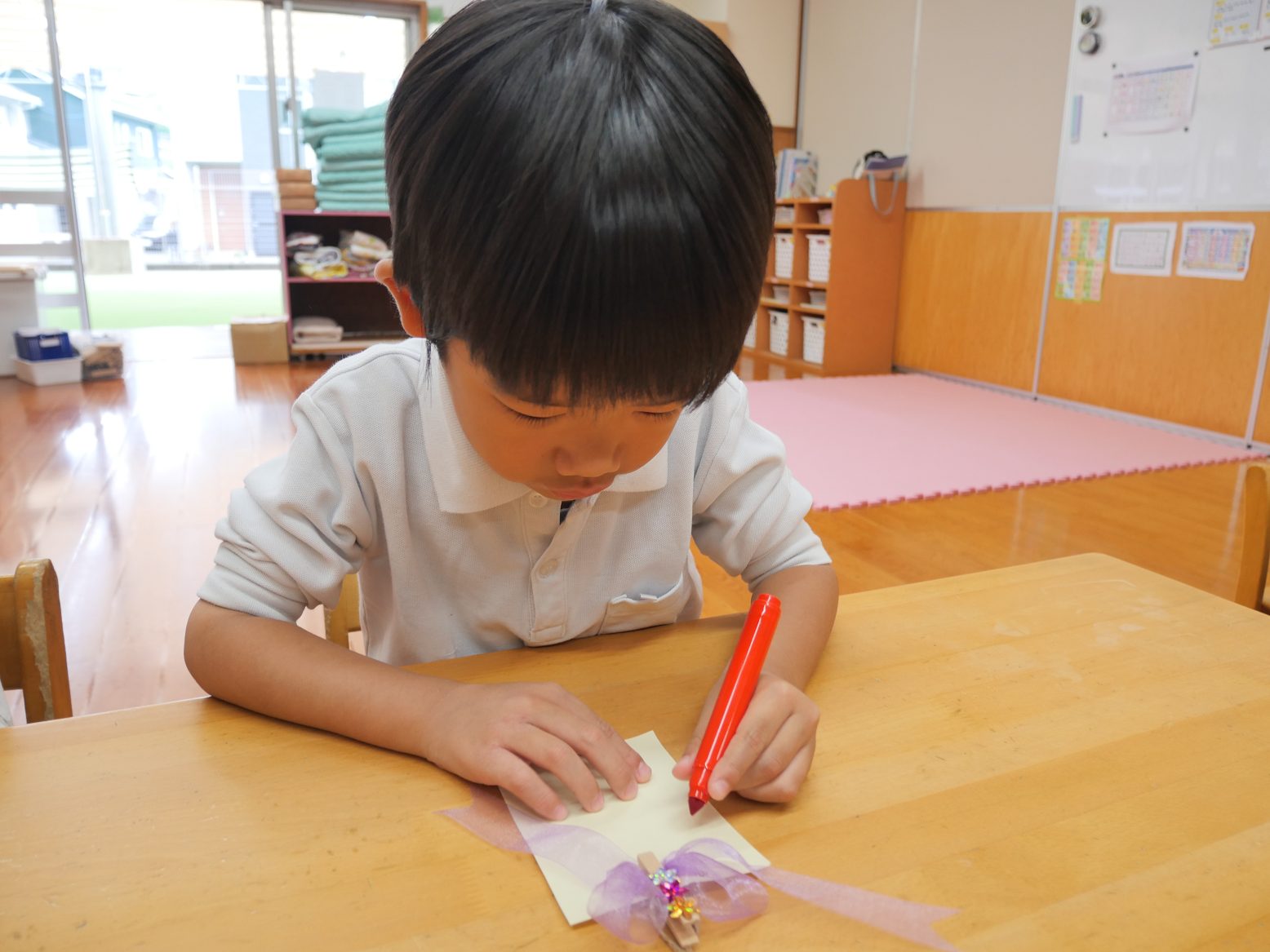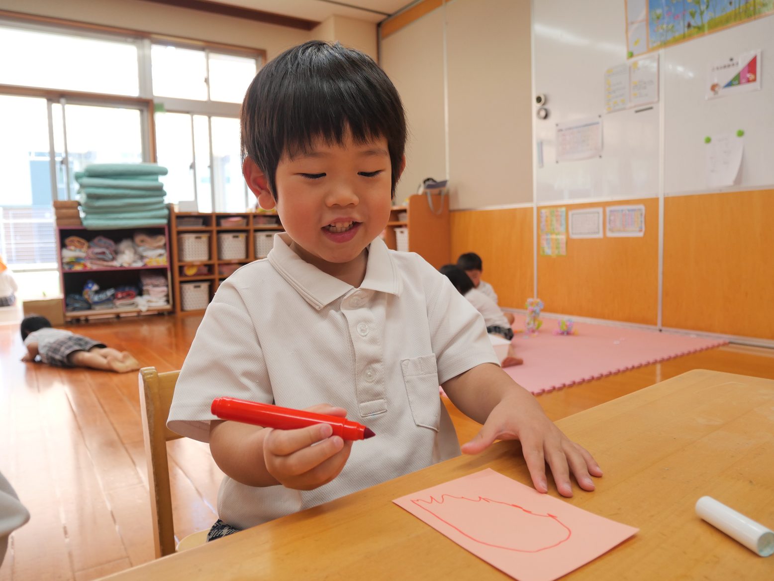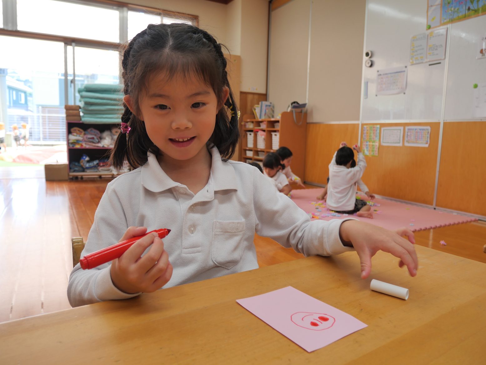 大好きなお母さんに、いつもありがとうの気持ちを込めて絵手紙を書きました。 「なにを描こうかな~」「ママを可愛く描いてあげるんだ~」と嬉しそうな子どもたち。 「裏に先生がメッセージ書くけど、なんて書きたい?」と聞くとニヤニヤ笑ったりモジモジしたりしながら小さい声で「大好きって書いて」と教えてくれた子どもたち。 子どもたちから預かった言葉を紙に書いて渡すと「早く渡したいなぁ!」ととびっきりの笑顔を見せてくれました。 子どもたちからの「いつもありがとう」が届きますように。