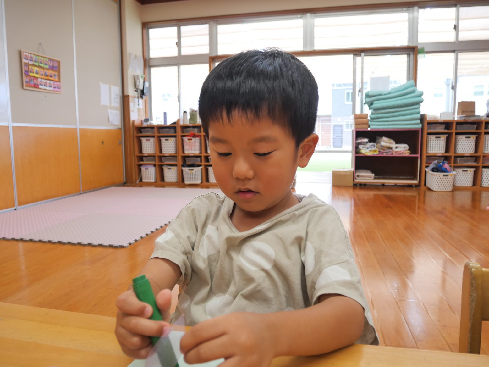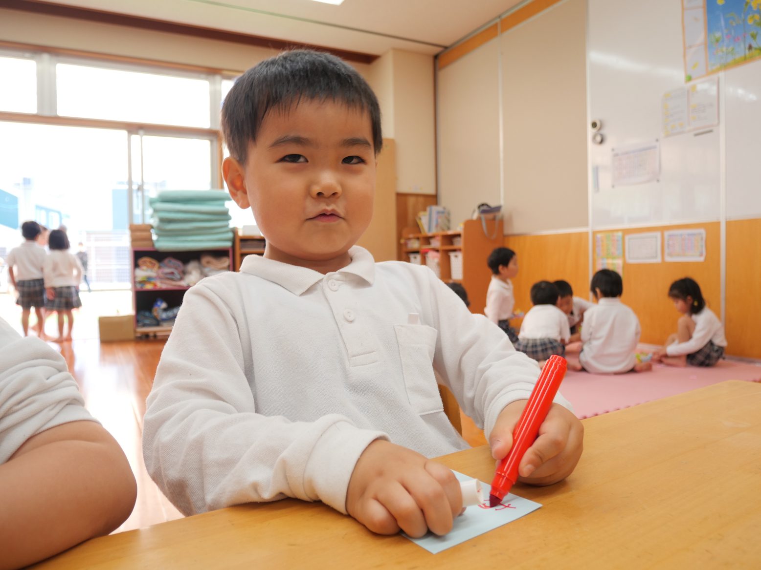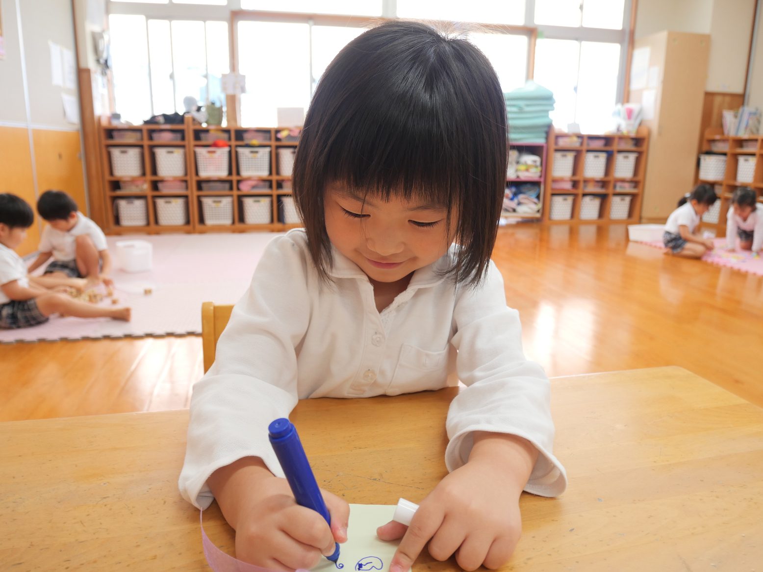 大好きなお母さんに、いつもありがとうの気持ちを込めて絵手紙を書きました。 「なにを描こうかな~」「ママを可愛く描いてあげるんだ~」と嬉しそうな子どもたち。 「裏に先生がメッセージ書くけど、なんて書きたい?」と聞くとニヤニヤ笑ったりモジモジしたりしながら小さい声で「大好きって書いて」と教えてくれた子どもたち。 子どもたちから預かった言葉を紙に書いて渡すと「早く渡したいなぁ!」ととびっきりの笑顔を見せてくれました。 子どもたちからの「いつもありがとう」が届きますように。