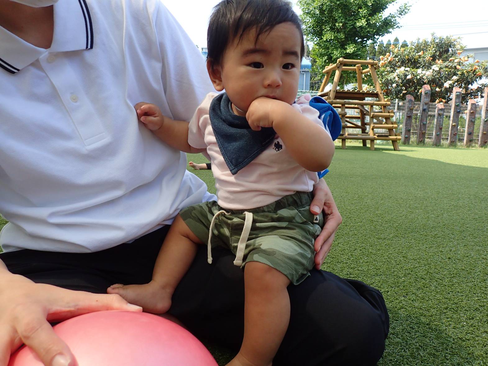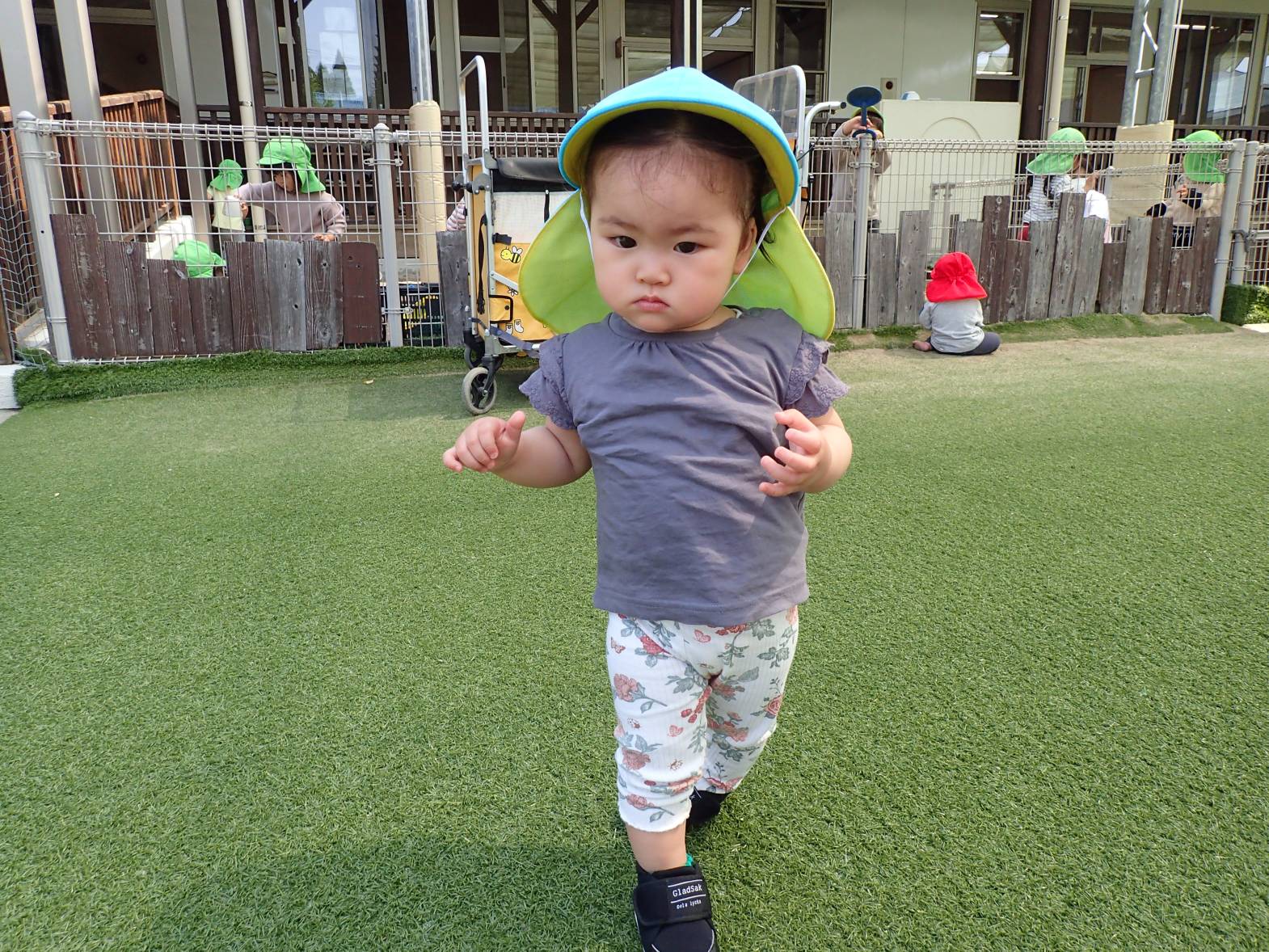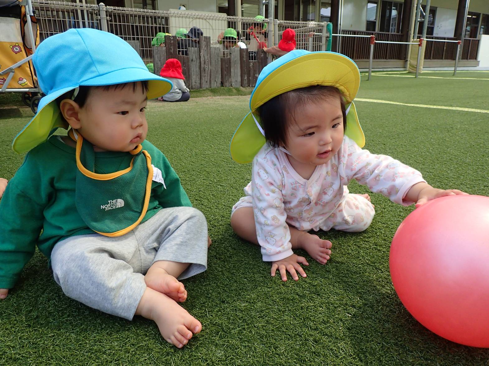 戸外へ外気浴に行きました。 少しずつ外の環境にも慣れてきて、芝生に下りると周りをキョロキョロ見渡す子どもたち。 ハイハイをしたり、手を繋いで歩いたりして探索をしました! 楽しいようで、ニコニコ笑顔が見られます。 気持ちのいい風を浴びながら過ごしたひよこ組さんでした!