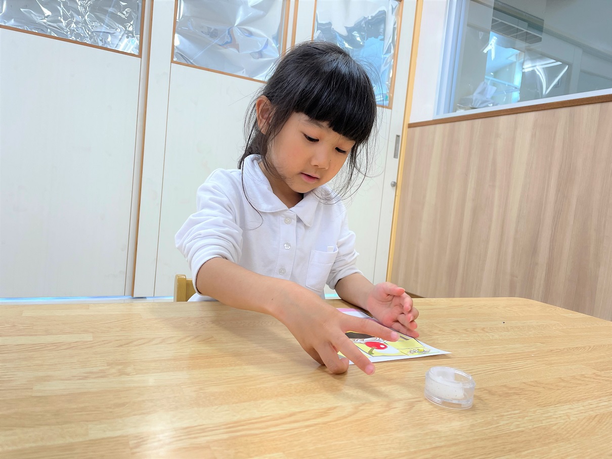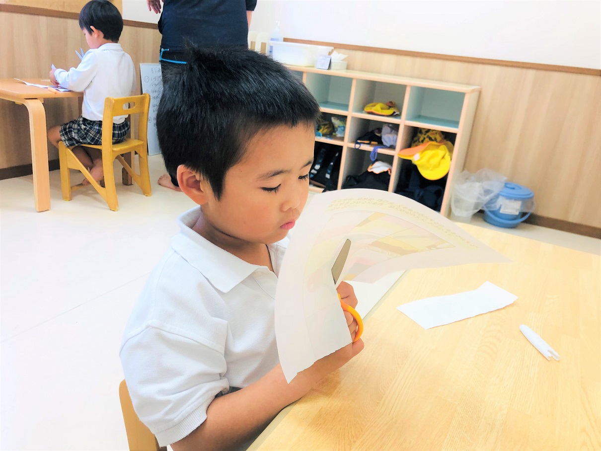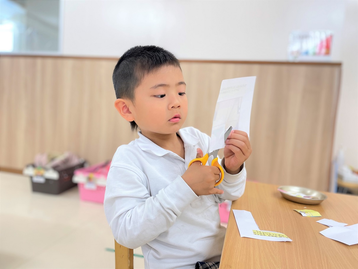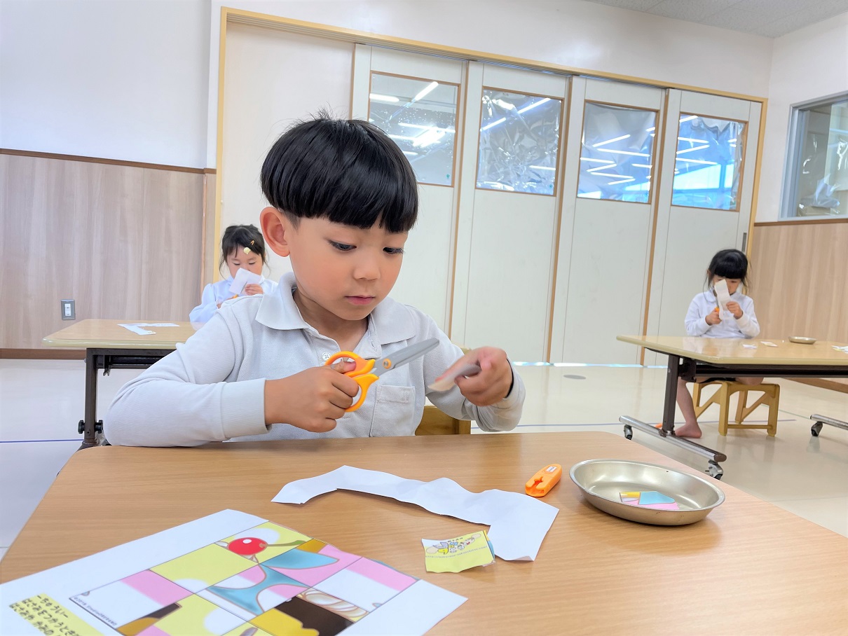 自分で切って作るパズルに挑戦しました! まずはパズルを自分たちで切っていきます。絵を切ってしまわないように慎重に切り進める姿が見られます。 切り終えたら早速並べます!「何の絵か分からないなあ~。」と最初は迷う様子も見られていましたが、並べていくと少しずつ絵が見えてきました。 集中して取り組み並べ終わると、プリンの絵が完成です! 「頑張った~!」「プリンが見えて嬉しい♪」など達成感溢れる声が聞かれ、嬉しさいっぱいのぞう①グループさんでした☆