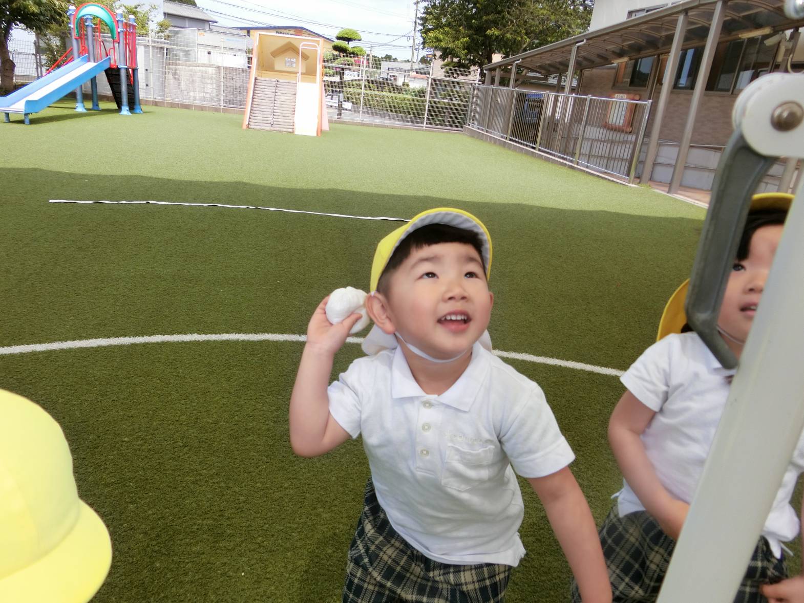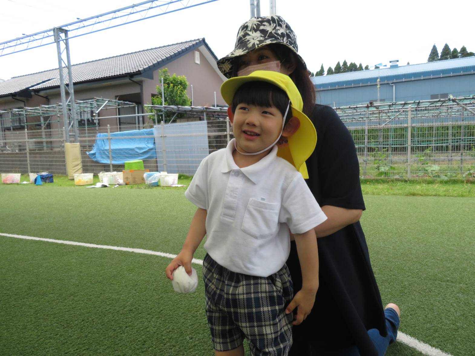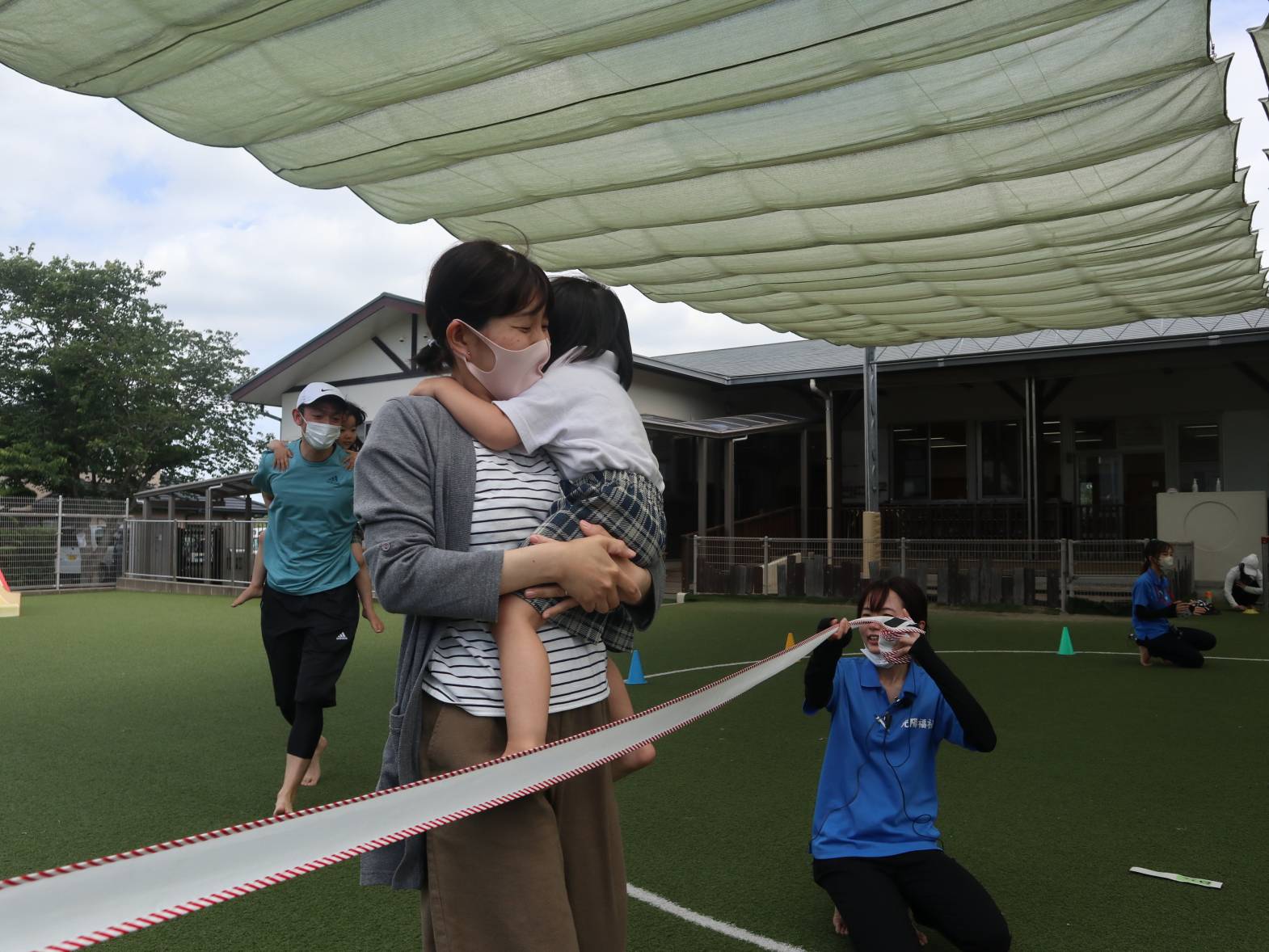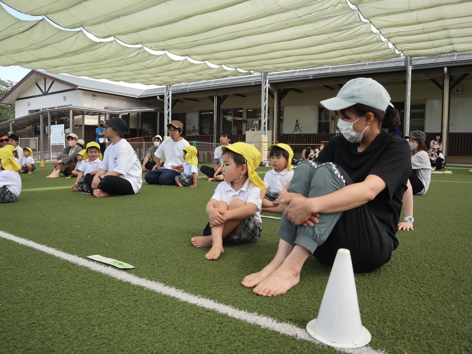 かけっこでは、お父さんお母さんに見守られながら前に出てくると、精いっぱいの声で「はーい!」返事をしてくれました。