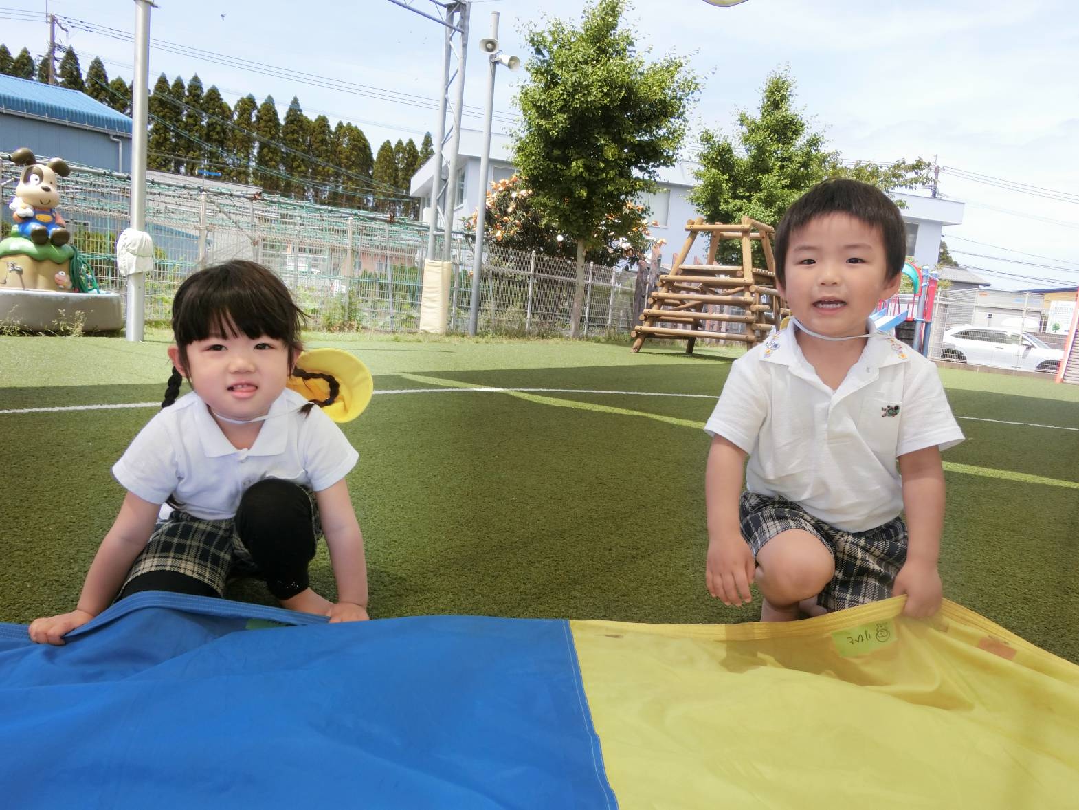 バルーンでは、「ファイト!」と声をあげて取り組んだ子どもたち。“お花畑”や“ハンバーグ”、“飛行機”などの技を上手に決めることができていました♪