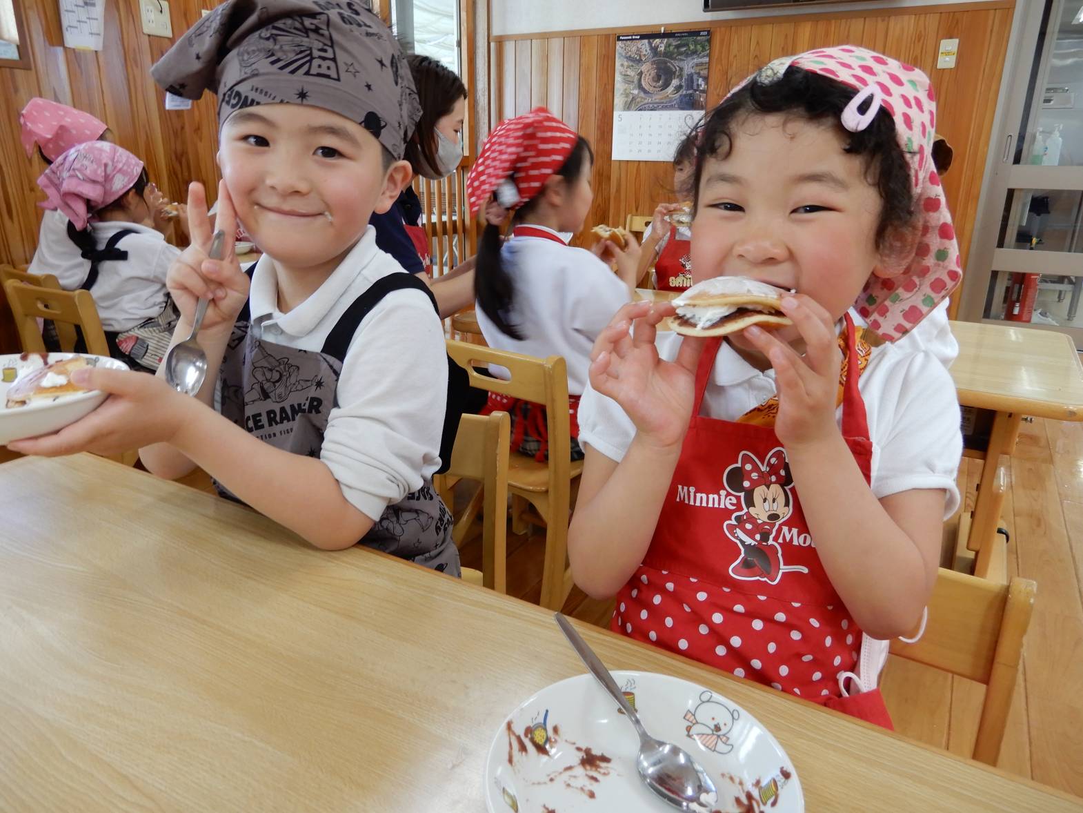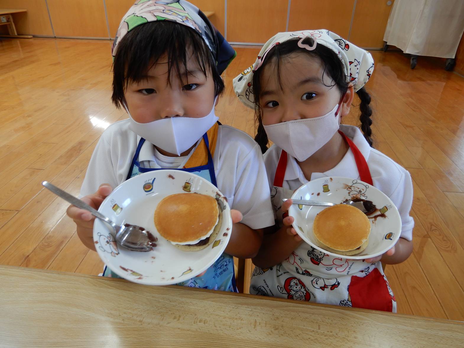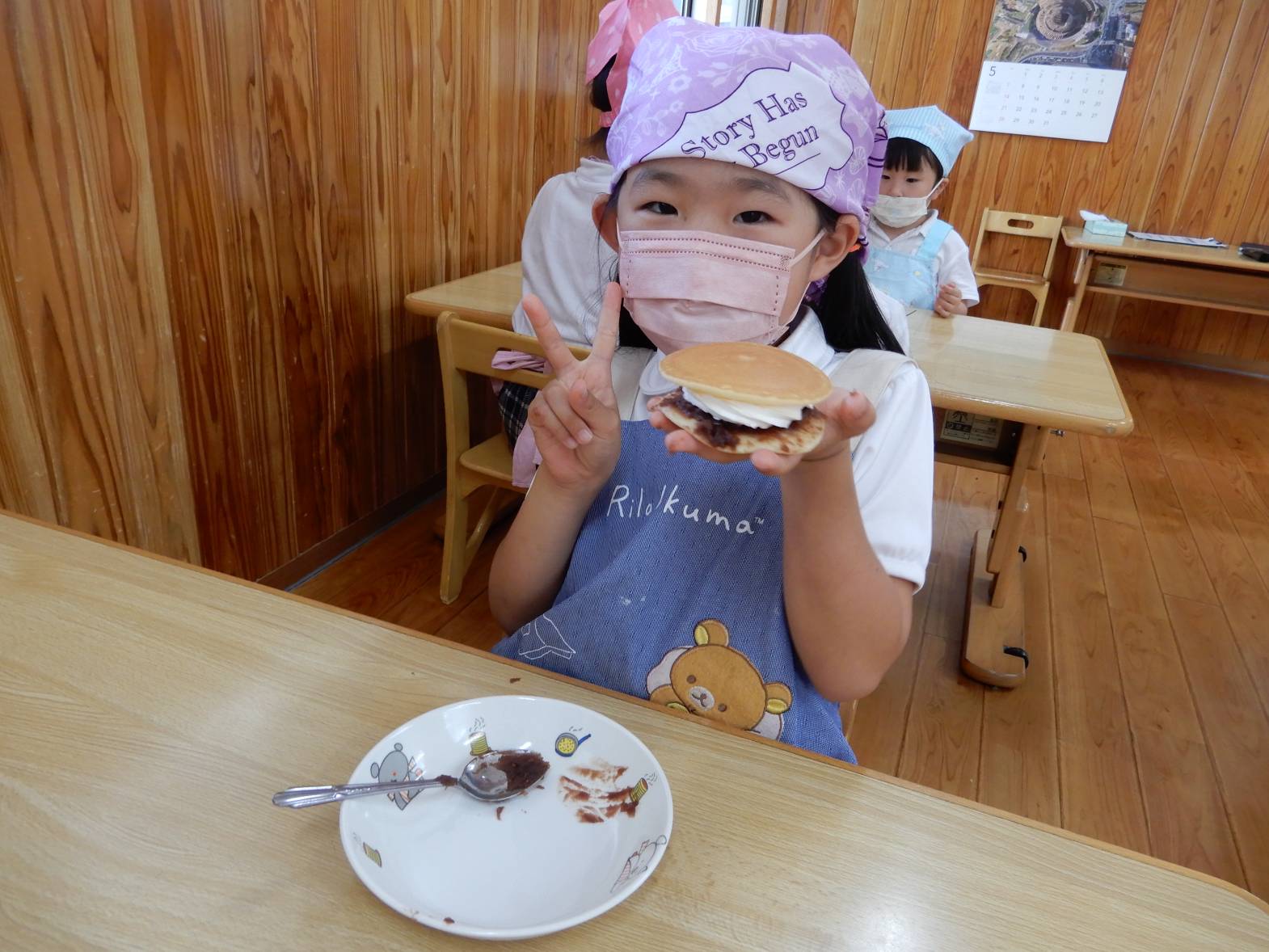 「一生懸命作ったからおいしいな。」、「みんなで作って食べたからすっごくおしいかった!」と、完成したどら焼きをおいしくみんなで食べることができたきりん組さんでした。
