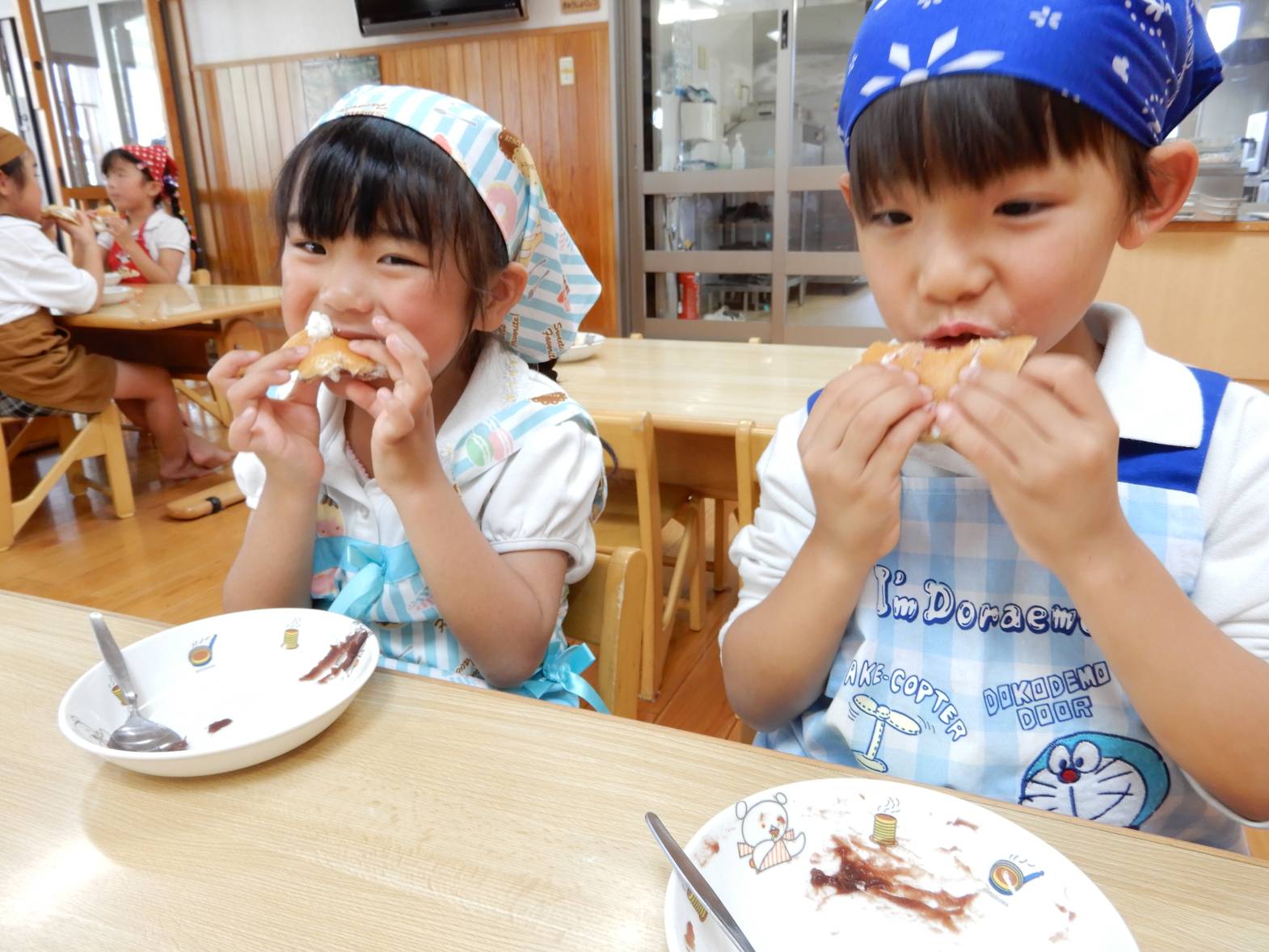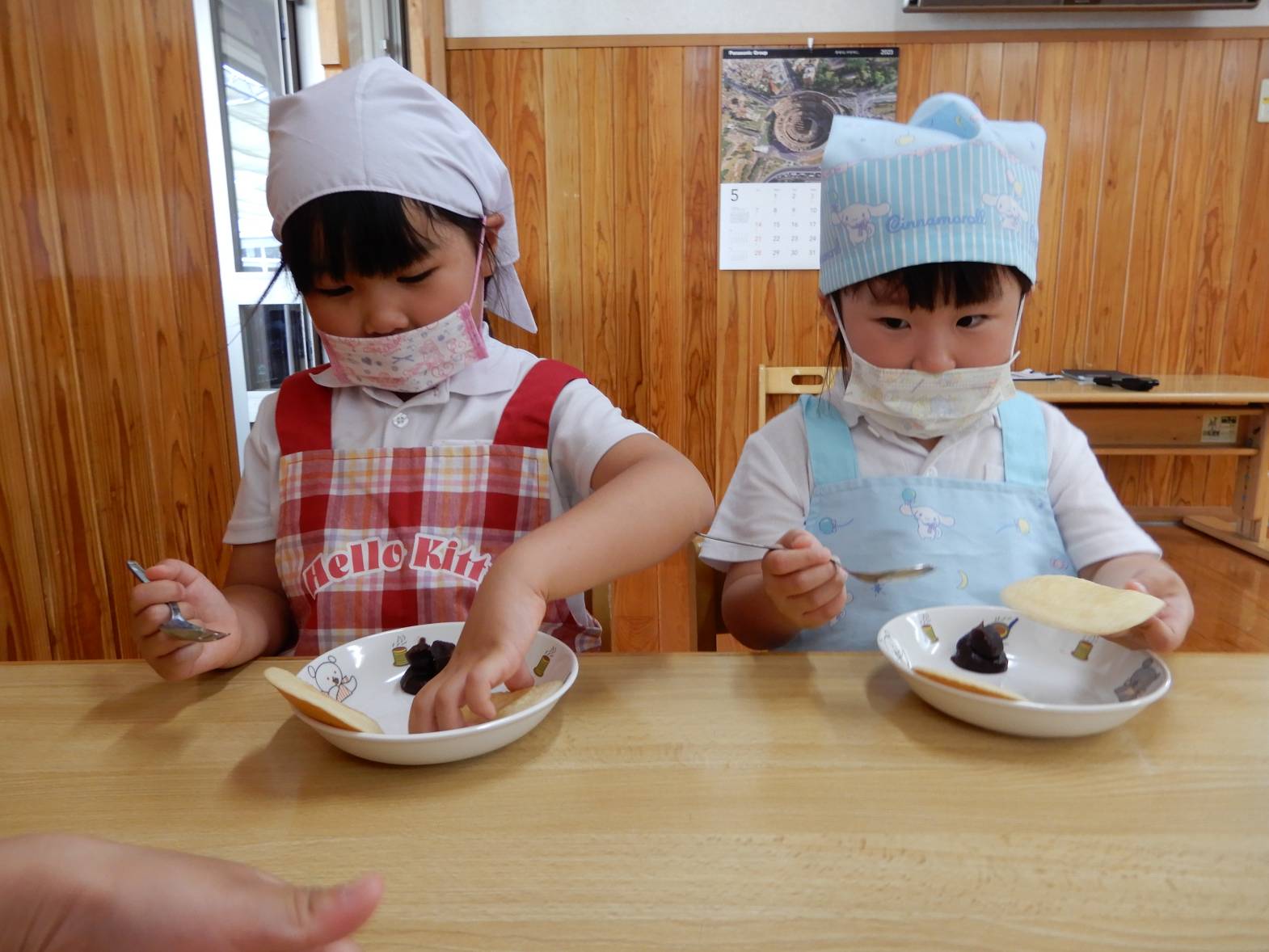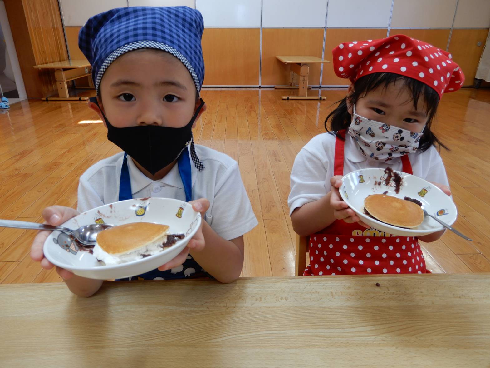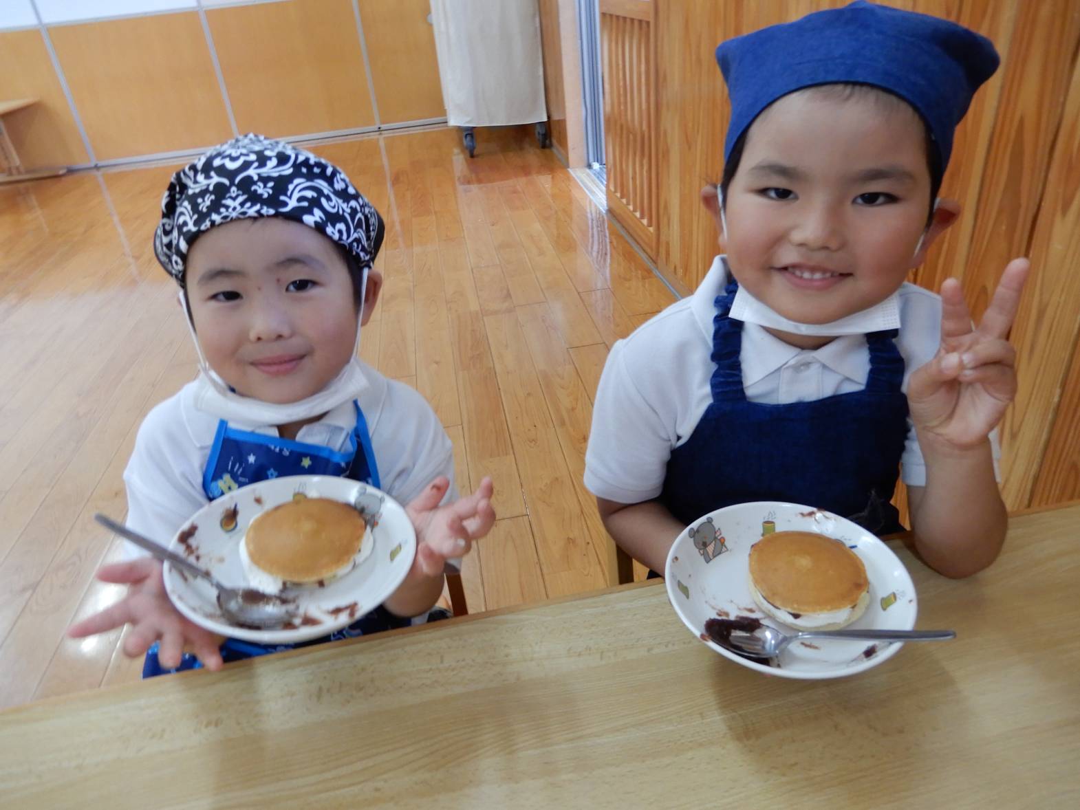 「一生懸命作ったからおいしいな。」、「みんなで作って食べたからすっごくおしいかった!」と、完成したどら焼きをおいしくみんなで食べることができたきりん組さんでした。