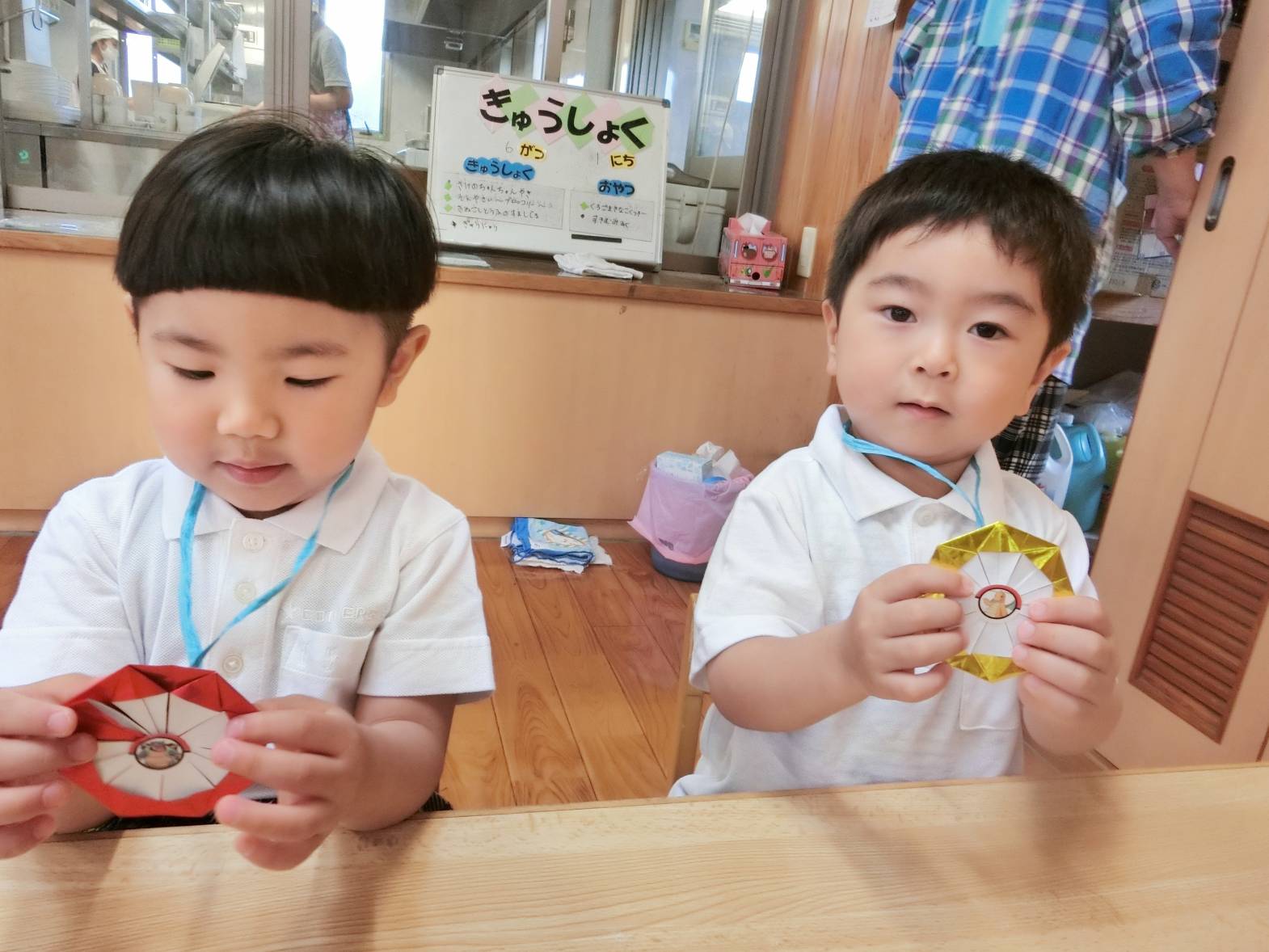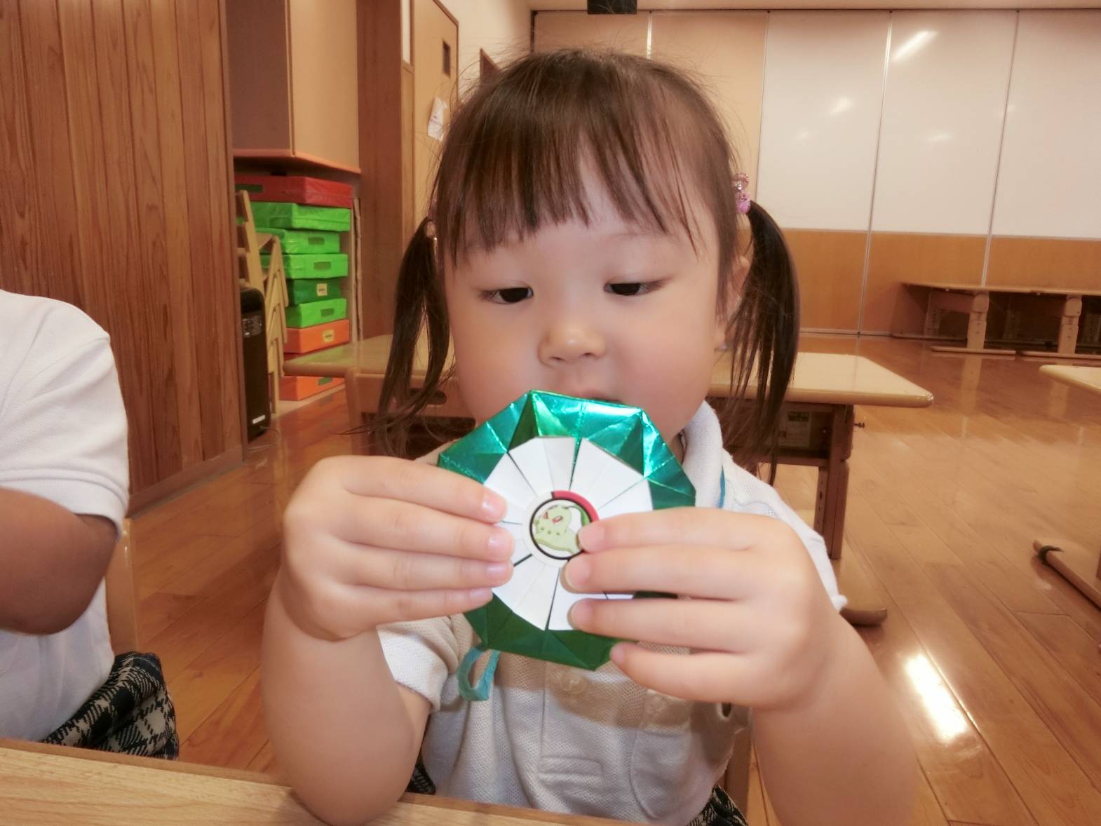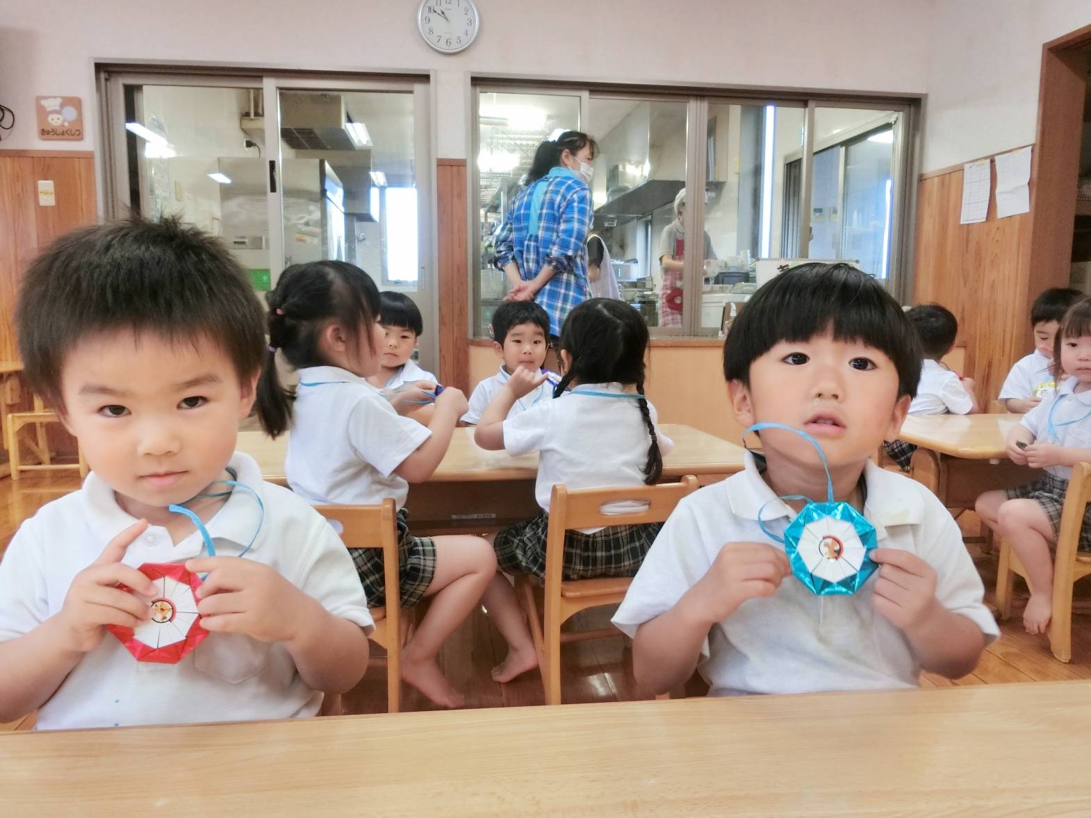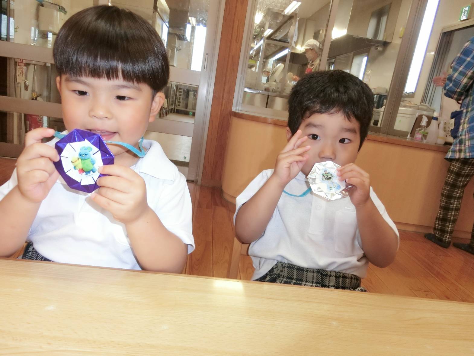 先日の親子レクリエーションの写真や動画の鑑賞会をしました! 子どもたちは、写真や動画を見て「これ、親子レクリエーションだよね。」、「見て、お父さんと走ってる。」と嬉しそうな様子です。 バルーンの動画を見ると、「いち、に、さん、し!」、「ファイト!」など動画を見ながら声を出したり、動いたりするりす組さん。 最後に、頑張ったみんなにメダルと好きなシールのプレゼントをすると大喜びの子どもたちでした!