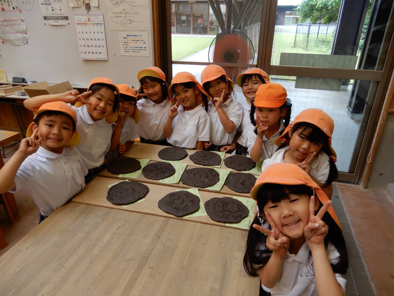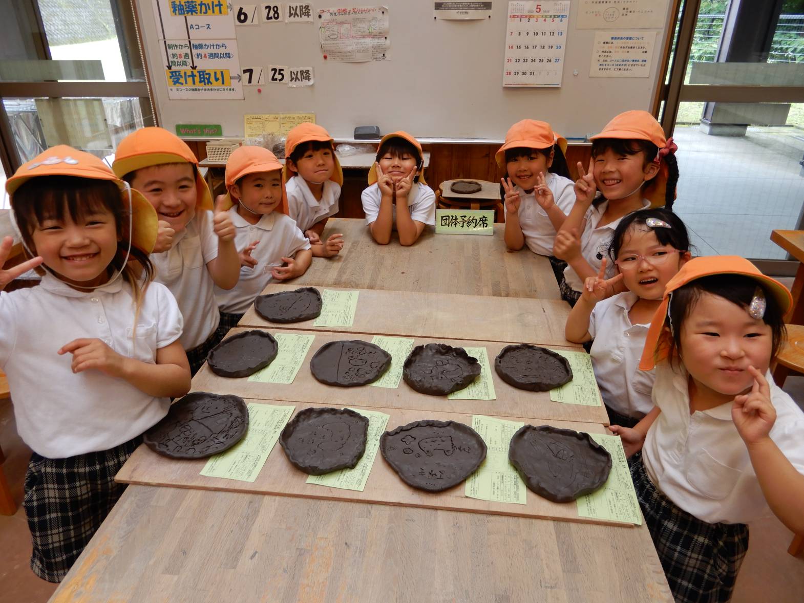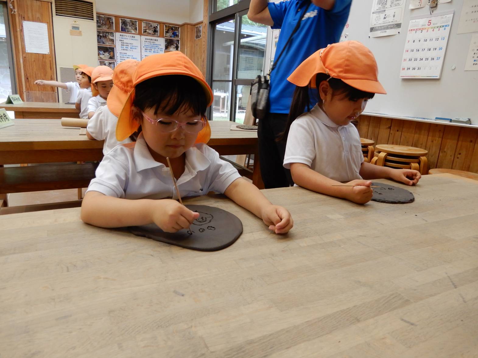「私はうさぎの絵を描いたよ!」、「僕はにっこり笑顔を描いた。」と、それぞれが思い思いのお皿を完成させることができました。