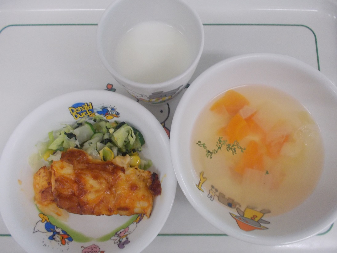 8月28日(月)から9月2日(土)までの給食献立写真・離乳食提供量と写真の一例です。
