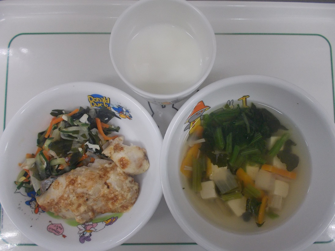 小松菜の味噌汁:お玉1杯弱(120ml)
