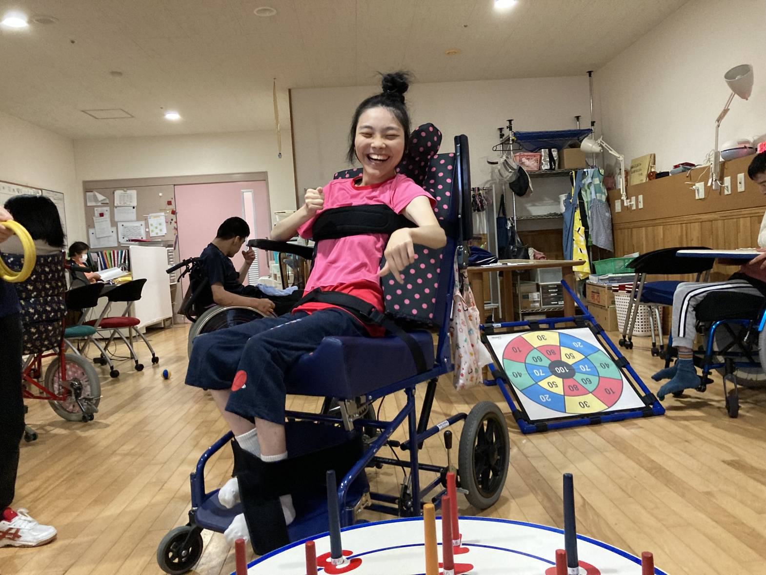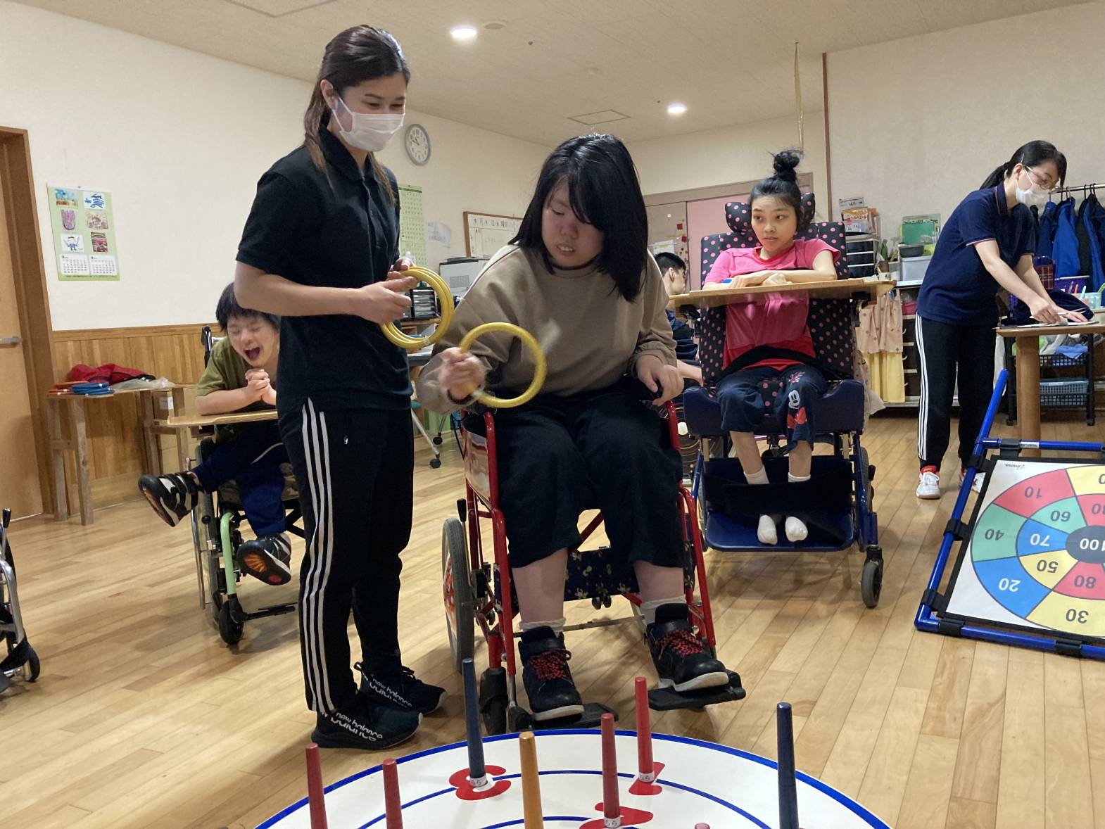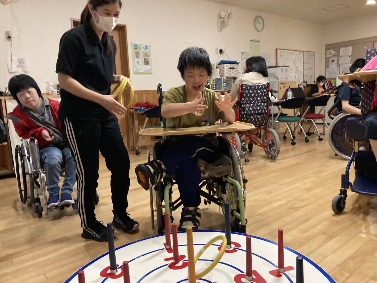 レクリエーション活動で輪投げをしました。