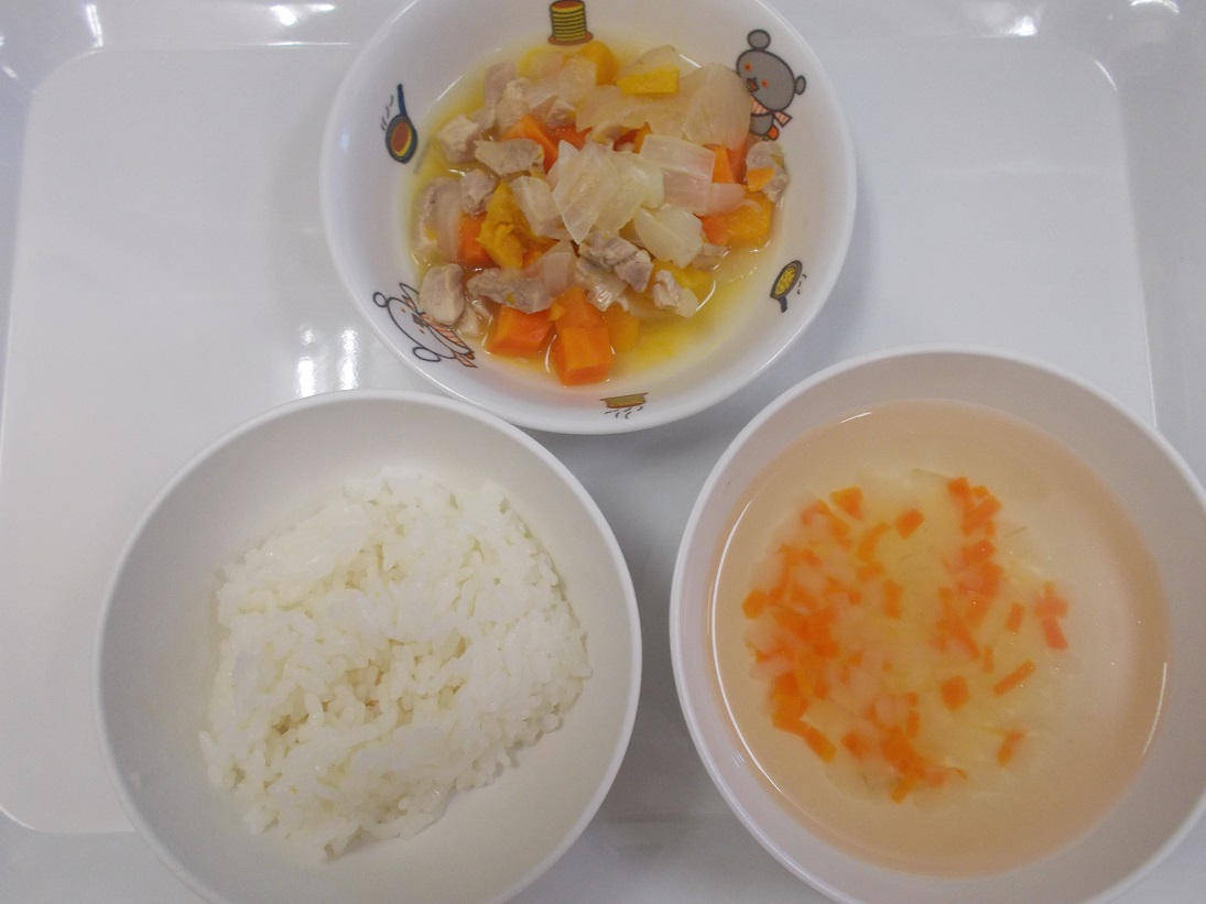 10月2日(月)から10月7日(土)までの給食献立写真・離乳食提供量と写真の一例です。