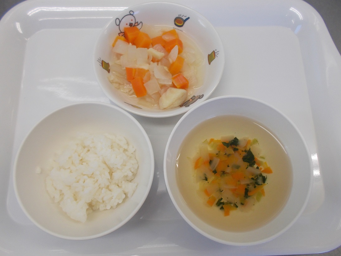 10月16日(月)から10月21日(土)までの給食献立写真・離乳食提供量と写真の一例です。