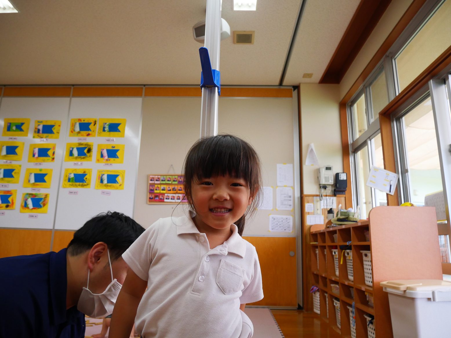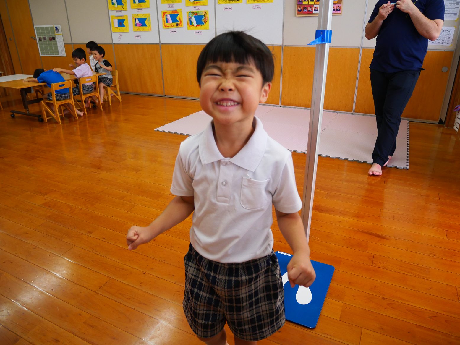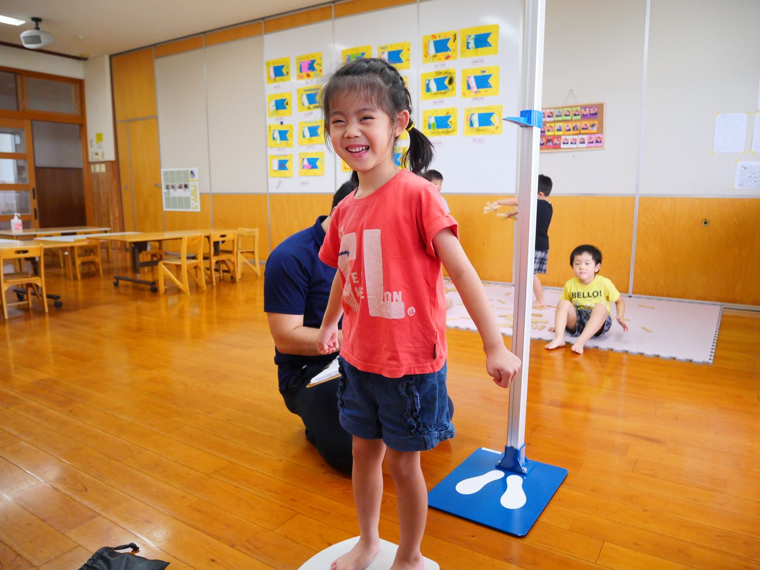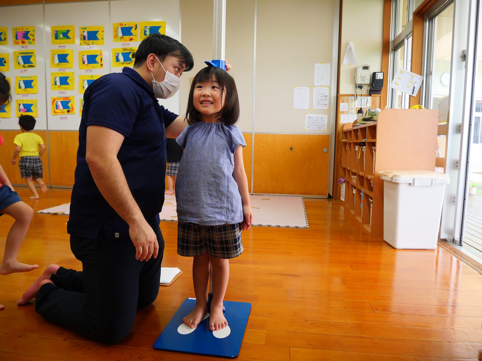 測り終わった後は「僕、大きくなってた?」「どれくらい大きくなってる?」とワクワクしながら聞きに来る子どもたち。「大きくなってたよ!」と伝えるととても嬉しそうな顔を見せてくれるうさぎ組さん。