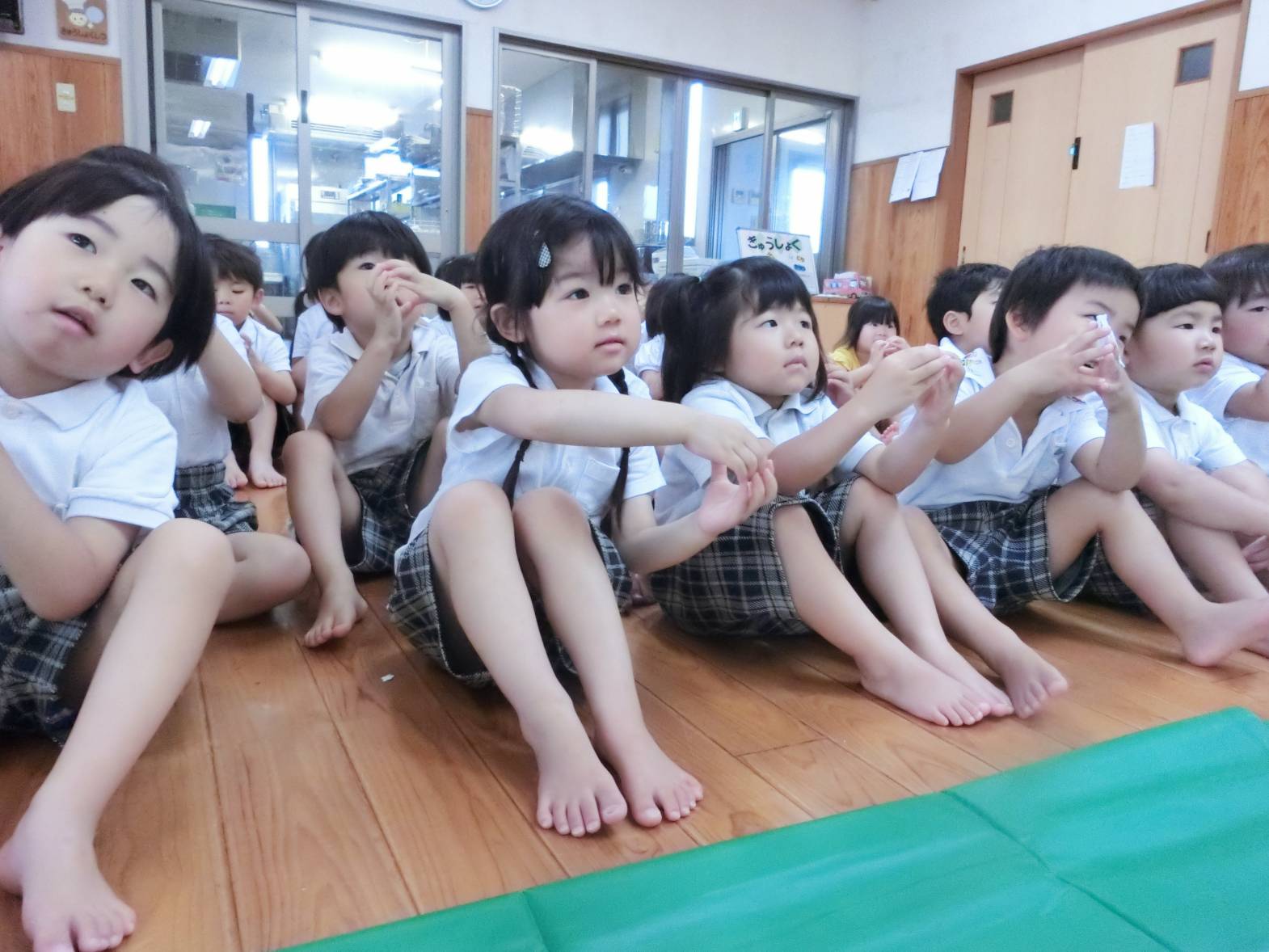 「水出しっぱなしにしないよね。」、「ママがしてる!ママに教えてあげなきゃ。」と今回の話を通して実際に、手を洗う時に水を止めたり、友だちに教えたりする様子が見られました。