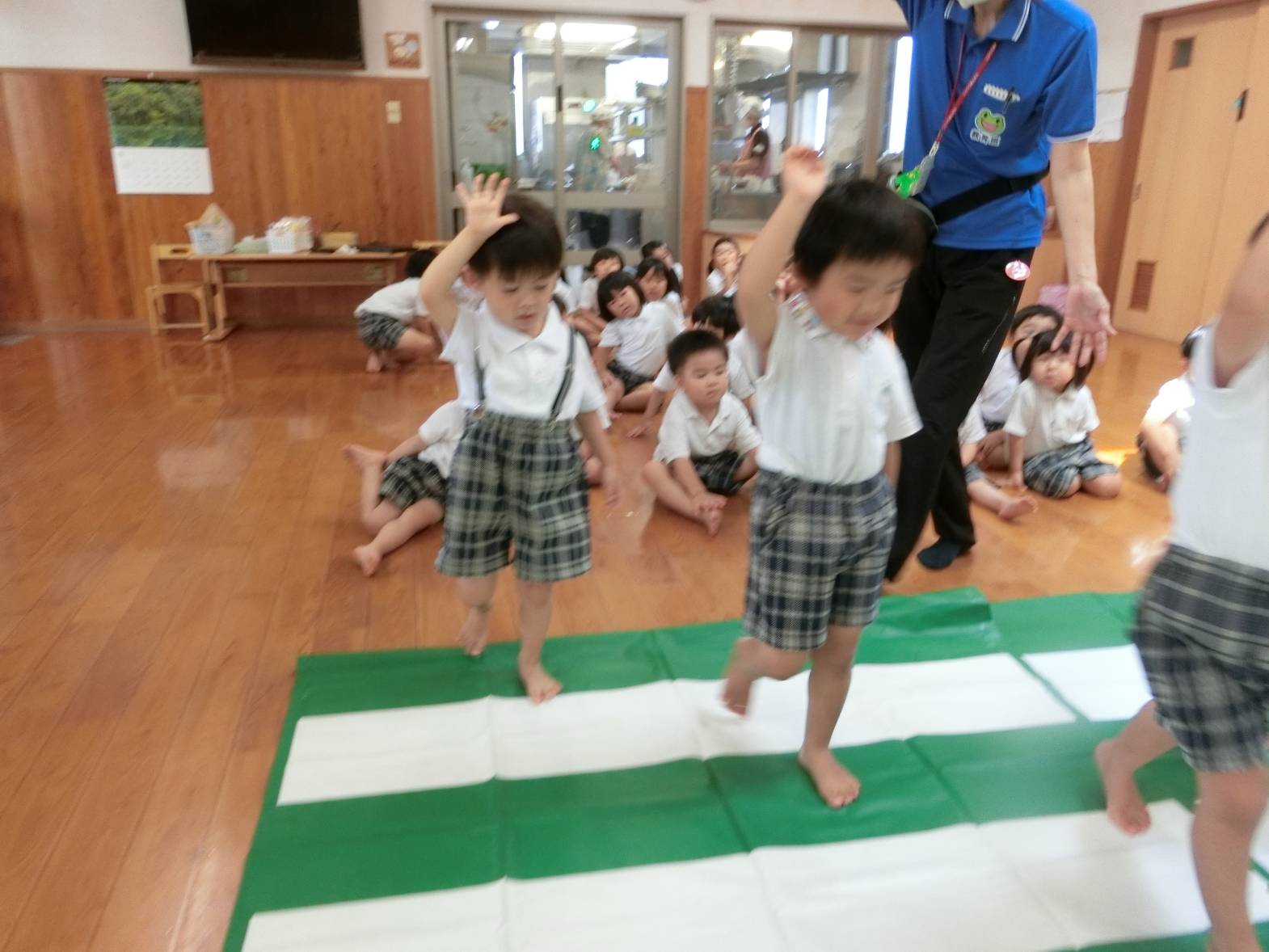 実際に、横断歩道を渡る練習ではしっかりと右手を上げたり、「とんとんとーまれ!」で止まり、「右見て、左見て、右見て!」と左右の確認をする子どもたちでした!