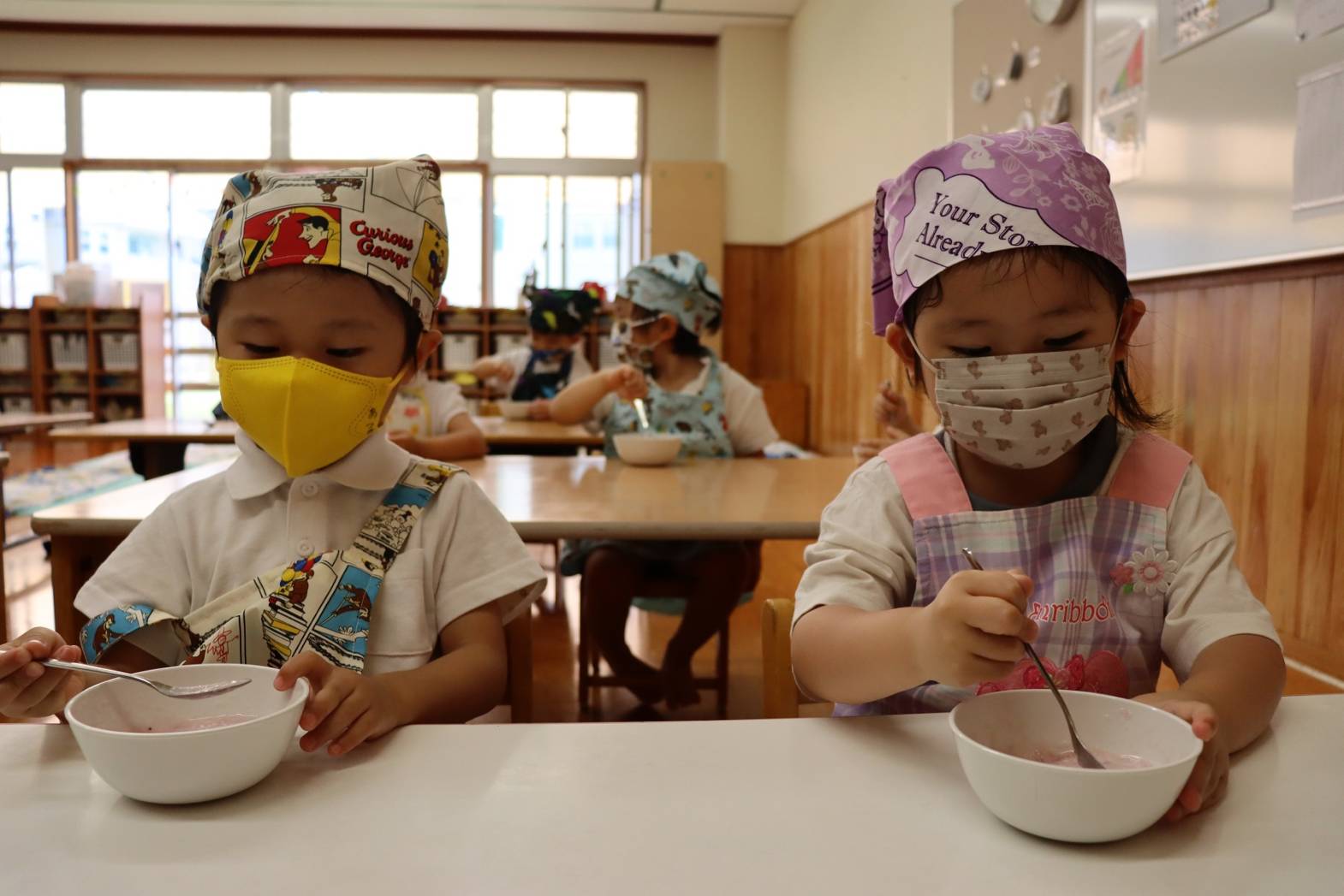 おやつの時間になると、「僕が作ったやつだね!」「固まってる!美味しいね!」