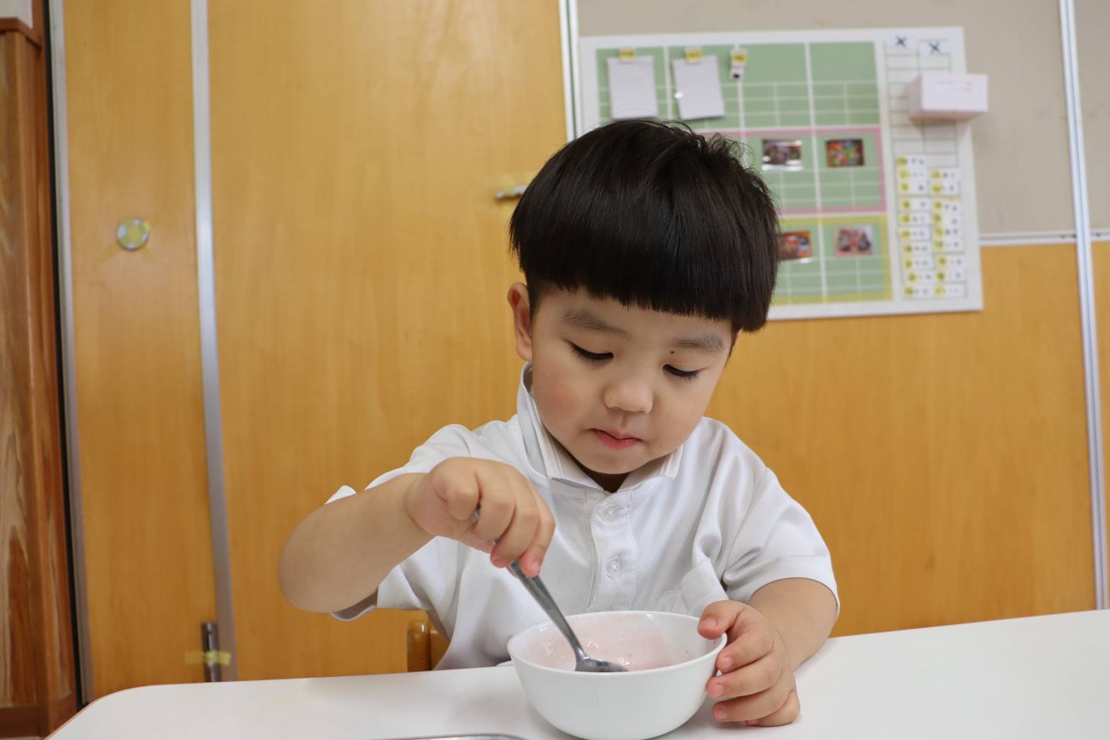 「溢さないように、ゆっくり混ぜなきゃ!」と、集中して取り組む姿が見られました。