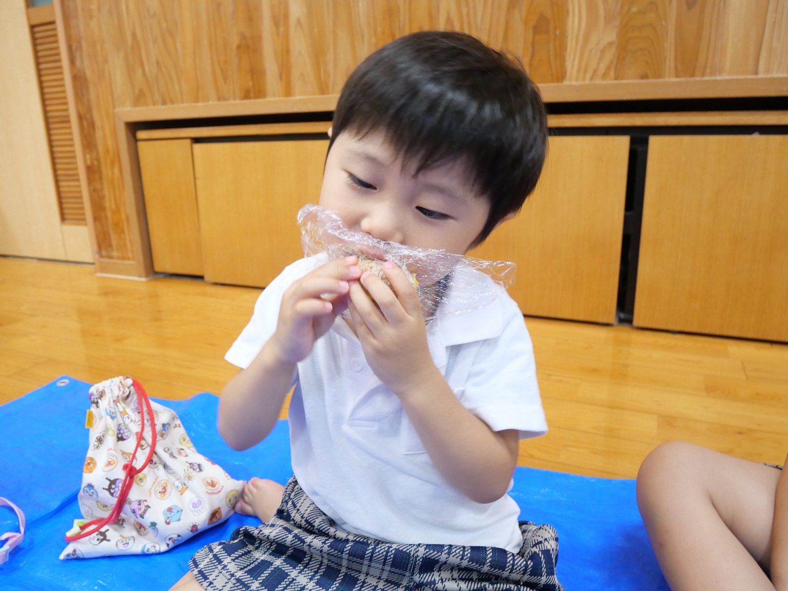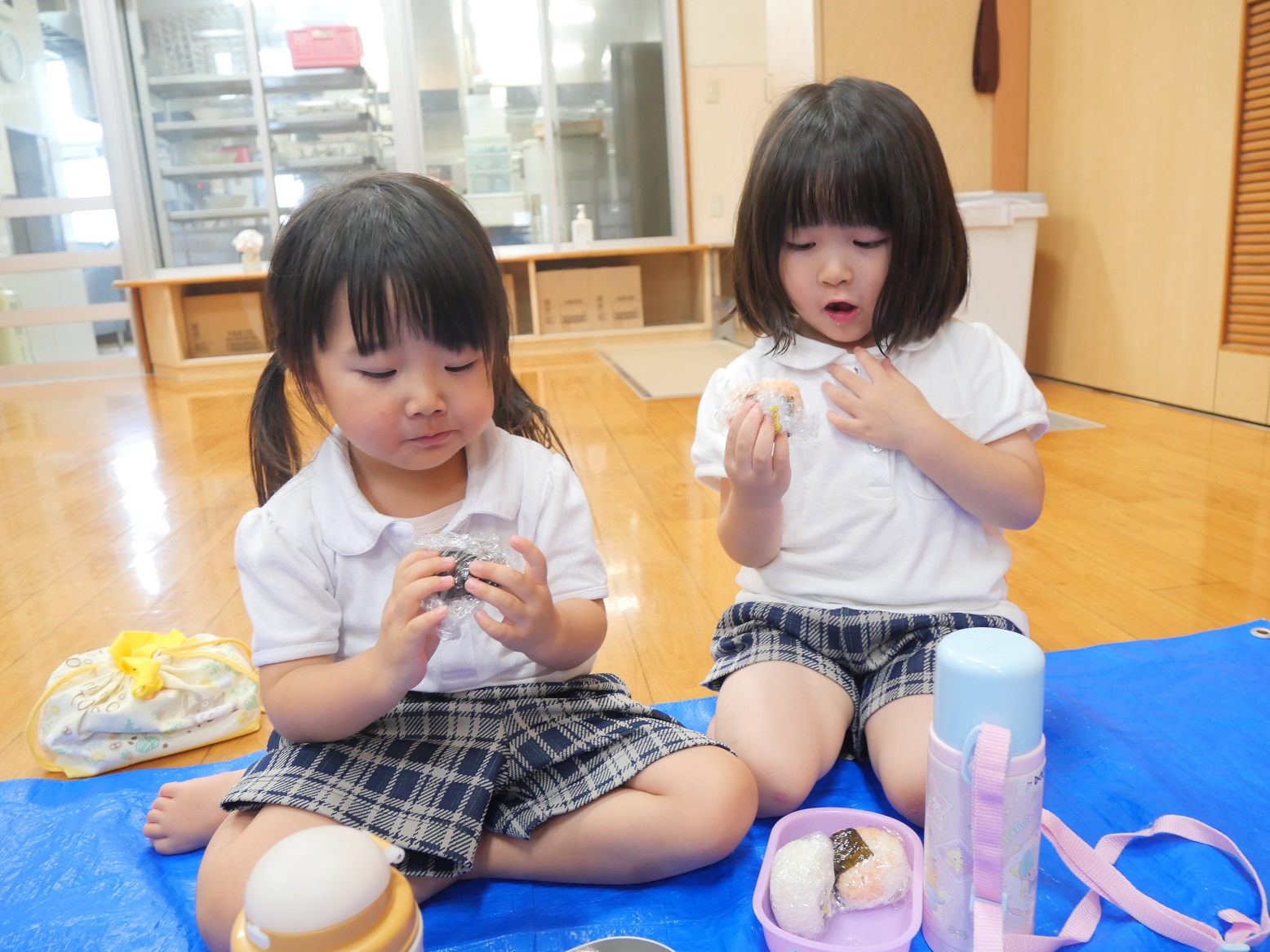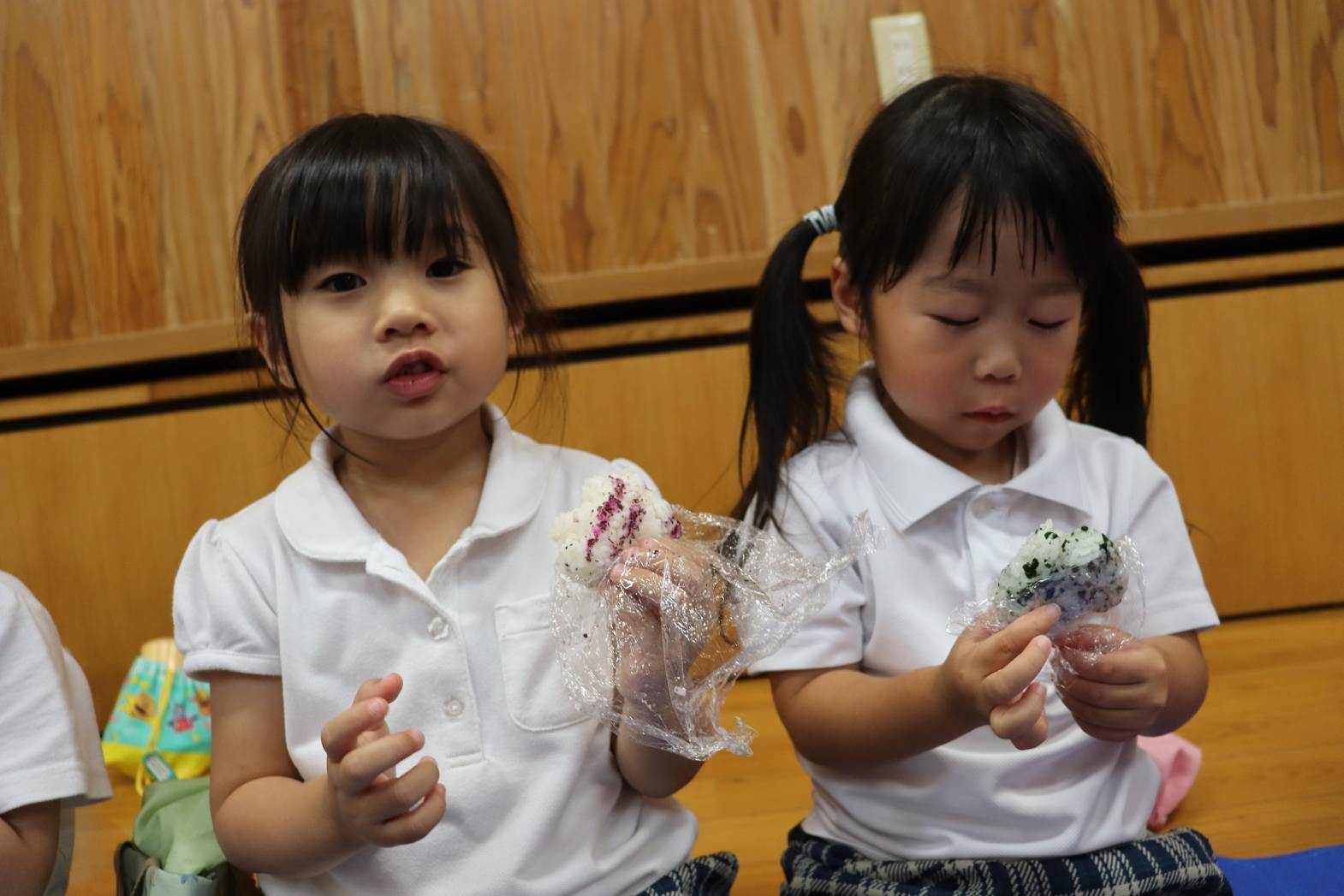 おむすびの時間になると、「おいしいね!」「○○くんと私のおにぎり、一緒かな?」と友だちとの会話を弾ませながら、笑顔で食べ進めていく姿が見られました。