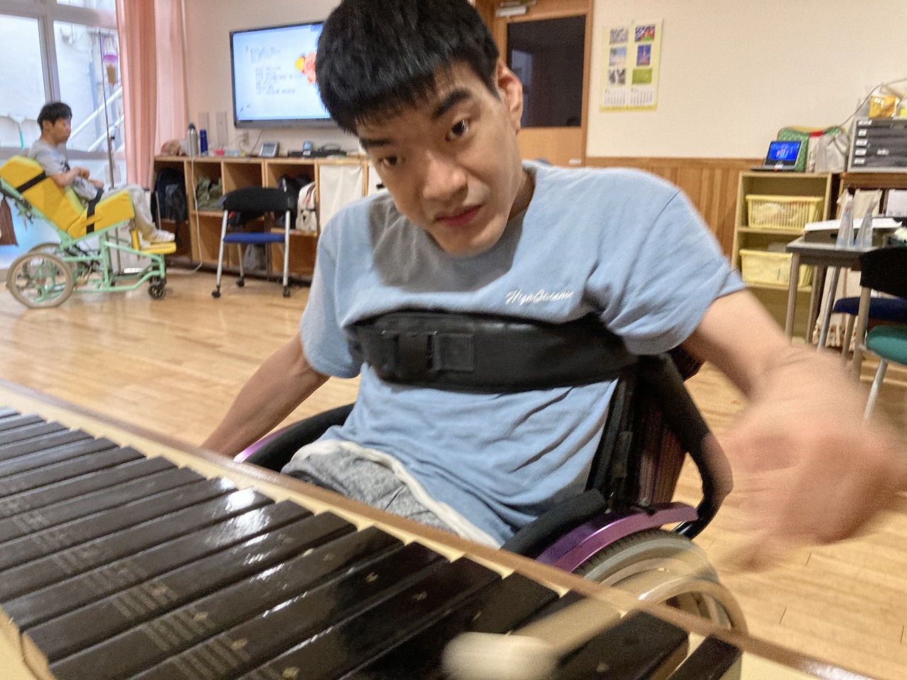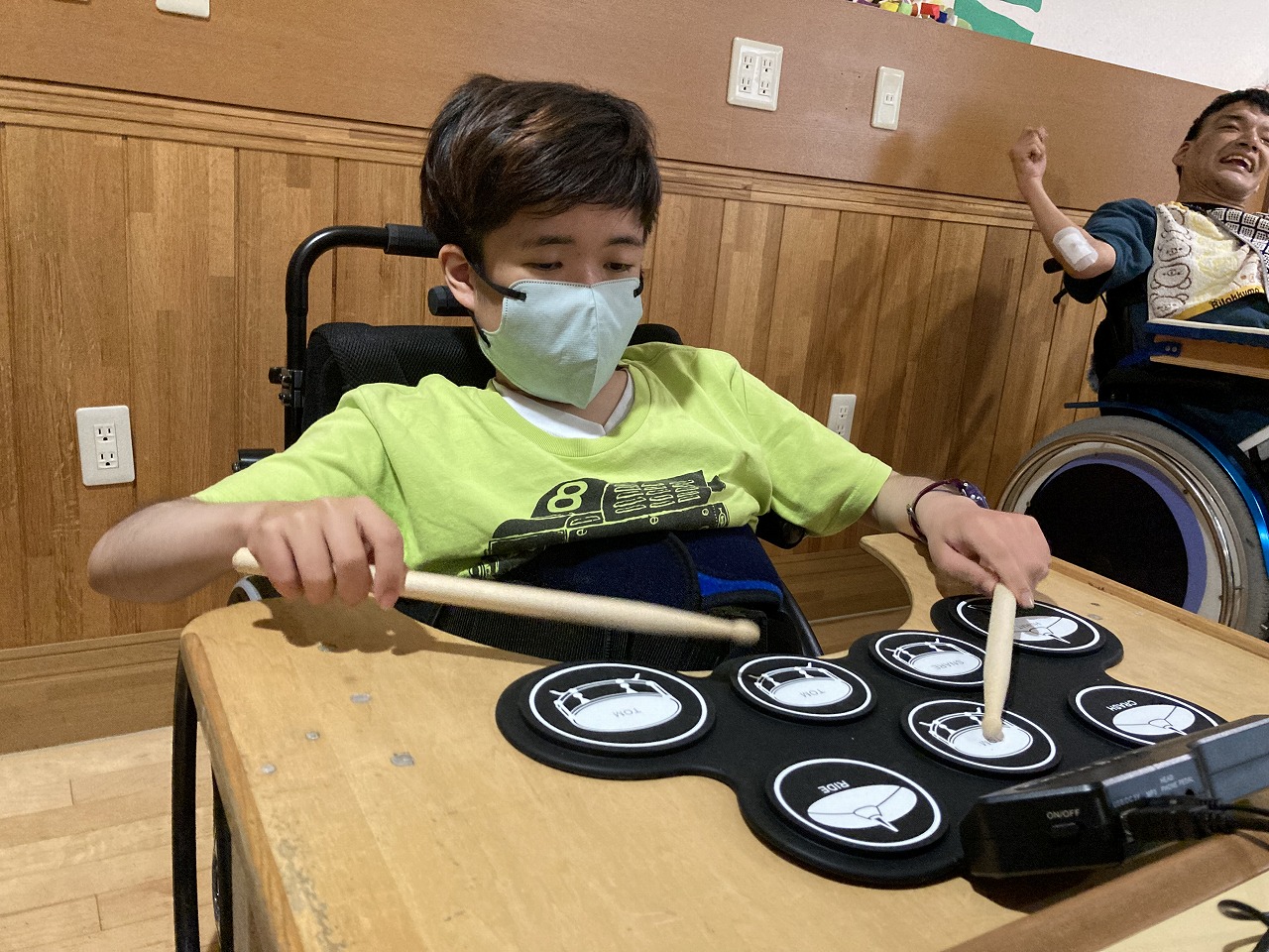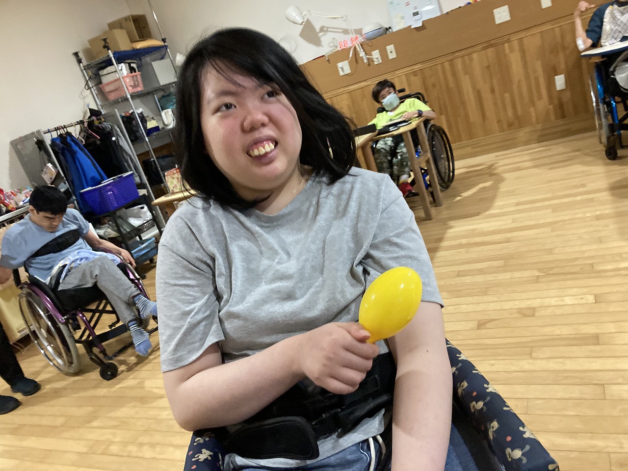 今日はマラカス、電子ドラム、ベルにタンバリン・・・いろいろな楽器を使って音楽活動を行いました。 聞きたい音楽のリクエストを出してもらい、歌を聴きながら楽器を鳴らして活動を楽しみました! あいにくの雨でしたが、そんなじめじめした気分も吹き飛ぶくらい楽しい活動ができました!