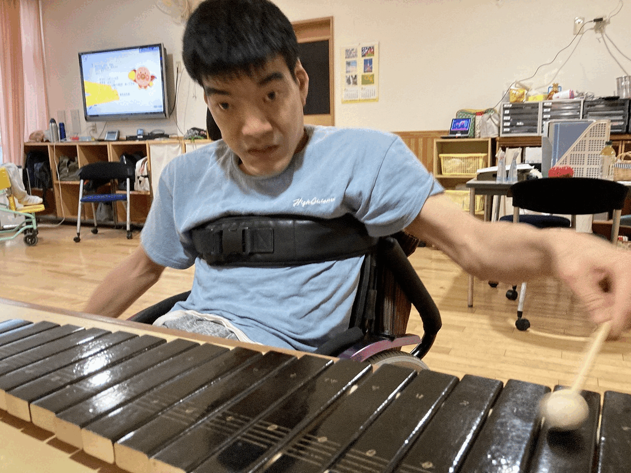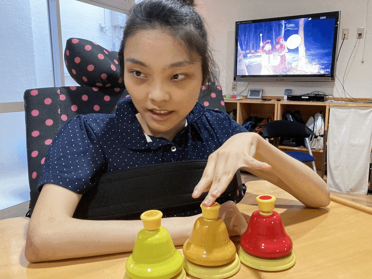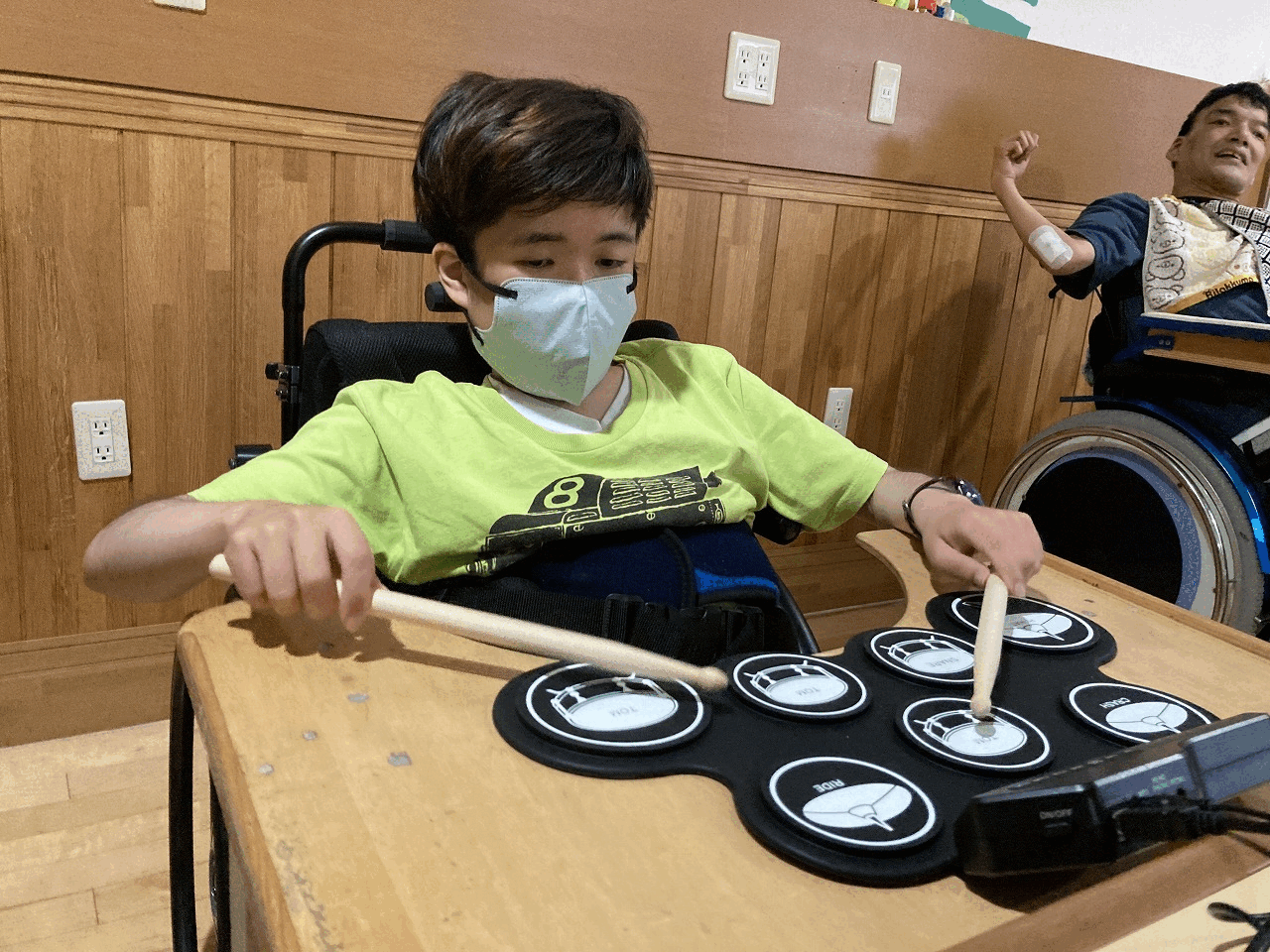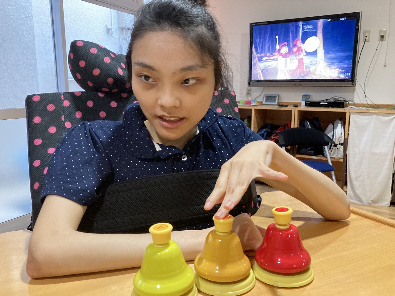 今日はマラカス、電子ドラム、ベルにタンバリン・・・いろいろな楽器を使って音楽活動を行いました。 聞きたい音楽のリクエストを出してもらい、歌を聴きながら楽器を鳴らして活動を楽しみました! あいにくの雨でしたが、そんなじめじめした気分も吹き飛ぶくらい楽しい活動ができました!