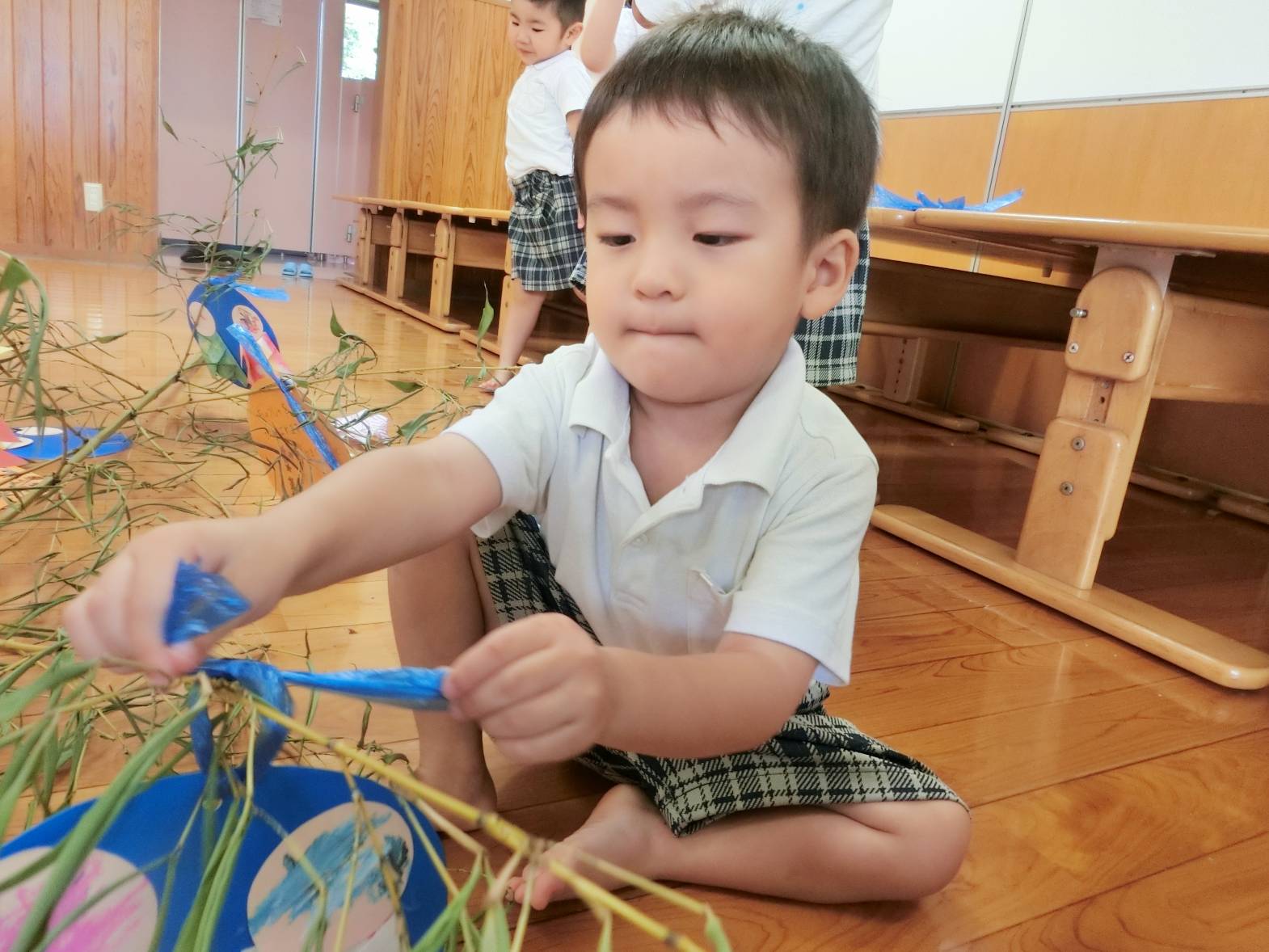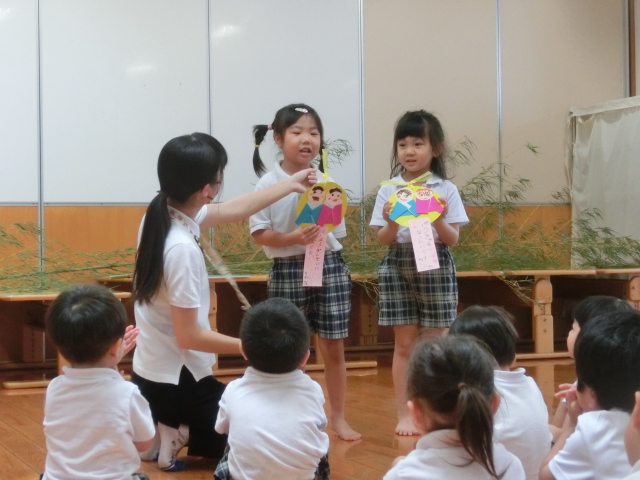 今日は七夕会があり、りす・うさぎ・きりん組の子どもたちが参加しました!