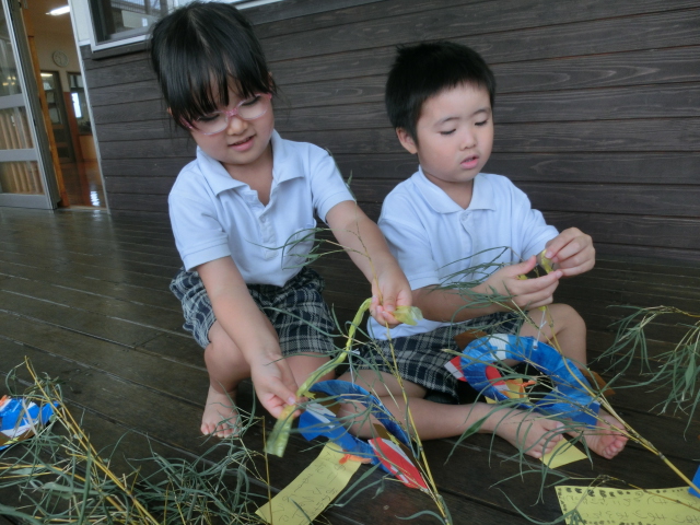 みんなで笹に短冊を飾り、出来上がったものを嬉しそうに眺める子どもたちでした!