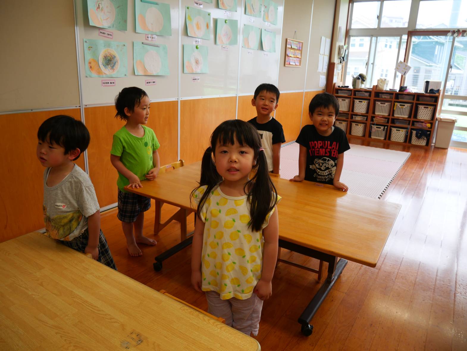 「ペタペタしたのが楽しかったです。」「顔を描くのが楽しかったです。」など、上手に発表をしてくれました。
