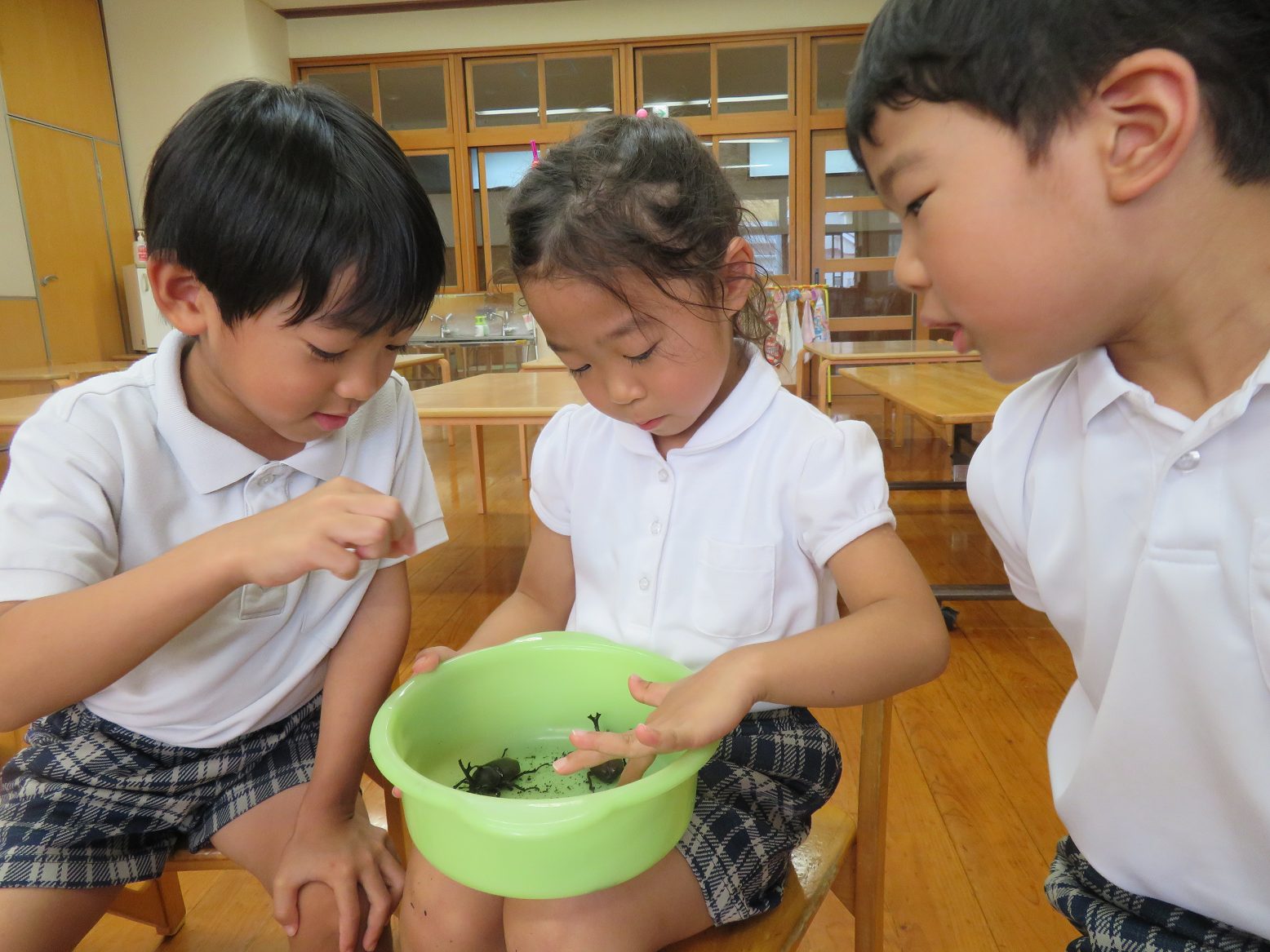 今週、きりん組にカブトムシがやってきました。