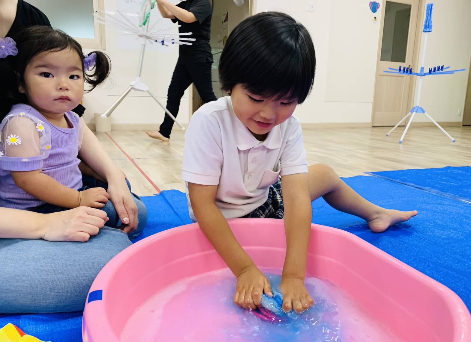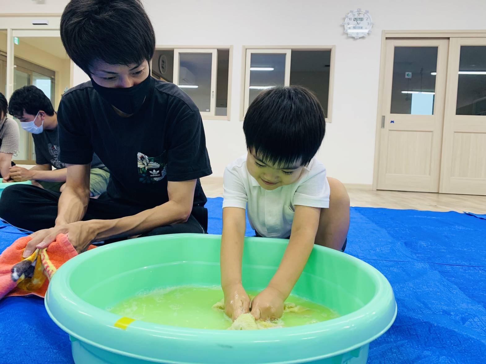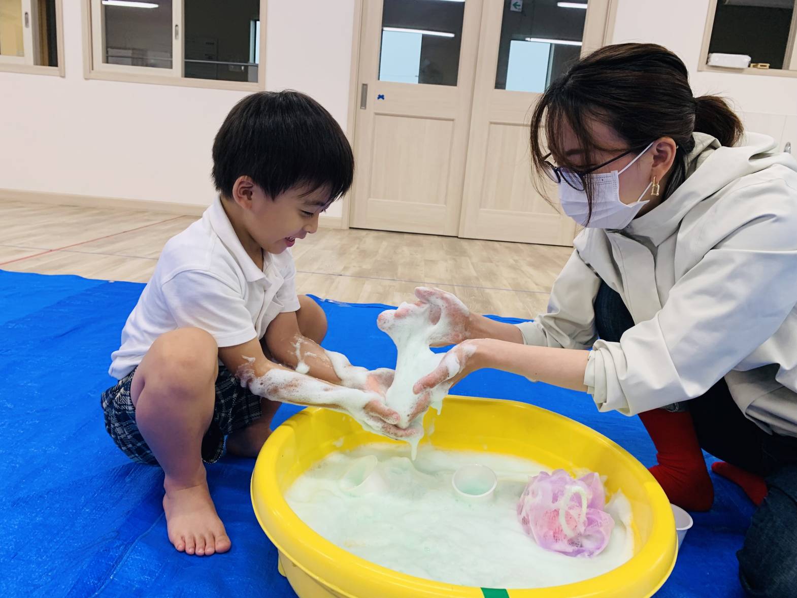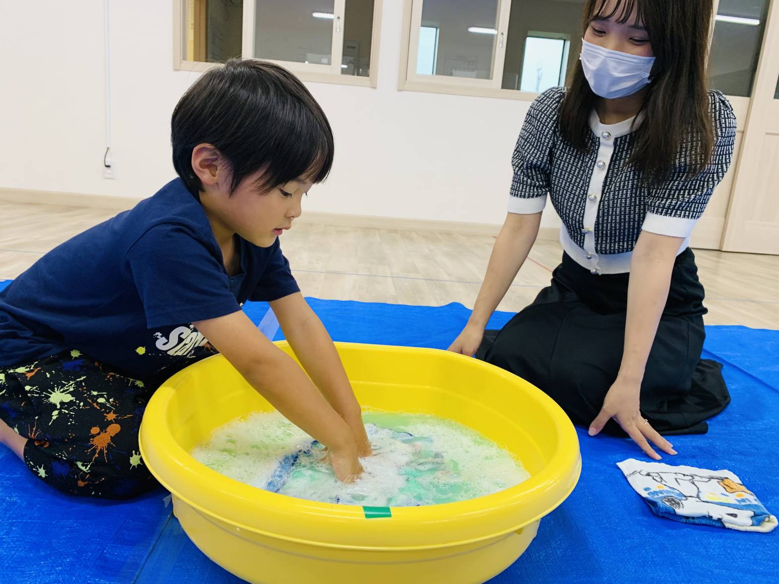 また、タオルを洗う工程で立った泡で泡遊びも行いました!