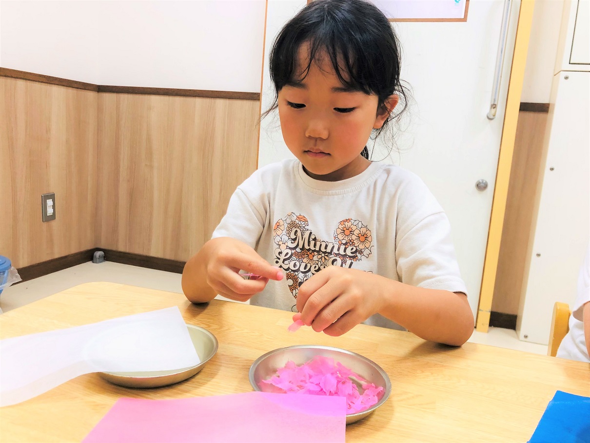 まずは花紙を指先を使って細かくちぎります。