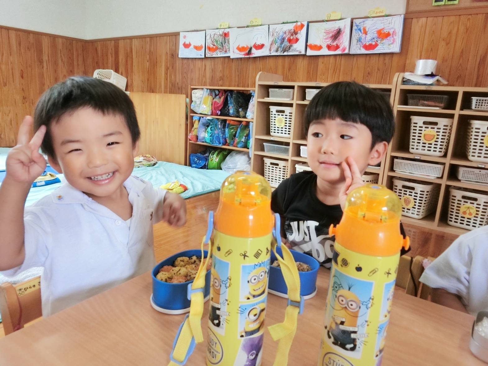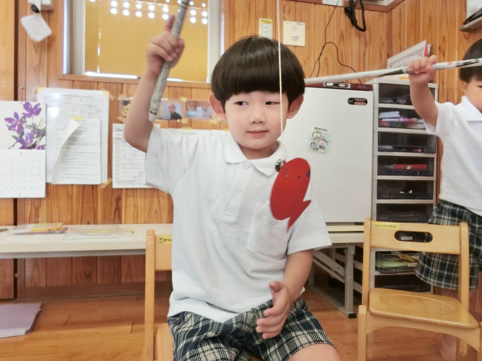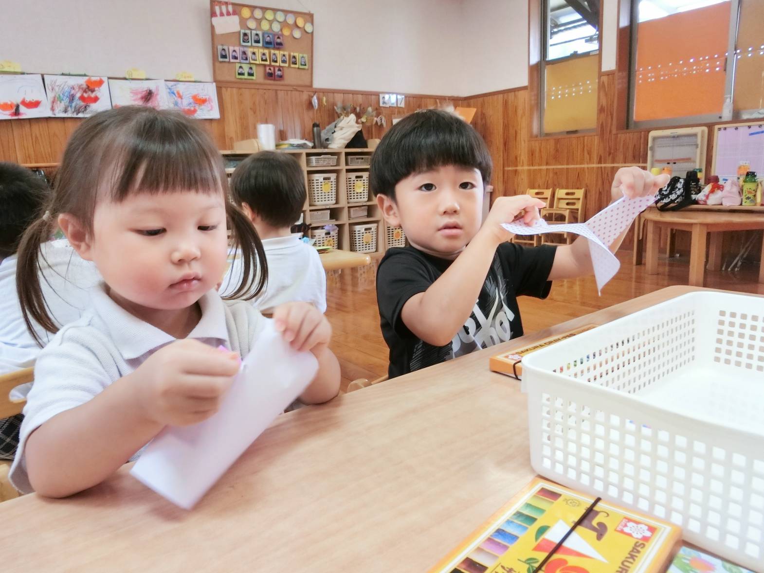 友だちと、「見て僕はこんな魚ができた。」、「今度は、黄色の魚にしたよ。」、「おんなじの作ろう♪」と友だちとの会話も弾みます。