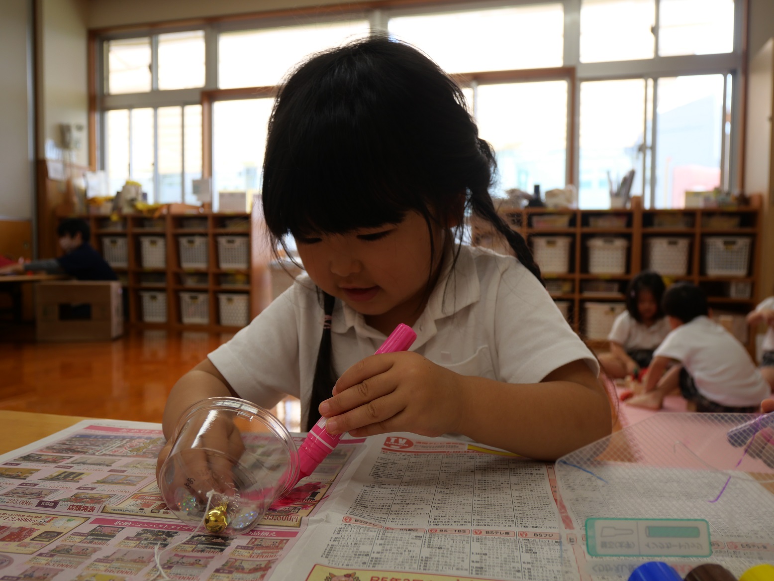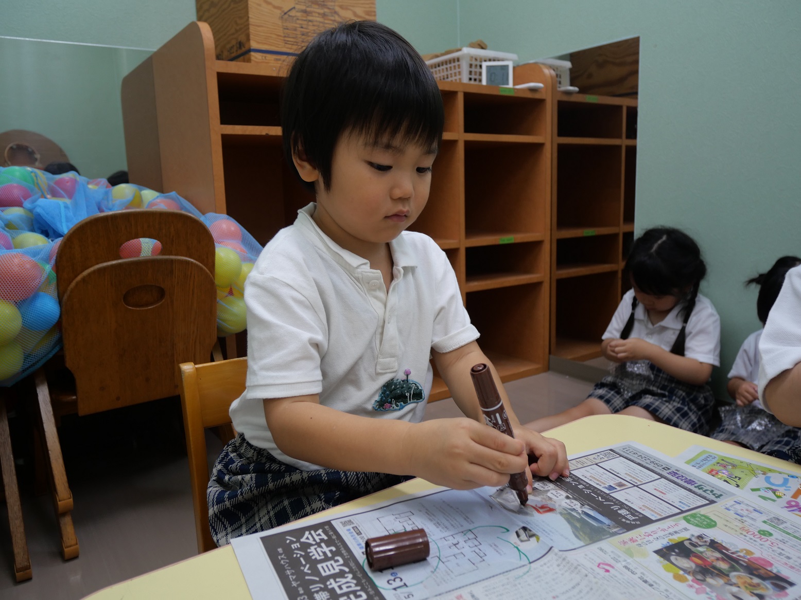 シールを貼ったり、絵を描いたりしていきます。