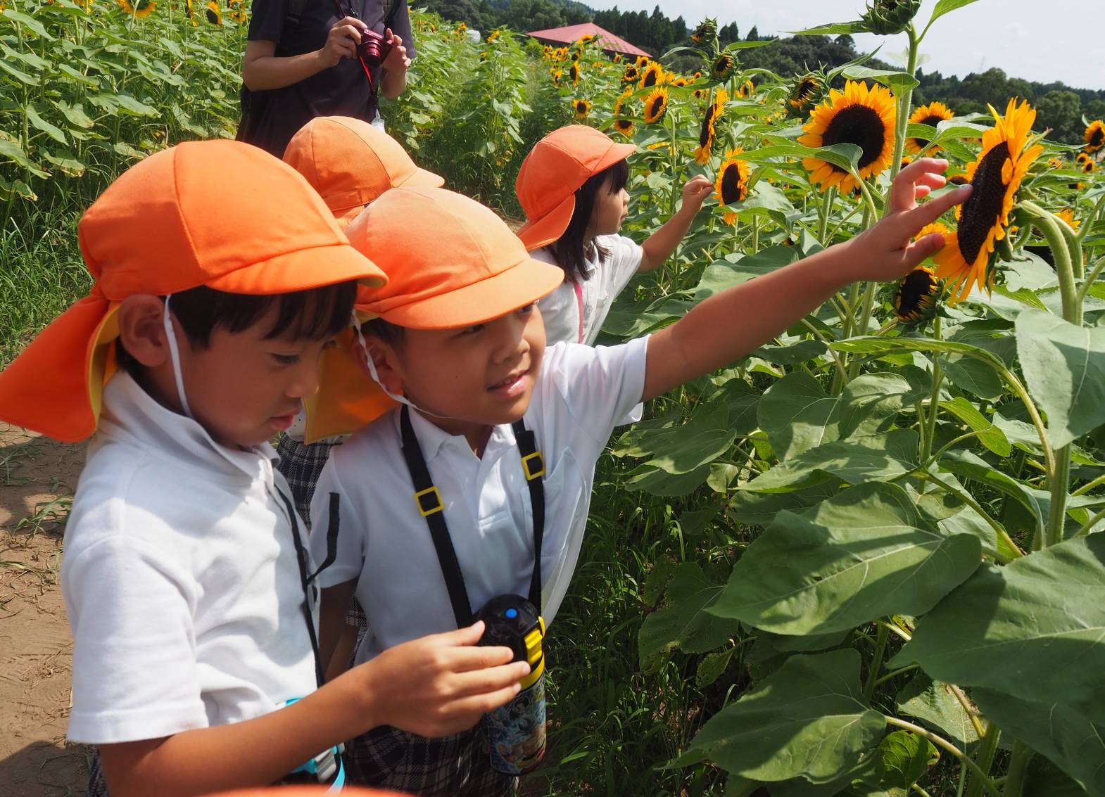 思い思いにひまわり畑を楽しむ子どもたち。