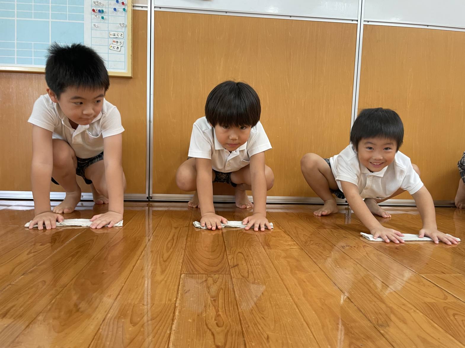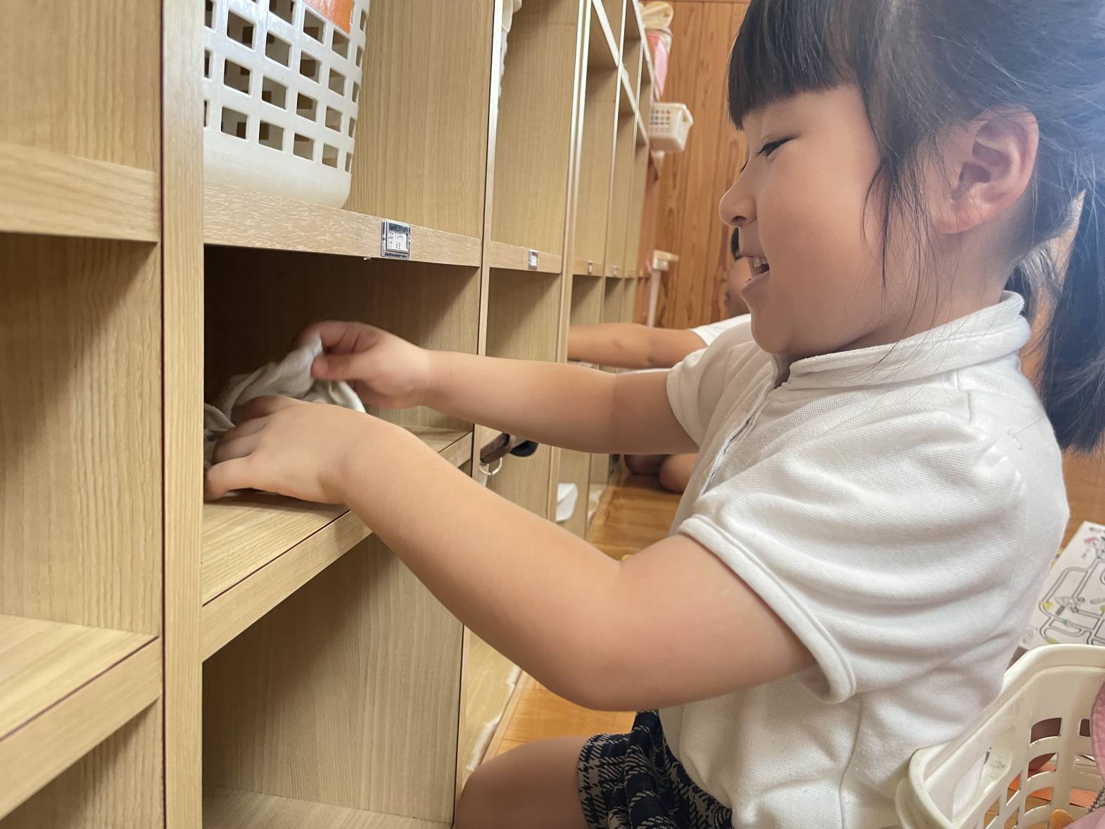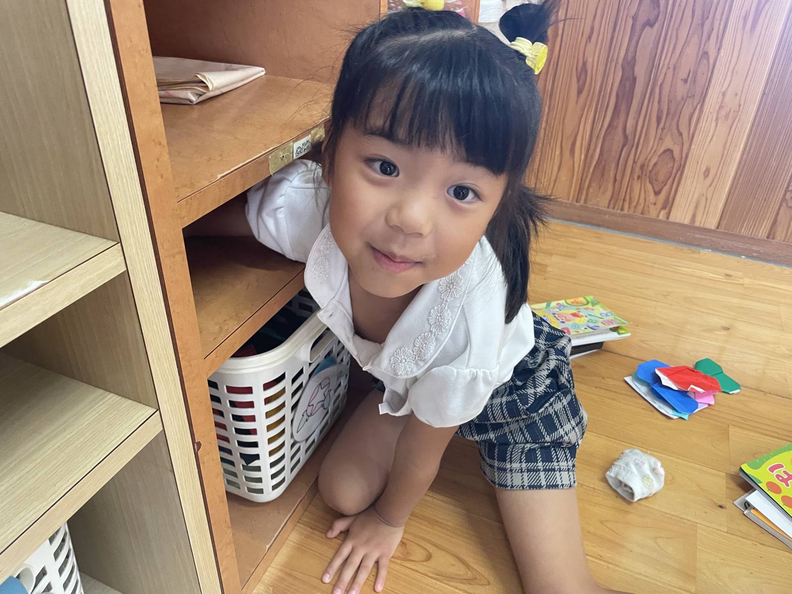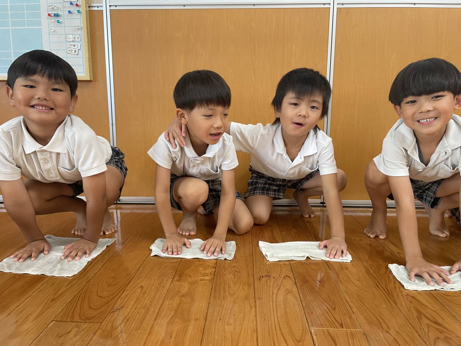 今日は、きりん組さんで棚や床の掃除をしました。 「棚が綺麗になってきた。」、「棚の上と横も綺麗に拭こう!」、「お部屋の角がたくさん汚れていたよ。」と、棚や床の隅まで綺麗に掃除をする子どもたち! 「みんなで使うお部屋だからこれからも綺麗にしようね。」、「雑巾がけが楽しかったな。」と、掃除を楽しみながら、綺麗になることに喜びを感じているきりん組さんです。